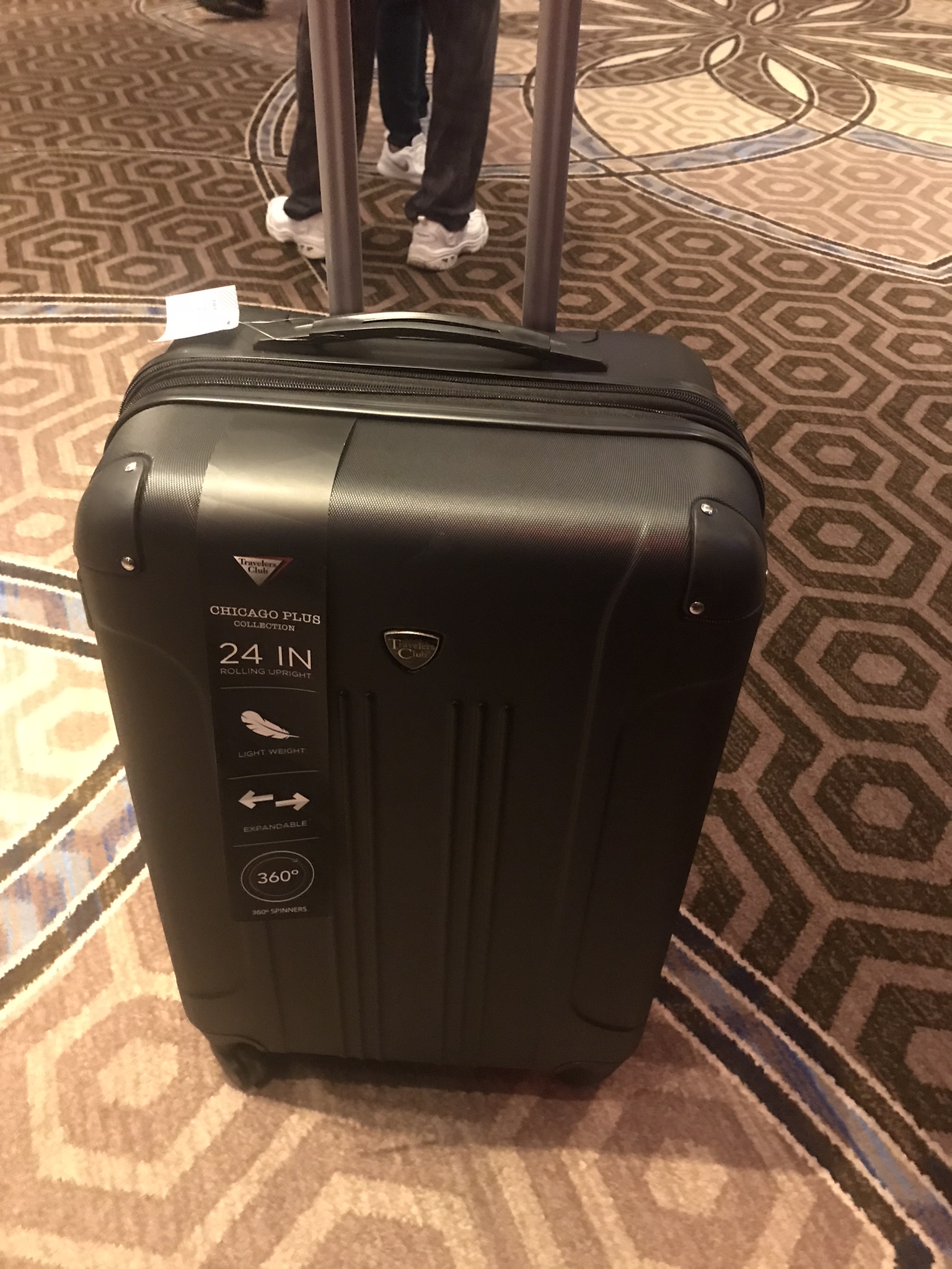 That's too funny. We are going on an Alaska cruise in May and were just talking about upgrading our luggage. This is actually a 2 piece set which includes a checked size and a carry on. This set pretty much fits the bill. Meanwhile, I get in line for the cookie and hot chocolate bar. I brought a sandwich baggie that I very stealthily fill with cookies. Everyone in line is entertained by one of the prizes offered- one of those cash booths where they stick you inside and blow around cash. Grab what you can! I stash the luggage in Foxy.