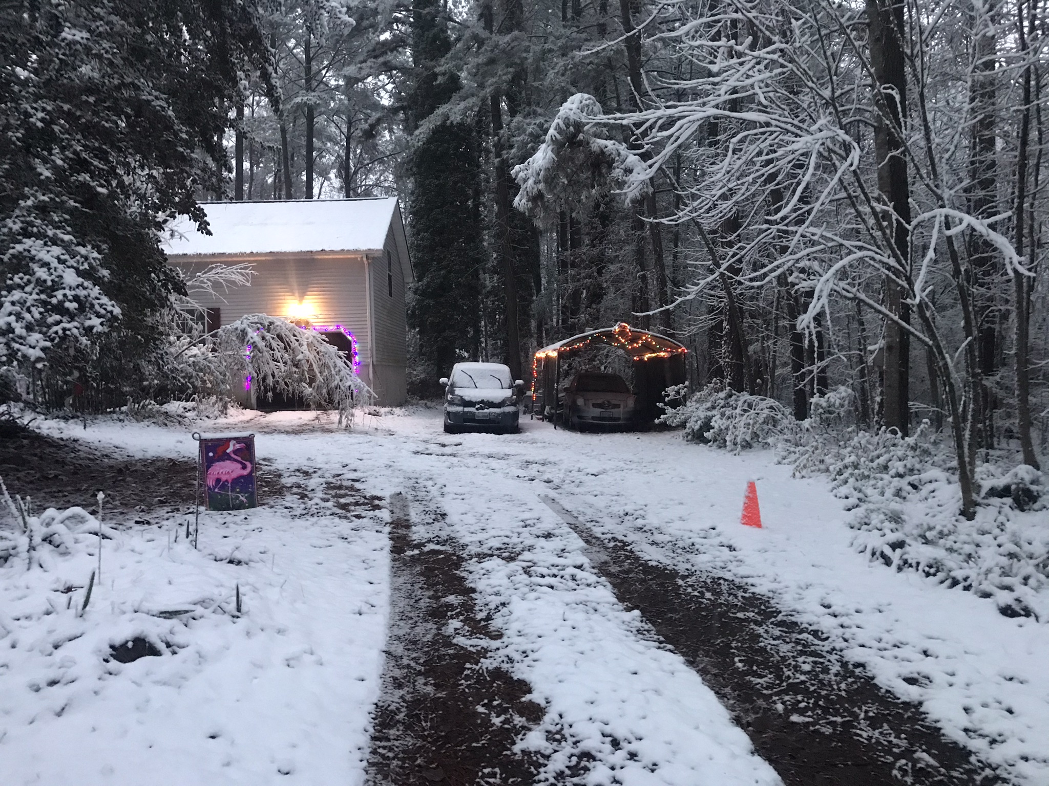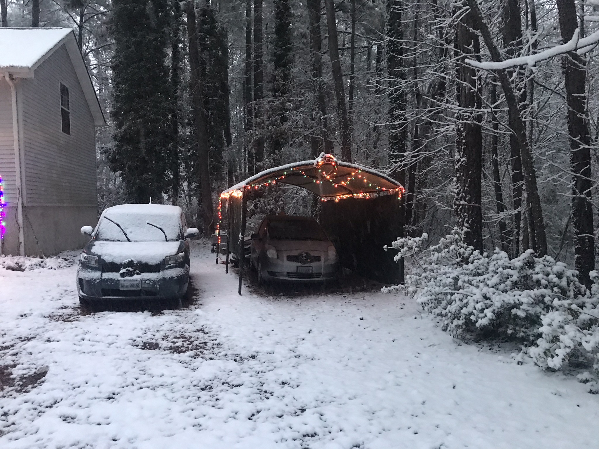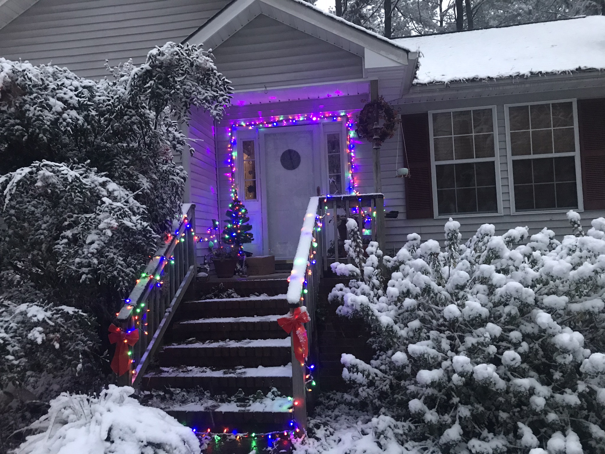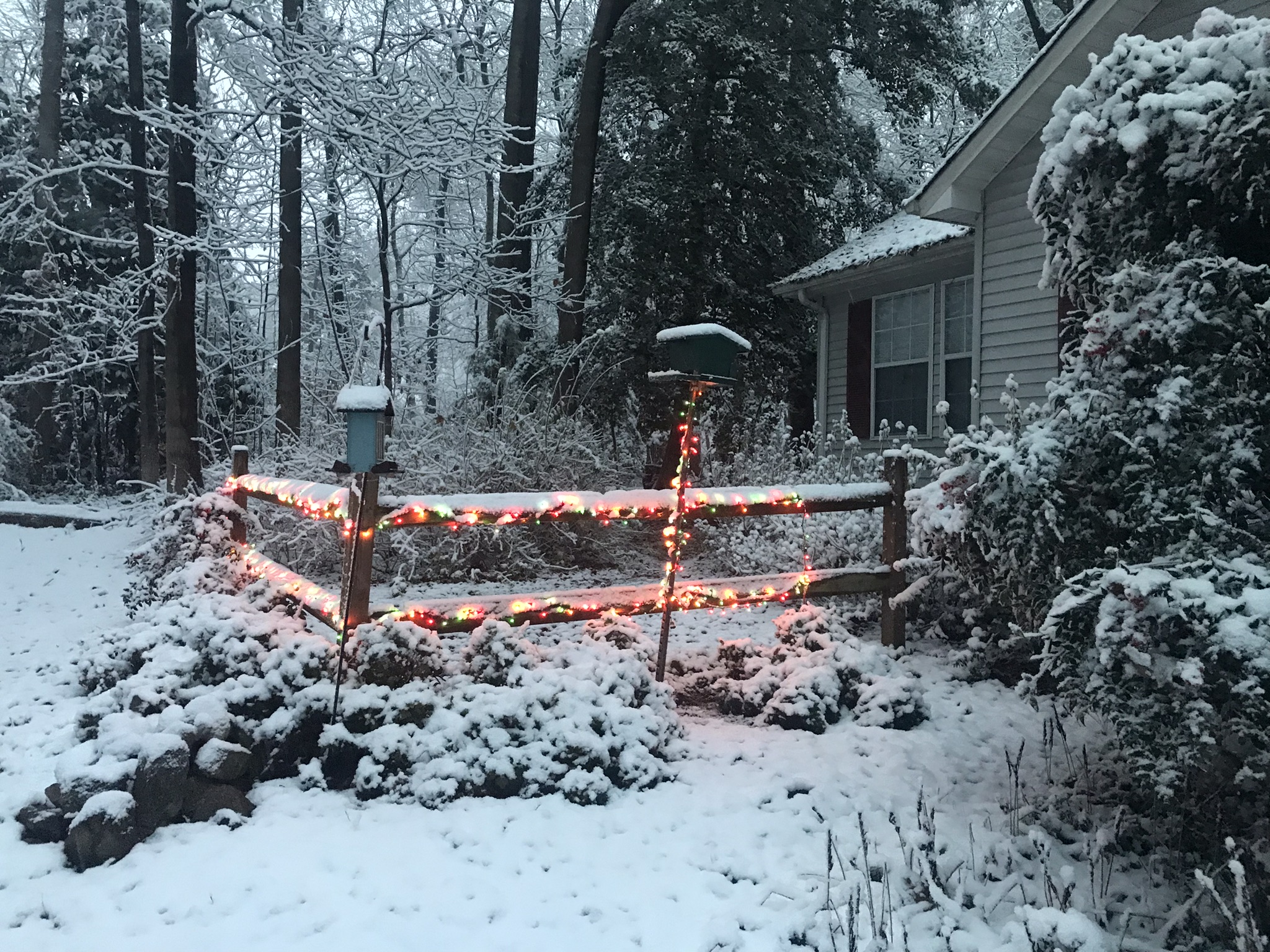 The snow turned to rain while I slept. The christmas lights a twinkling as I drive past, I head down the Eastern Shore and back home to my awaiting Sweet Ti. Well, once again thanks for playing along. See y'all around the neighborhood!