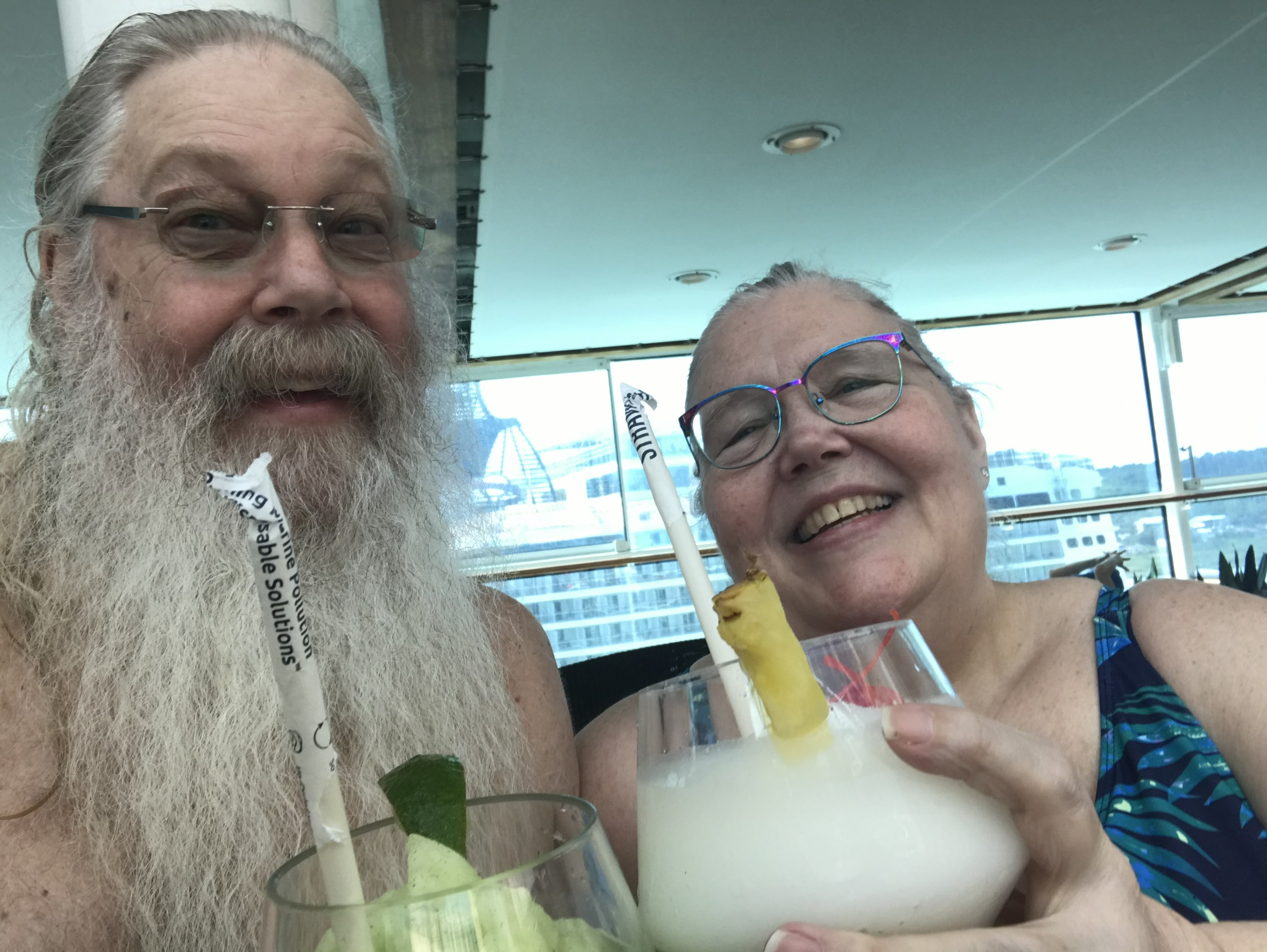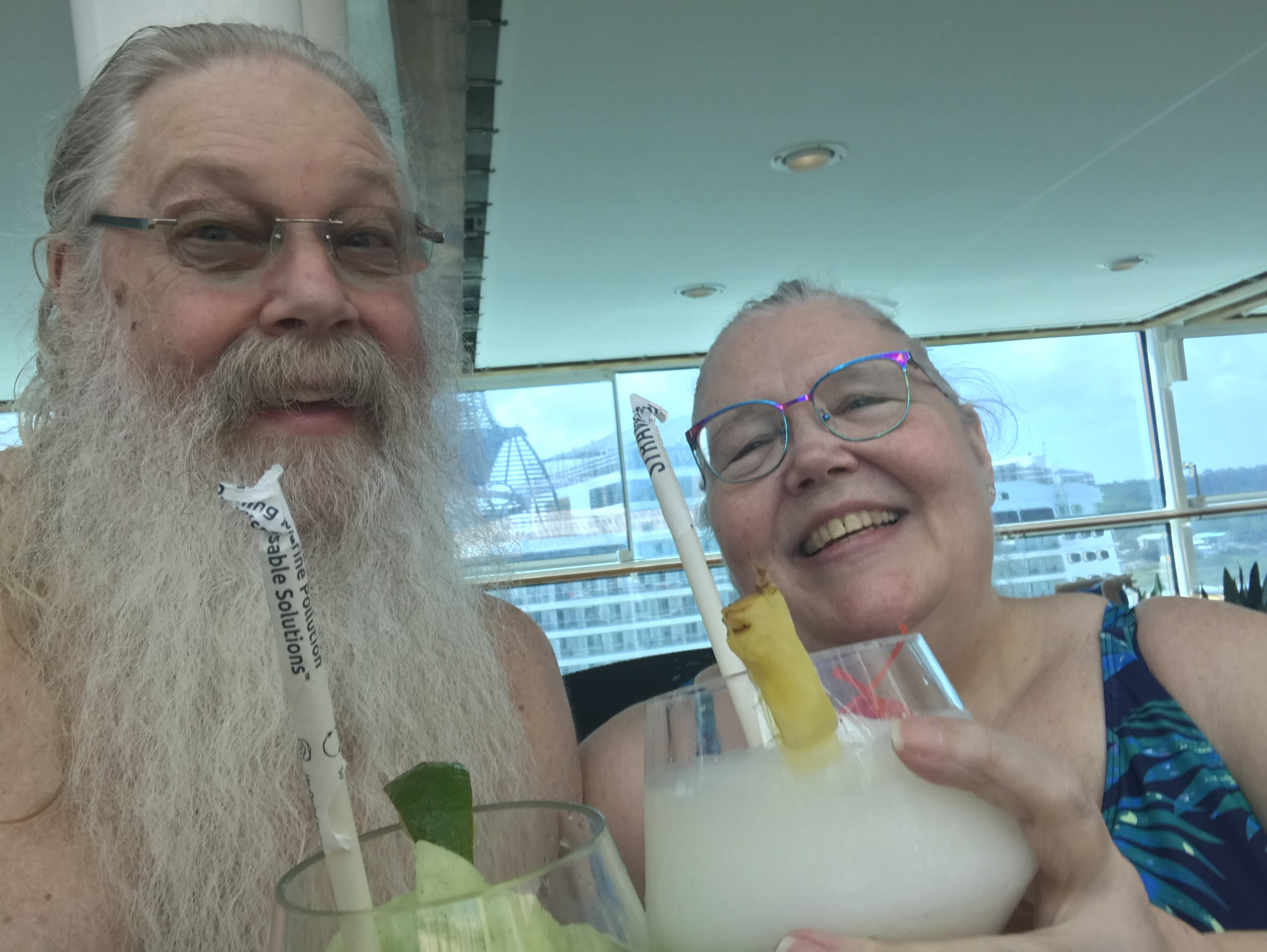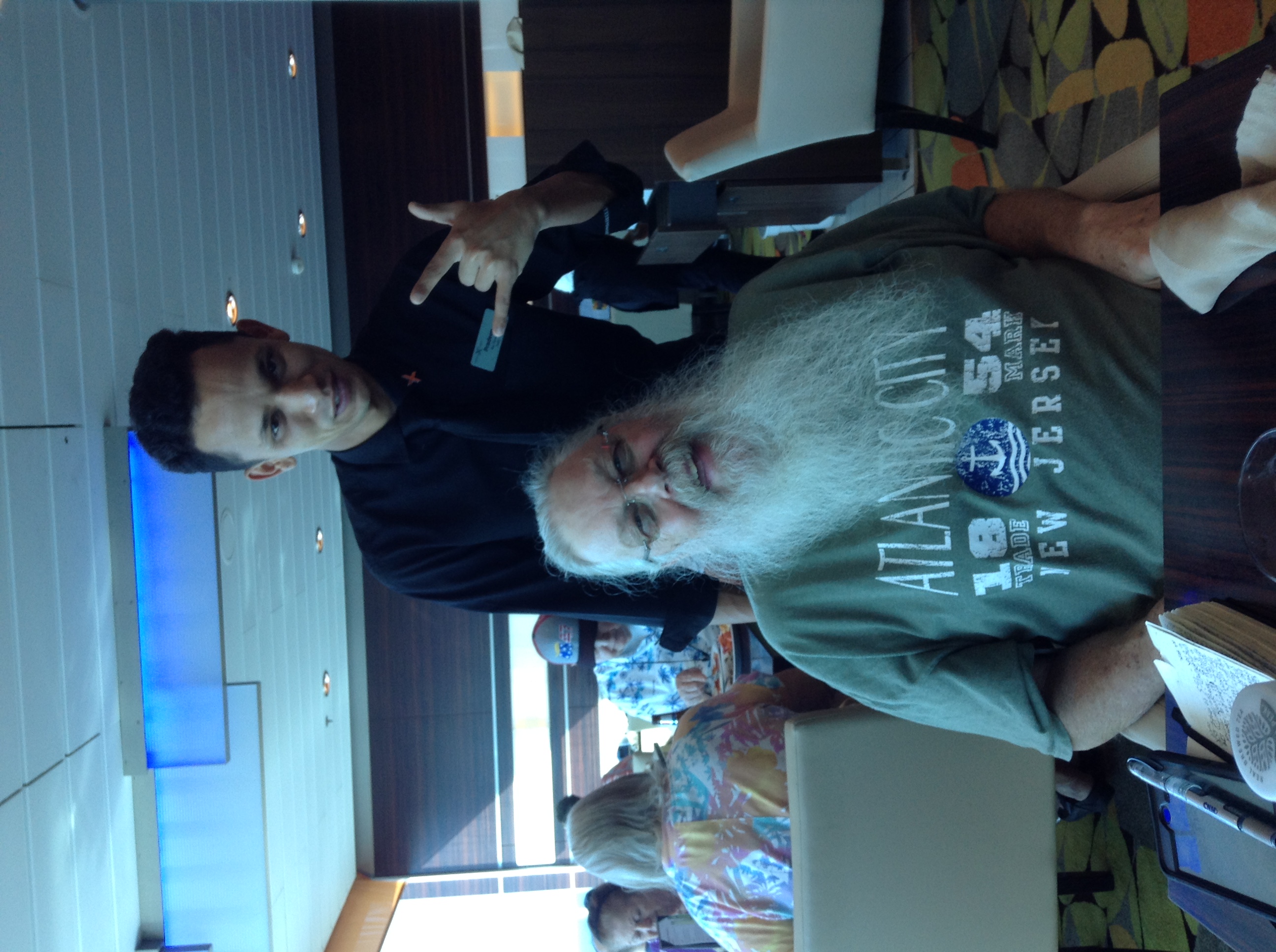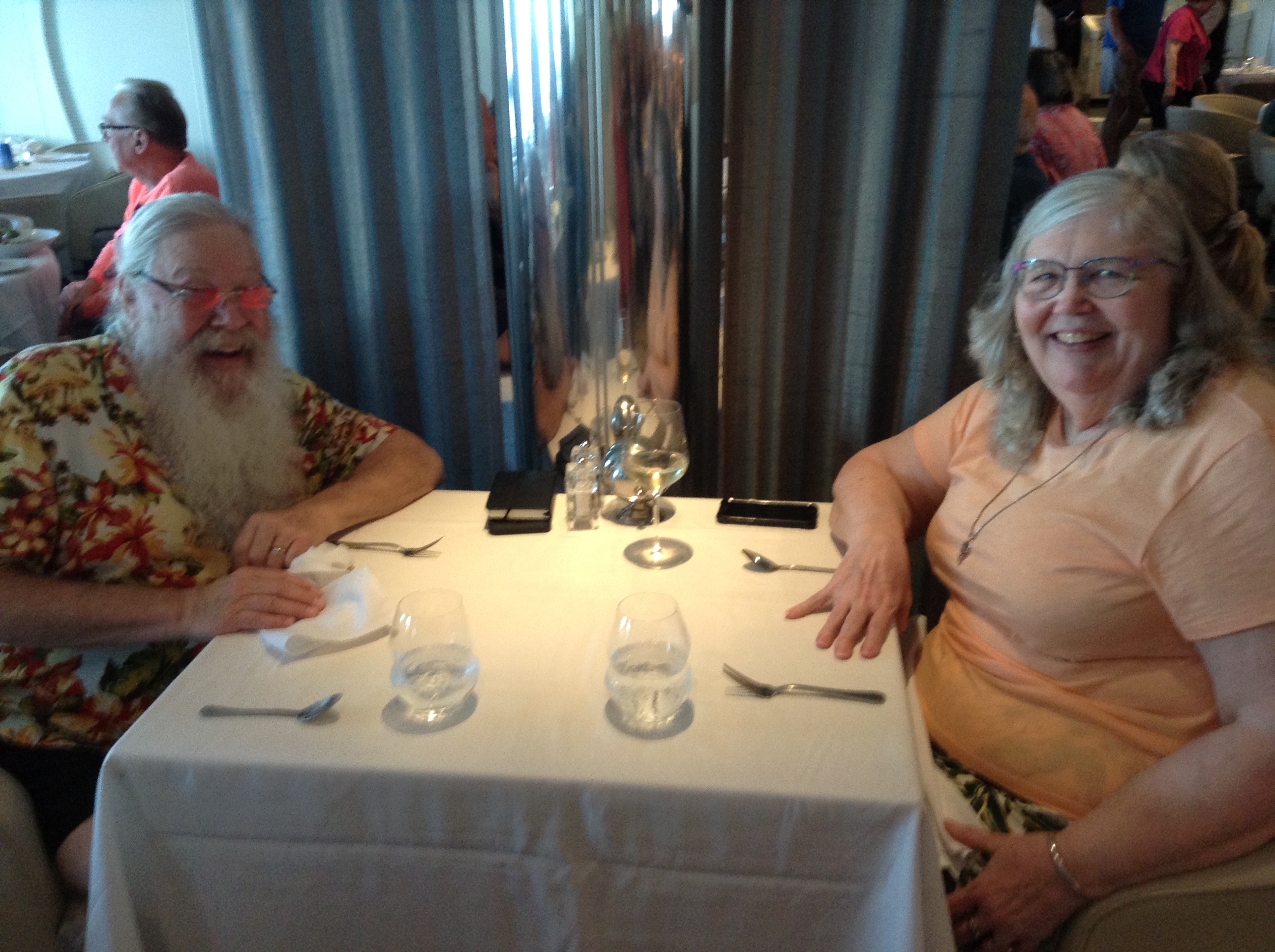 We immediately made friends. Bob and Jane from Boston. Today's cruise locals. They are on the 2nd leg of a b2b as the hipsters say. We start talking about casino comps and Jane says she had a streak of bad luck there last week. We can relate. At least they seem to be fair on the offers generated. Bob works part time for Delta. He retired from a real job but it didn't stick. Great people.