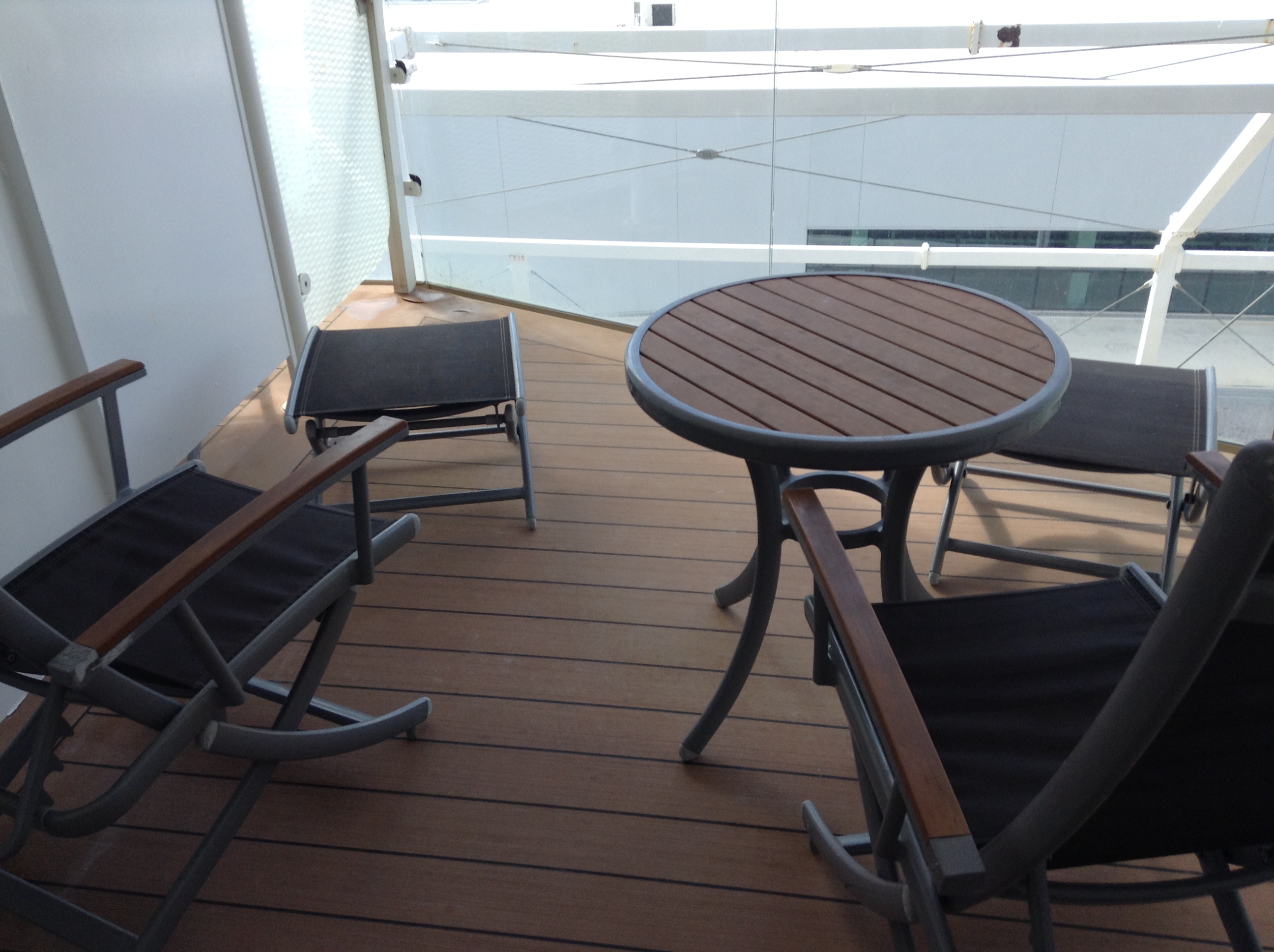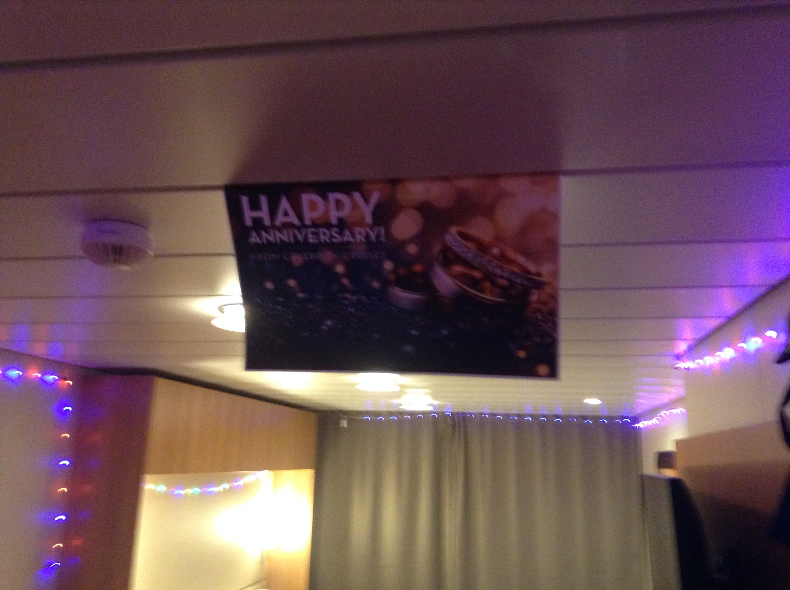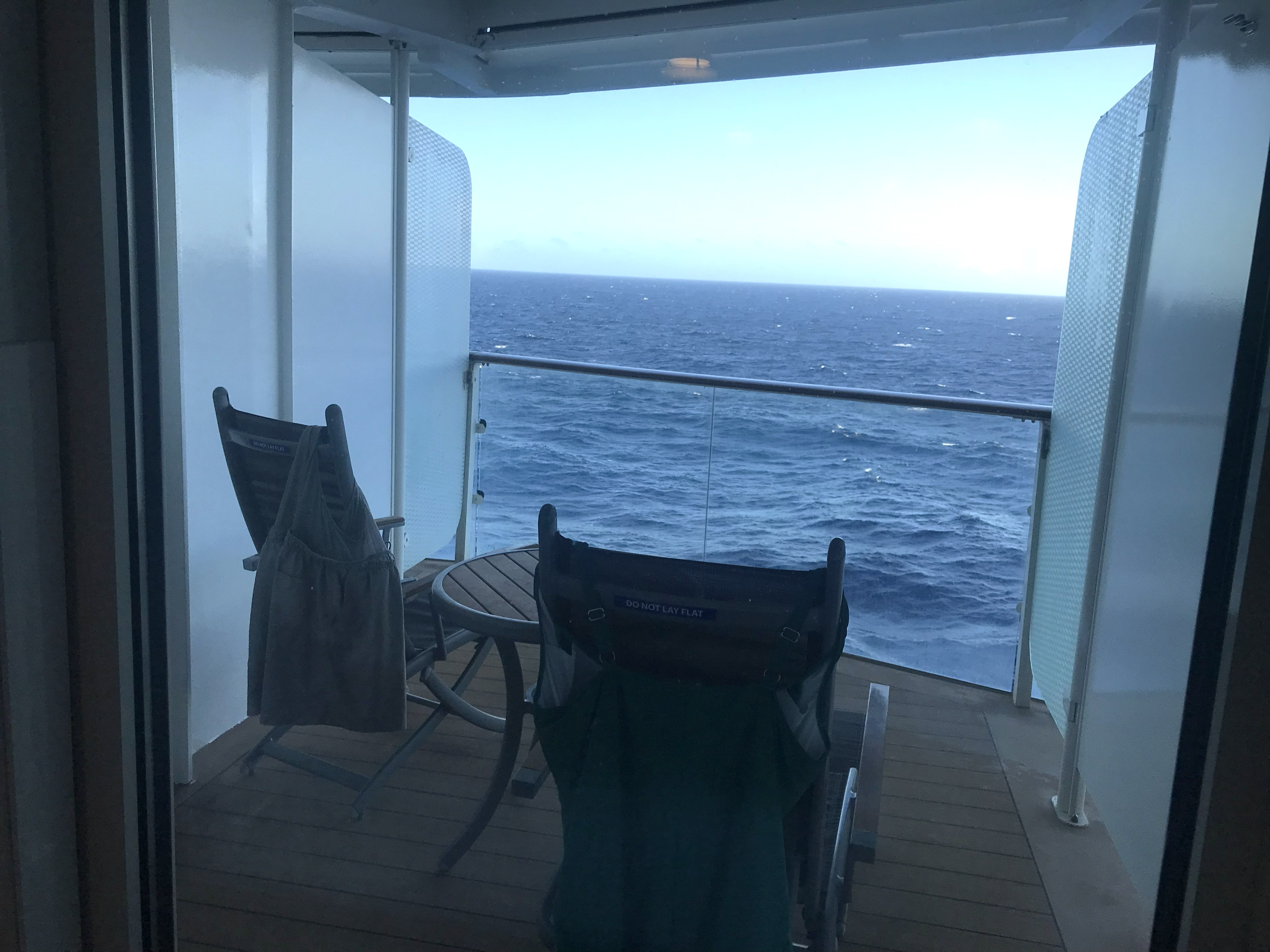 We did a bit of preliminary unpacking and met our room guy Johnny from India. He's by far the oldest crew member we have ever seen. It's his first cruise of a new contract along with his first time attending a concierge class room. We ask after our complimentary sparkling wine and afternoon canapés. I slip him a preliminary gratitude to grease the wheels a bit. We are also invited to the Helipad for the sailaway but demur. We both are wearing flip flops and the invite specifically says closed toed shoes. I don't plan on wearing anything but flip flops for the next 10 days. The captain comes on the blower and gives his spiel about safety and weather (3-4 meter seas!) and then spends quite a while talking about health and hand washing. There was a pretty substantial outbreak of stomach virus an a recent voyage on the Eclipse. Everywhere you go crew are cleaning and dispensing hand sanitizer. And we're off!