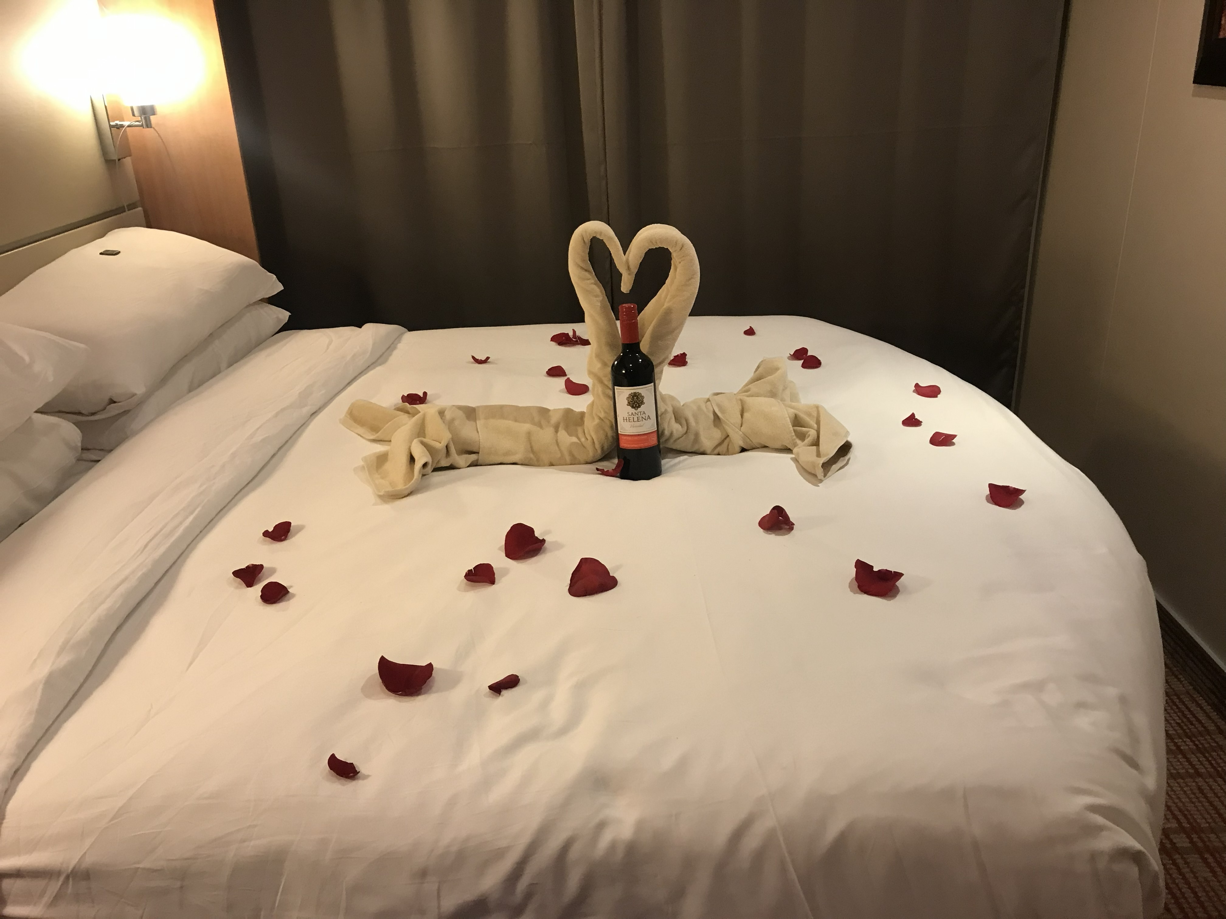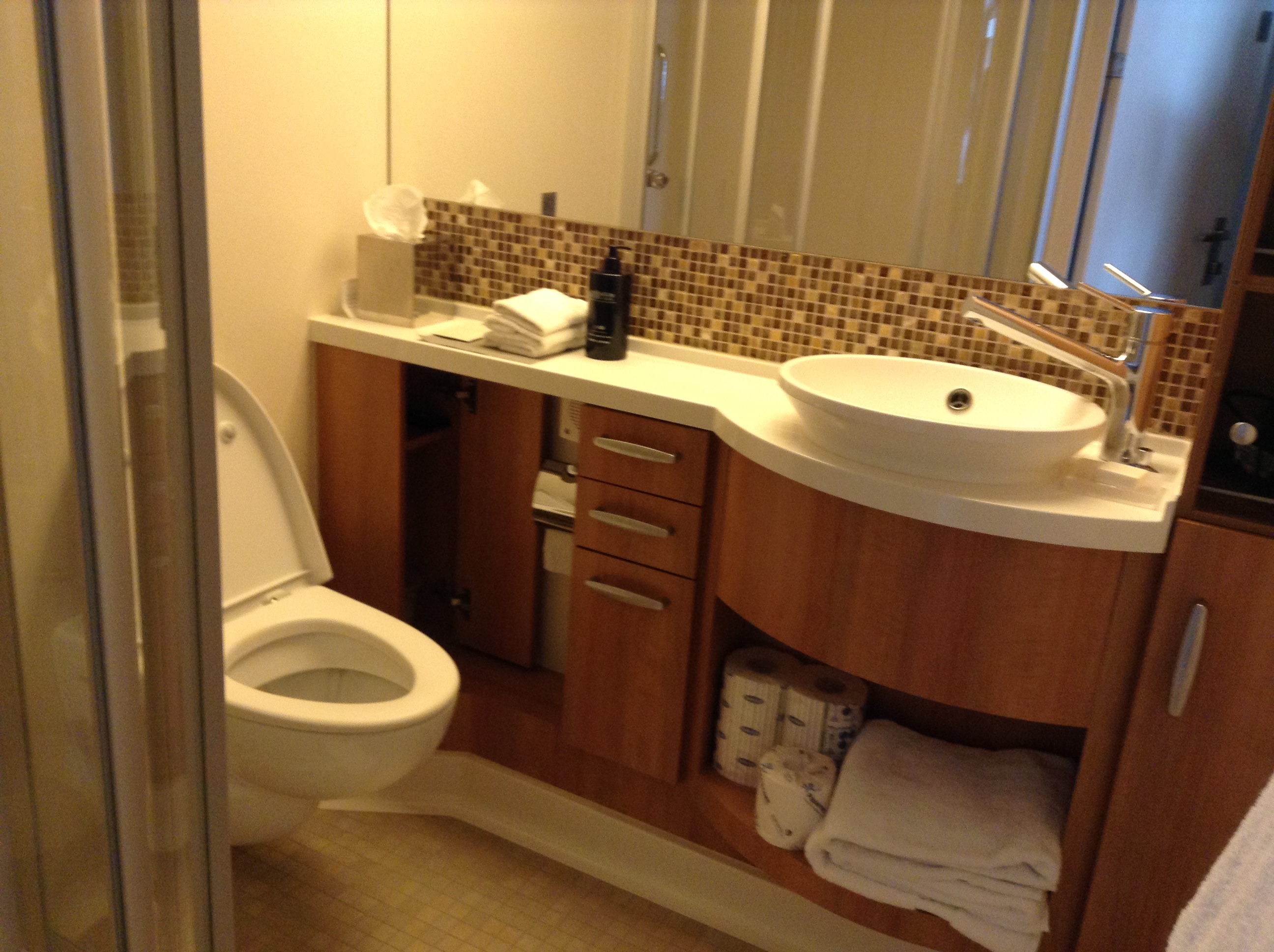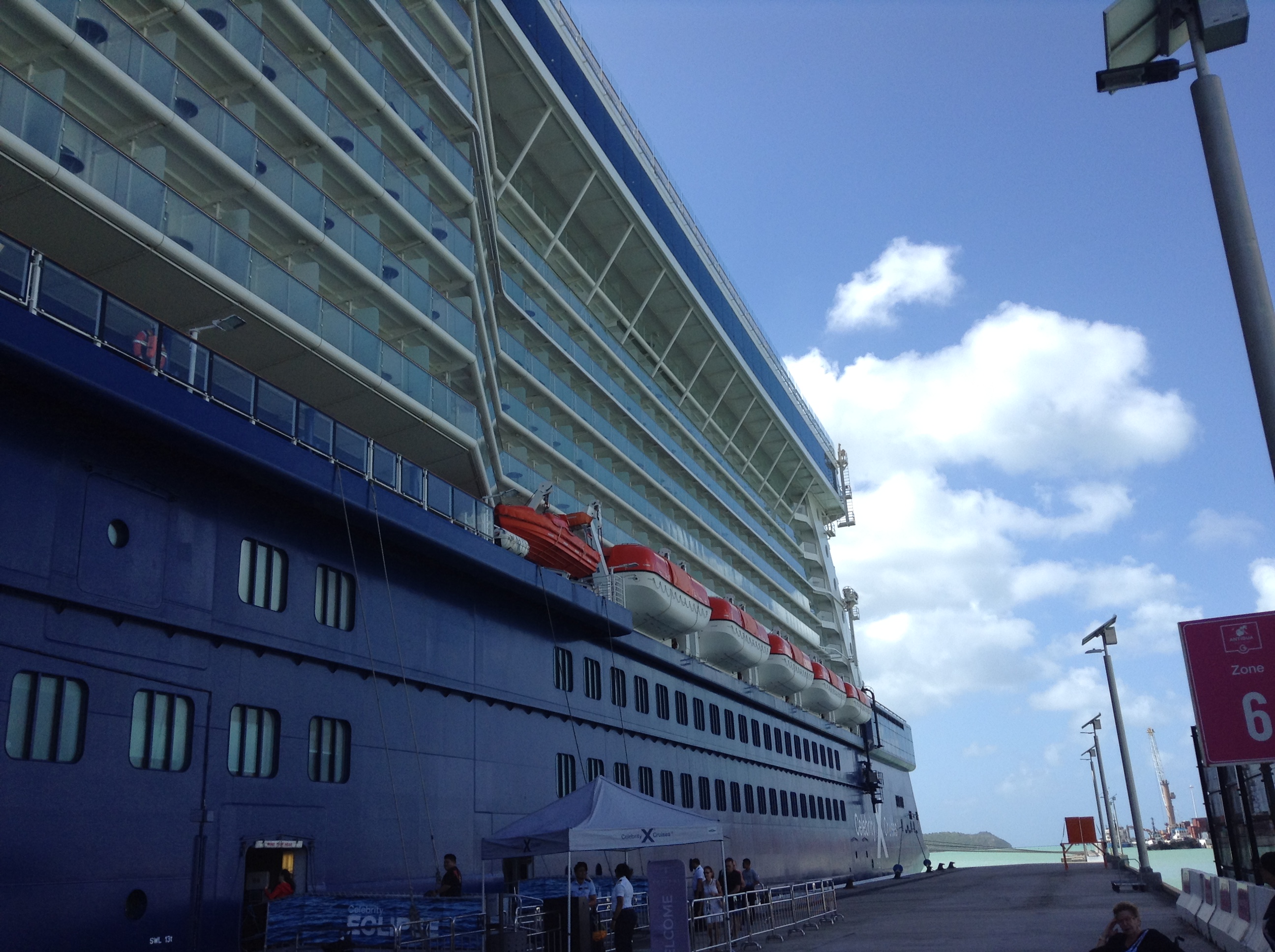 We did a bit of preliminary unpacking and met our room guy Johnny from India. He's by far the oldest crew member we have ever seen. It's his first cruise of a new contract along with his first time attending a concierge class room. We ask after our complimentary sparkling wine and afternoon canapés. I slip him a preliminary gratitude to grease the wheels a bit. We are also invited to the Helipad for the sailaway but demur. We both are wearing flip flops and the invite specifically says closed toed shoes. I don't plan on wearing anything but flip flops for the next 10 days. The captain comes on the blower and gives his spiel about safety and weather (3-4 meter seas!) and then spends quite a while talking about health and hand washing. There was a pretty substantial outbreak of stomach virus an a recent voyage on the Eclipse. Everywhere you go crew are cleaning and dispensing hand sanitizer. And we're off!