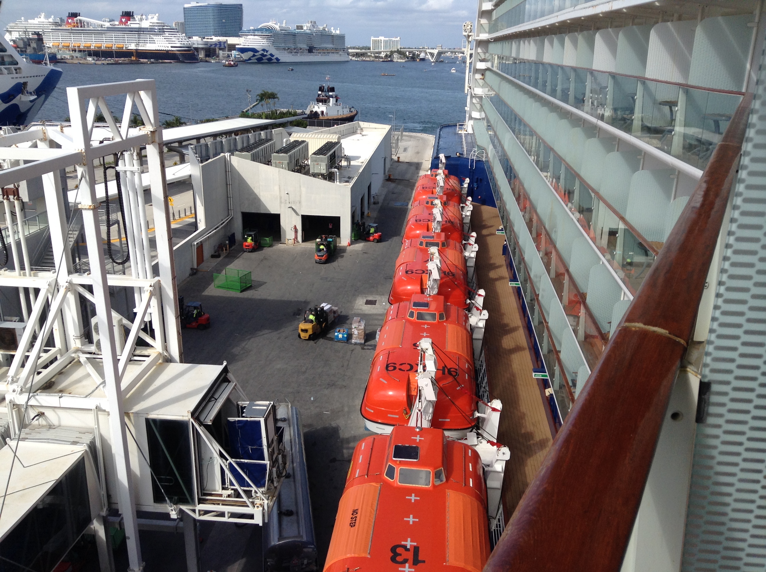 Hey Now! Yet another glorious day in southern FLA. Except for the fact that it's 47º! Brr. I hit DD for Coffee Elizabeth and we do our packing and whatnot. There's no major rush- although we are in a concierge cabin this trip so we have early boarding that's not until around 11 a.m. So we take our sweet time. The traffic headed south on I95 is basically non existent. Noice! We pull Middy into the Hertz rental return. The last trip upon the return of our rental we were personally escorted to our ship by a lovely Hertz employee of 35 years- Wes. Such an unexpected kindness. Could lightening strike twice?? I get out of the car and ask after wes. And there he is! We greet him and ask how his family is doing. And oh by the way how about a lift? This is doable except that our car hadn't been processed yet so we had to move everything to another car. That done we are on our way. Everything was looking good until I realized that I had left my phone in the dash of Midnight, Shit. the. bed. Wes is thoroughly nonplussed. He gets on the phone and starts barking orders while executing a textbook u turn. We blast back into the Cypress Garage and search Midnight to no avail. Wes takes off for the office. He's still trying to run down the dude who processed our car. Turns out the dude found my phone right away and turned it in. he just didn't bother to answer his phone. Wes shows up with my phone. We take off once again. In no time we are pulling into Terminal 25. Great job Wes! We lavish him with praise and greenbacks and promise not to forget anything next time. Thanks for the ride Wes!!