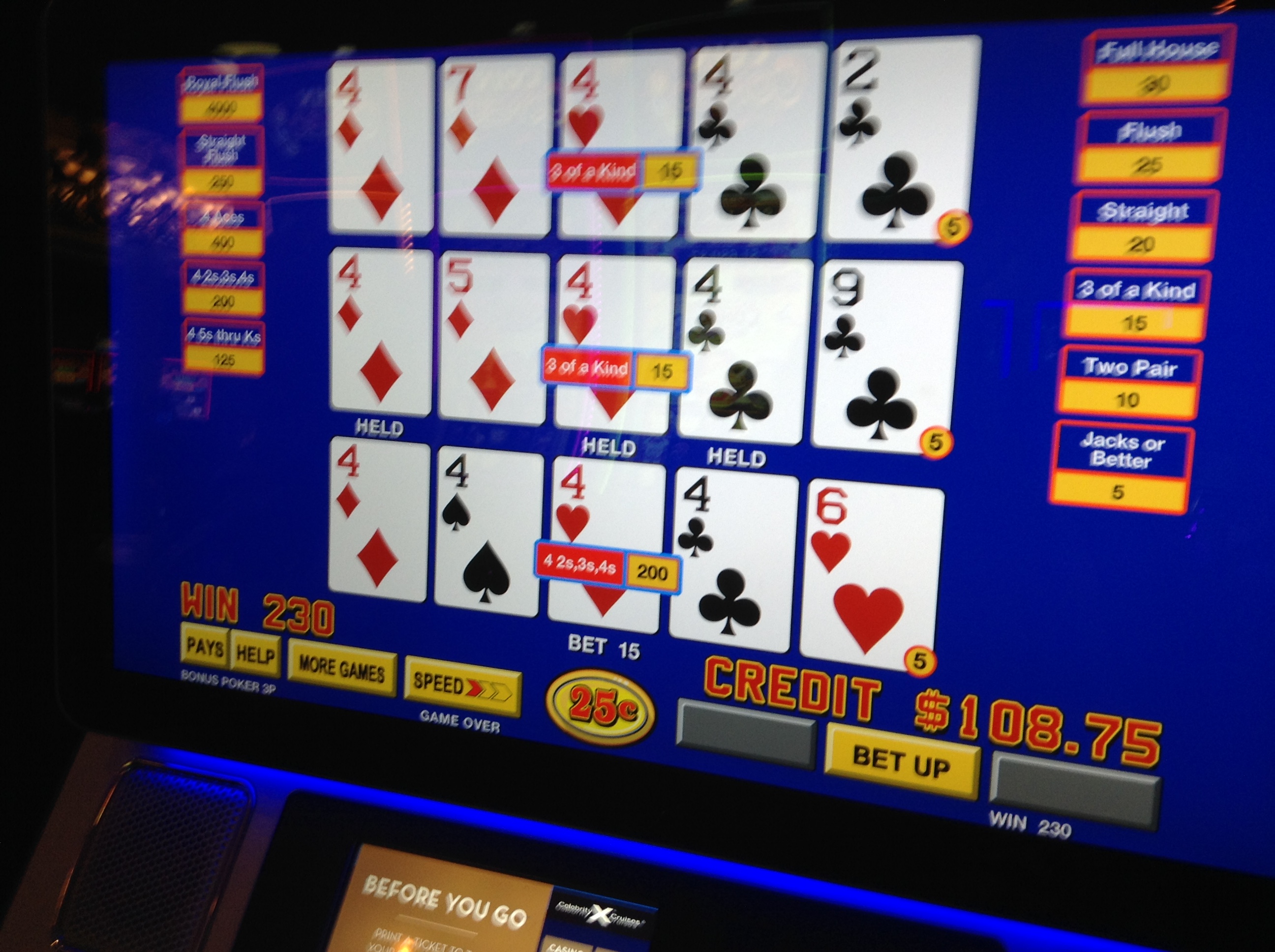 We ate at The Grill. We were going to procure player's cards to take advantage of whatever discount they might offer, but today is gift day. The line is plaid! So we dined sans comp. Ouch. We walked around for a bit and found the video poker machines in the high limit section. They offer an interesting variety of games including Pick a Pair. We played a bit and then headed back to the room. We got settled in and Sweet Ti was ready for an afternoon nap. So I tucked her in and hit the road again.