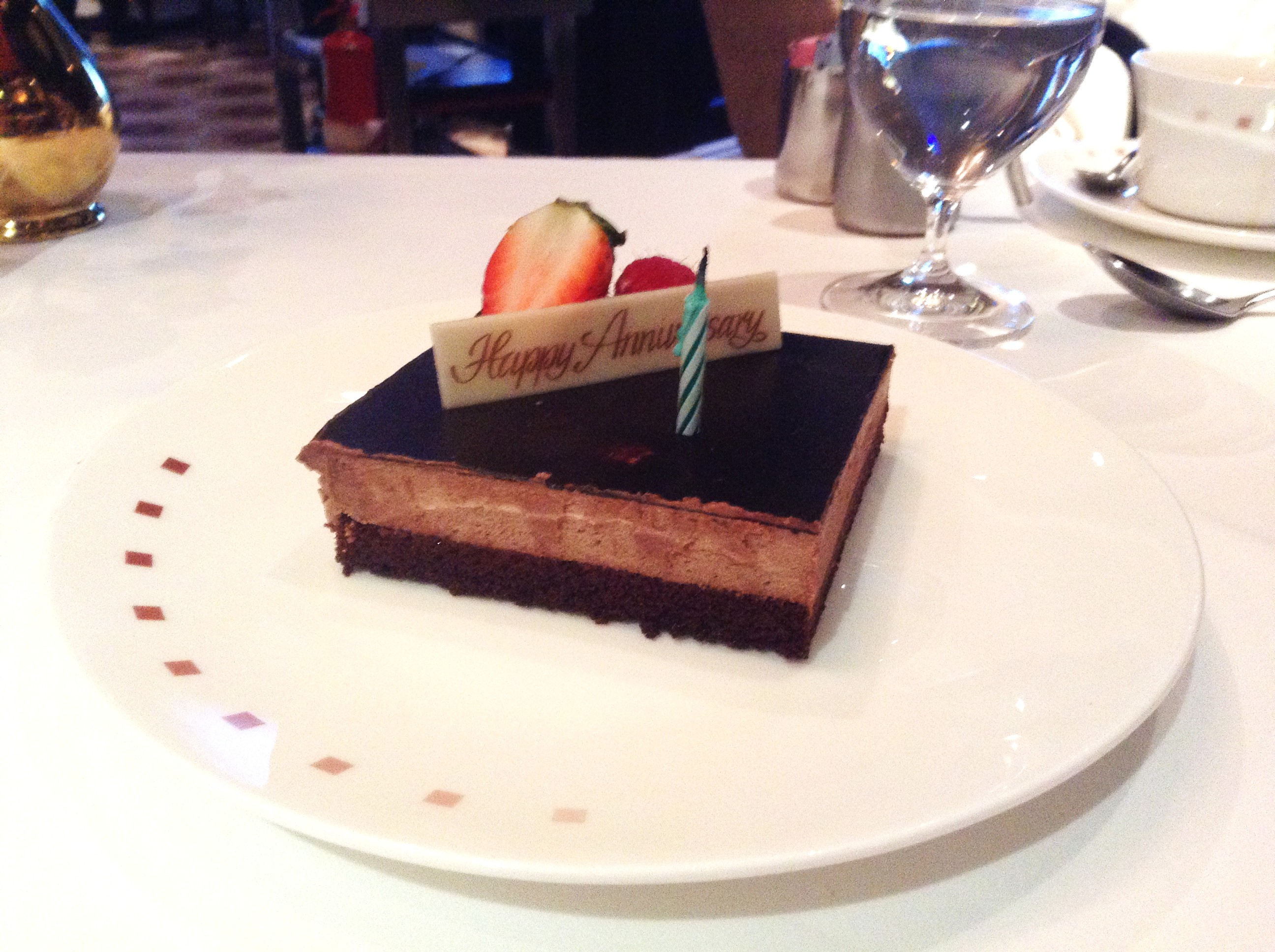 Dewa is our server for our lovely lunch. Pictured above are interesting breads, crab salad, scallops, filet and lamb chops. Delicious. As we are awaiting our deserts, Dewa shows up with a surprise.
