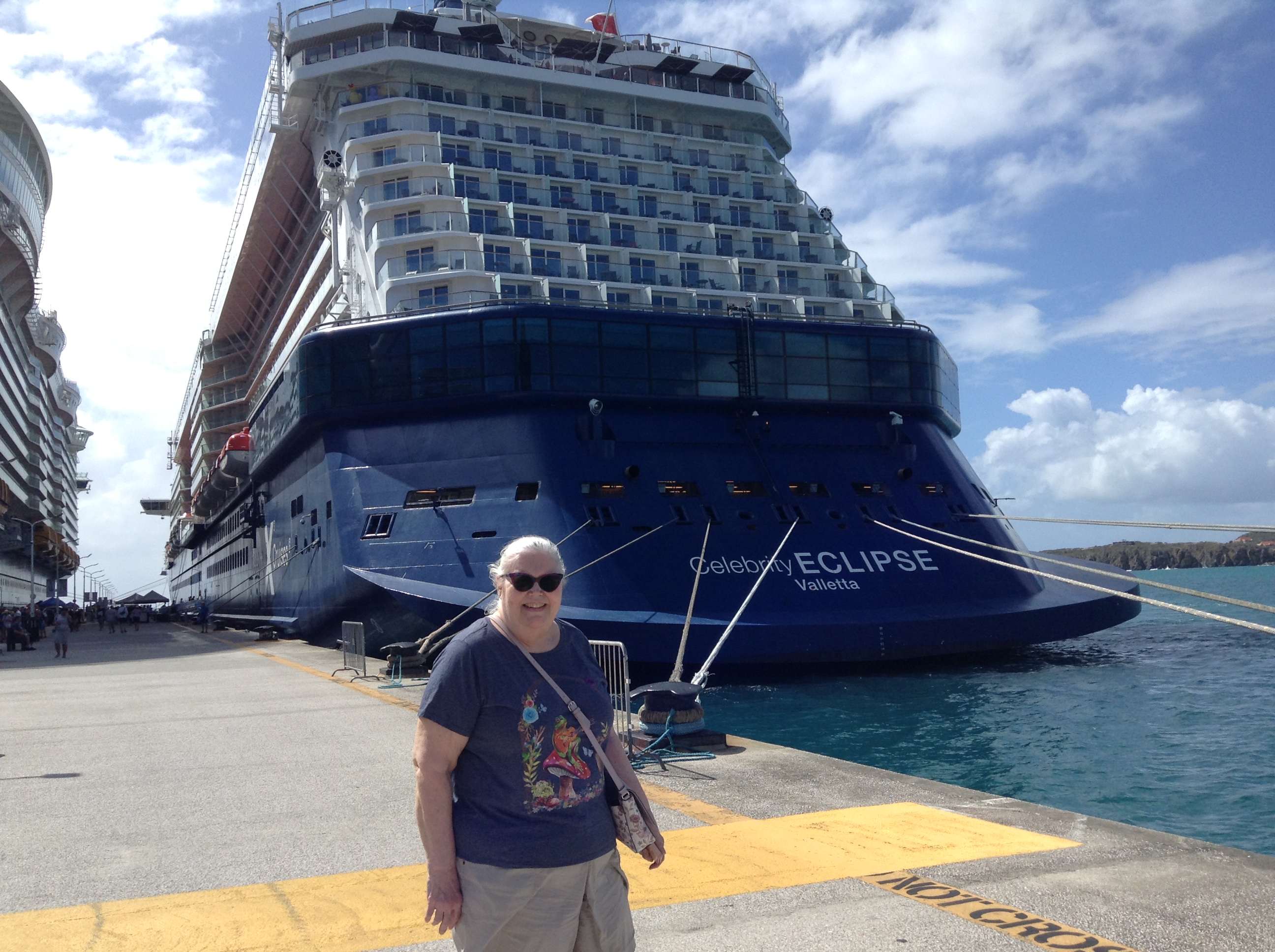 We were just on Antigua a few months back and there's not much else to see right around the port area. Maybe I can come up with a mascot for Stretch. I guess I need to hit the Boardwalk Casino to see if they are dealing. Plus try to retrace my steps from a previous trip and find that dirt cheap souvenir shop. Sweet Ti is set at her Solarium. I set off.