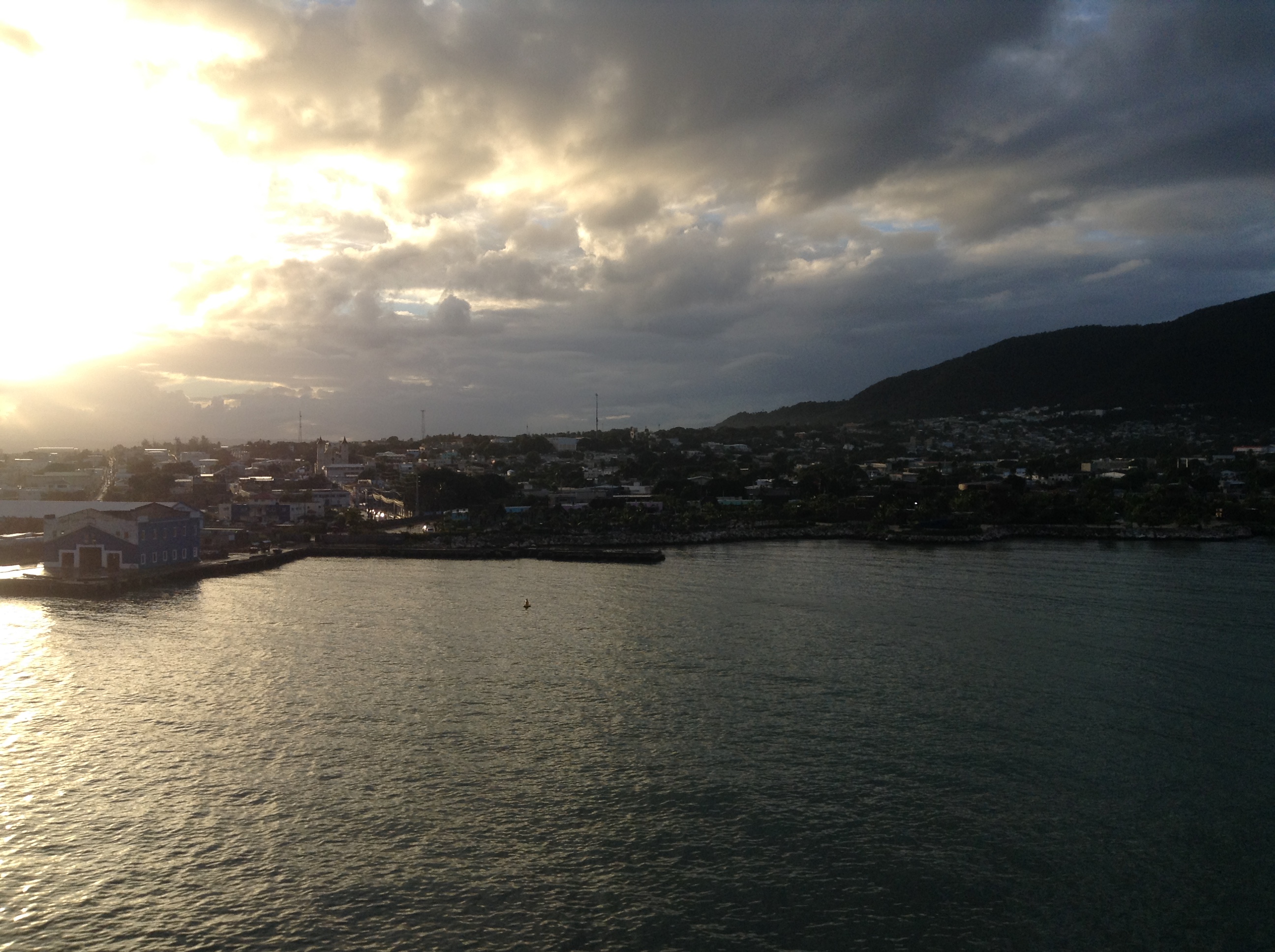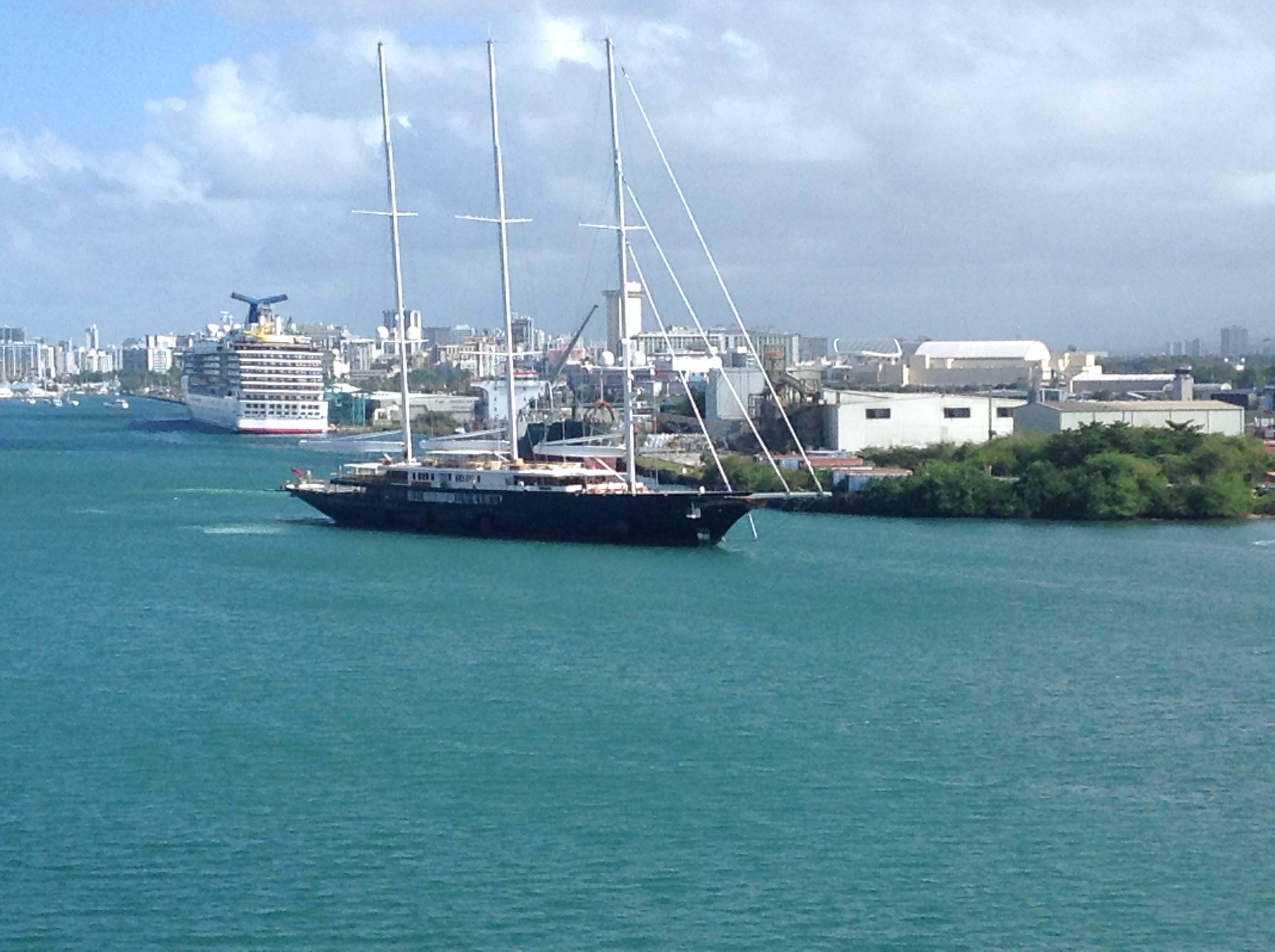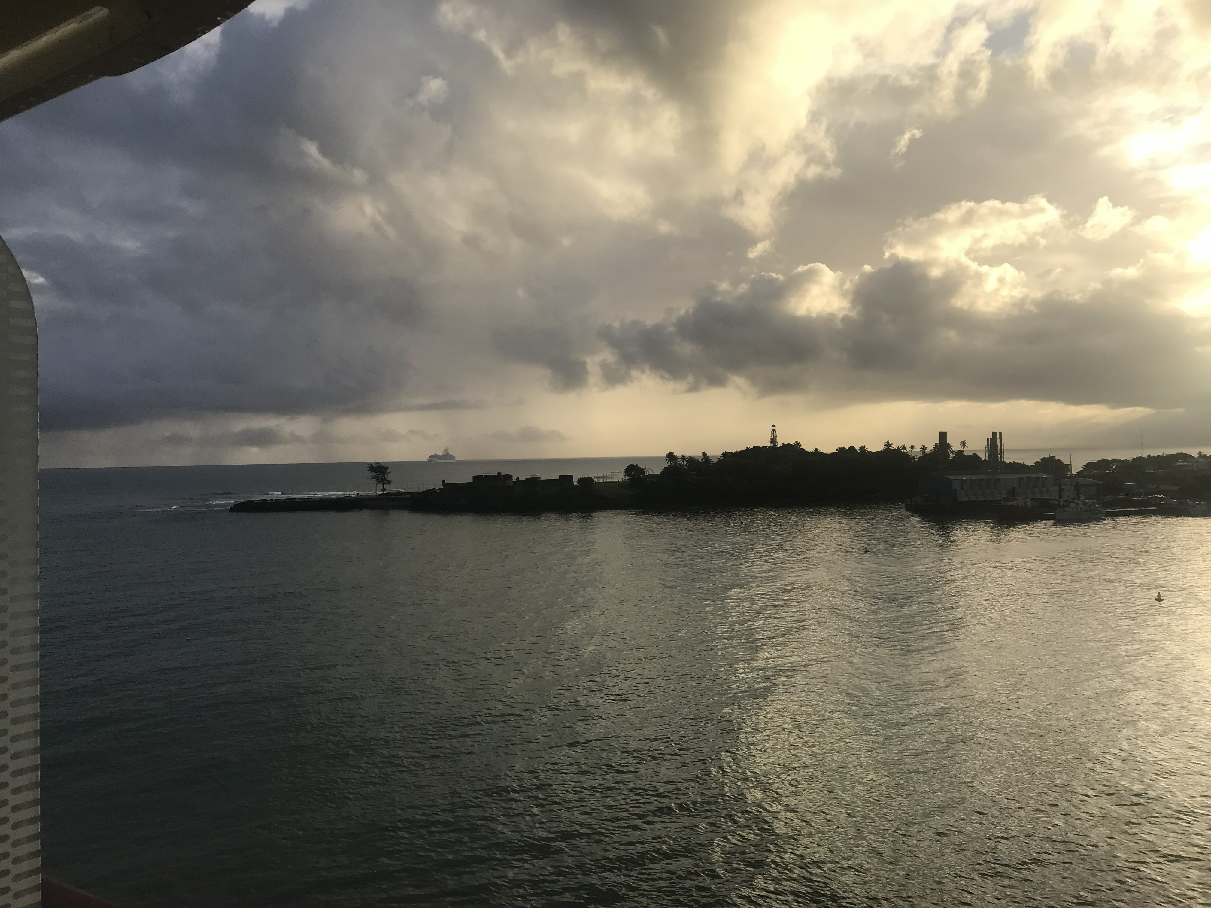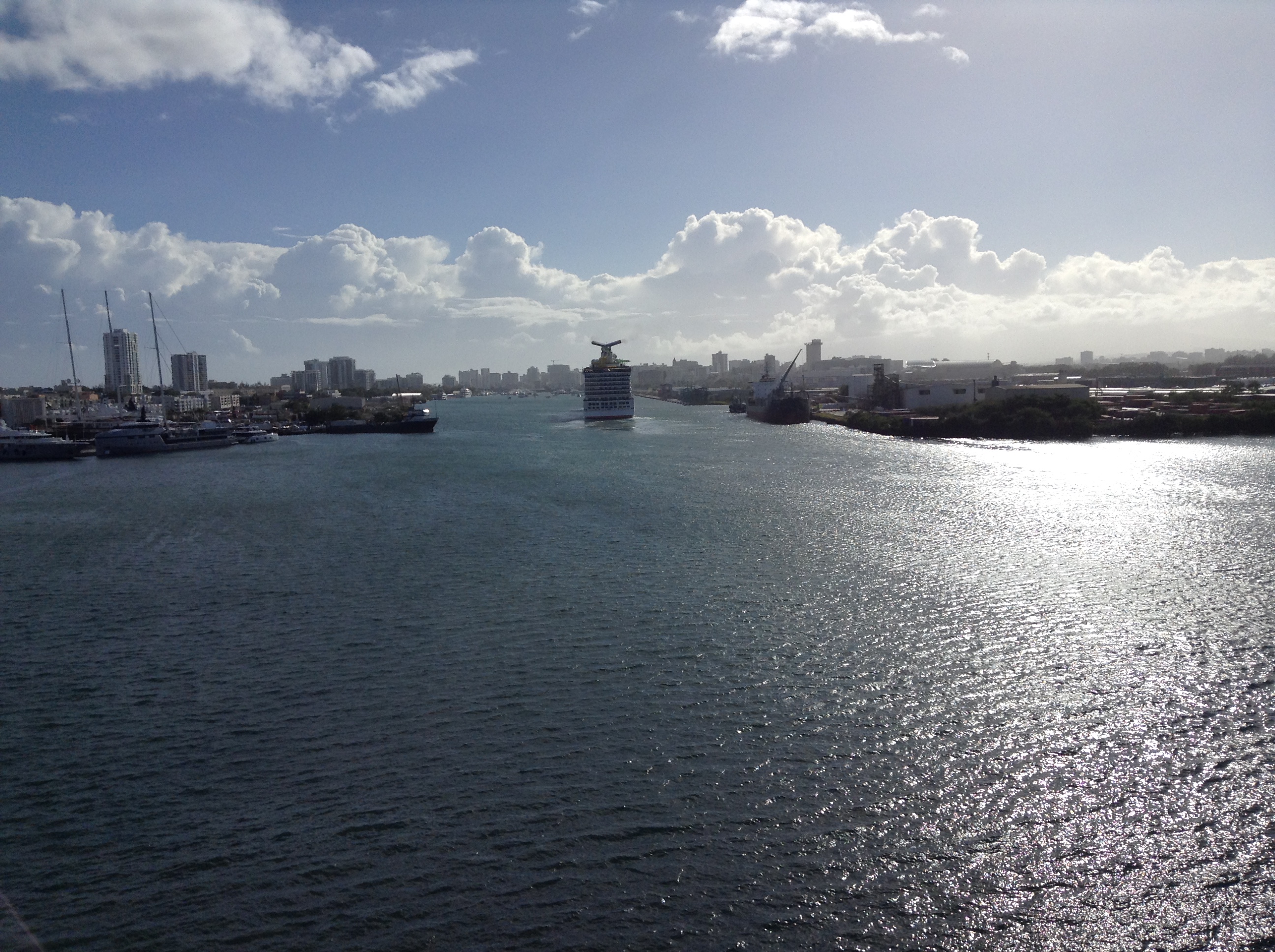 Hew Now! Good Morning from San Juan. Beautiful day here in Puerto Rico. We slept in. Since we were just here a little over a year ago on our Leeward Ho saga. We probably won't even leave the ship today. But we lucked out with our berth for today. The whole of the eastern side of the harbor is within our pervue. And the pop up thunderstorms provided an all day matinee.