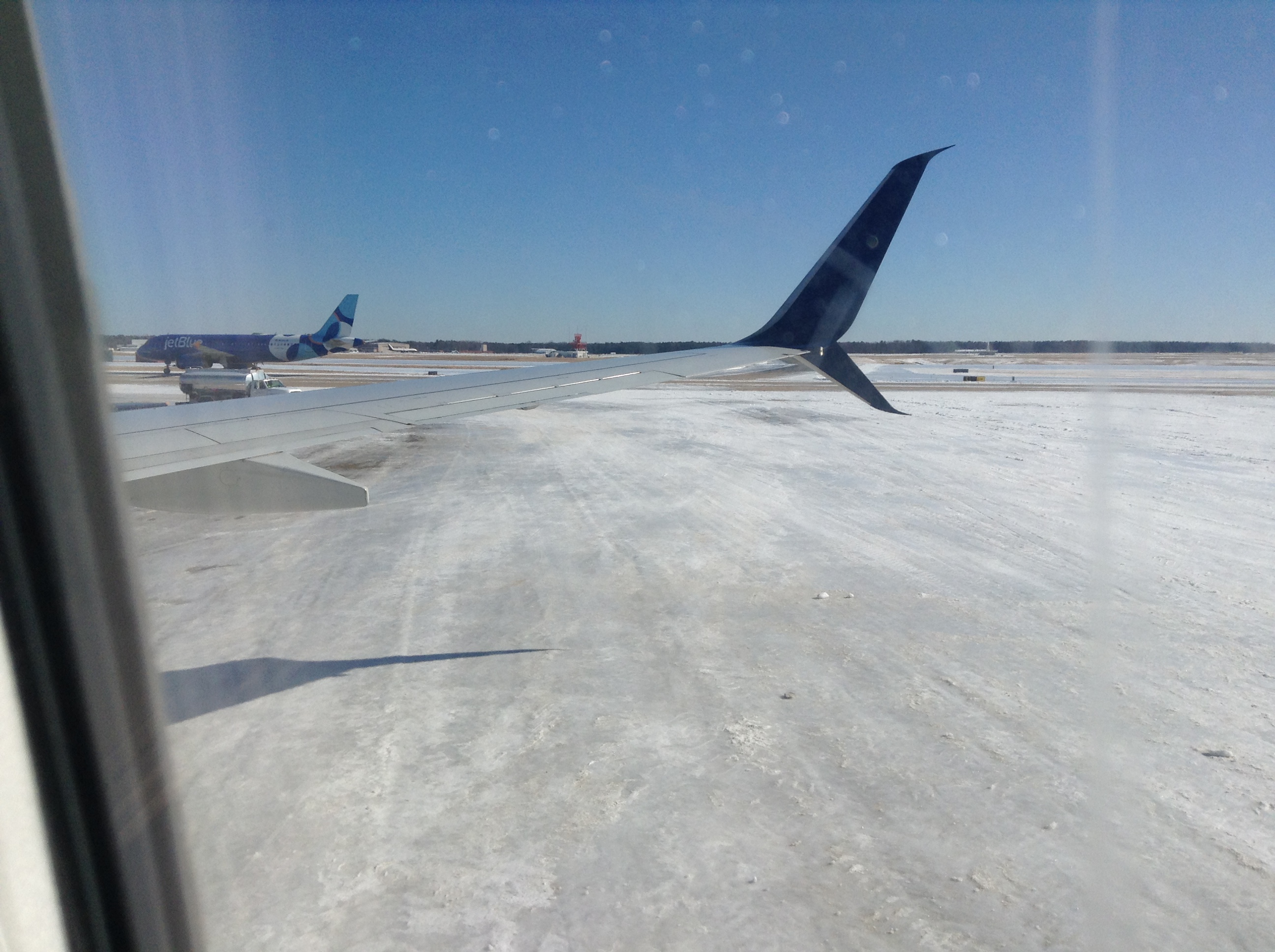 After 40 minutes of trying unsuccessfully to move the jet bridge they gave up and moved us to another gate. This time the jet bridge worked and we finally de plane an hour late. Quick shuttle and we return to an ice bound Foxy.