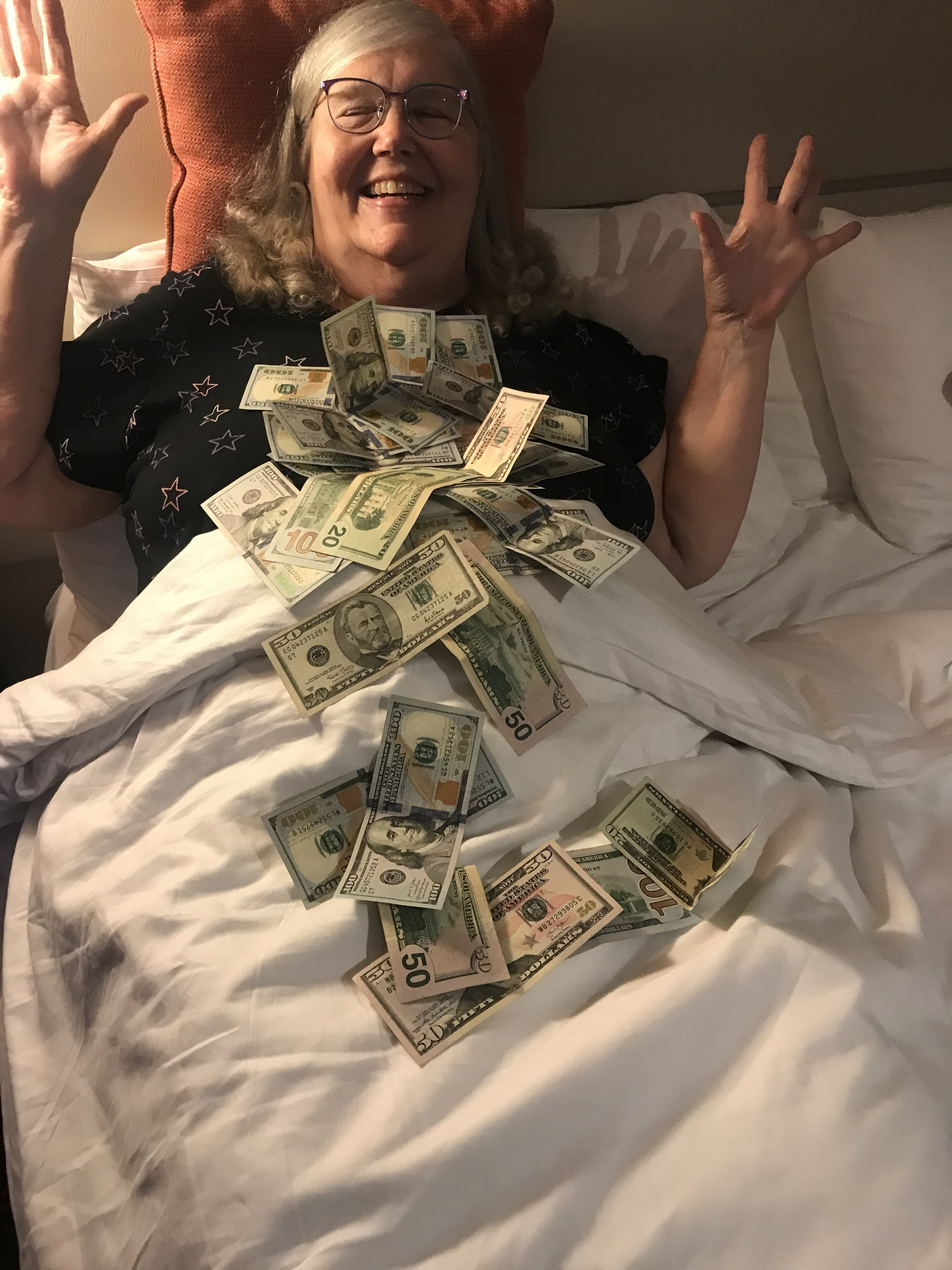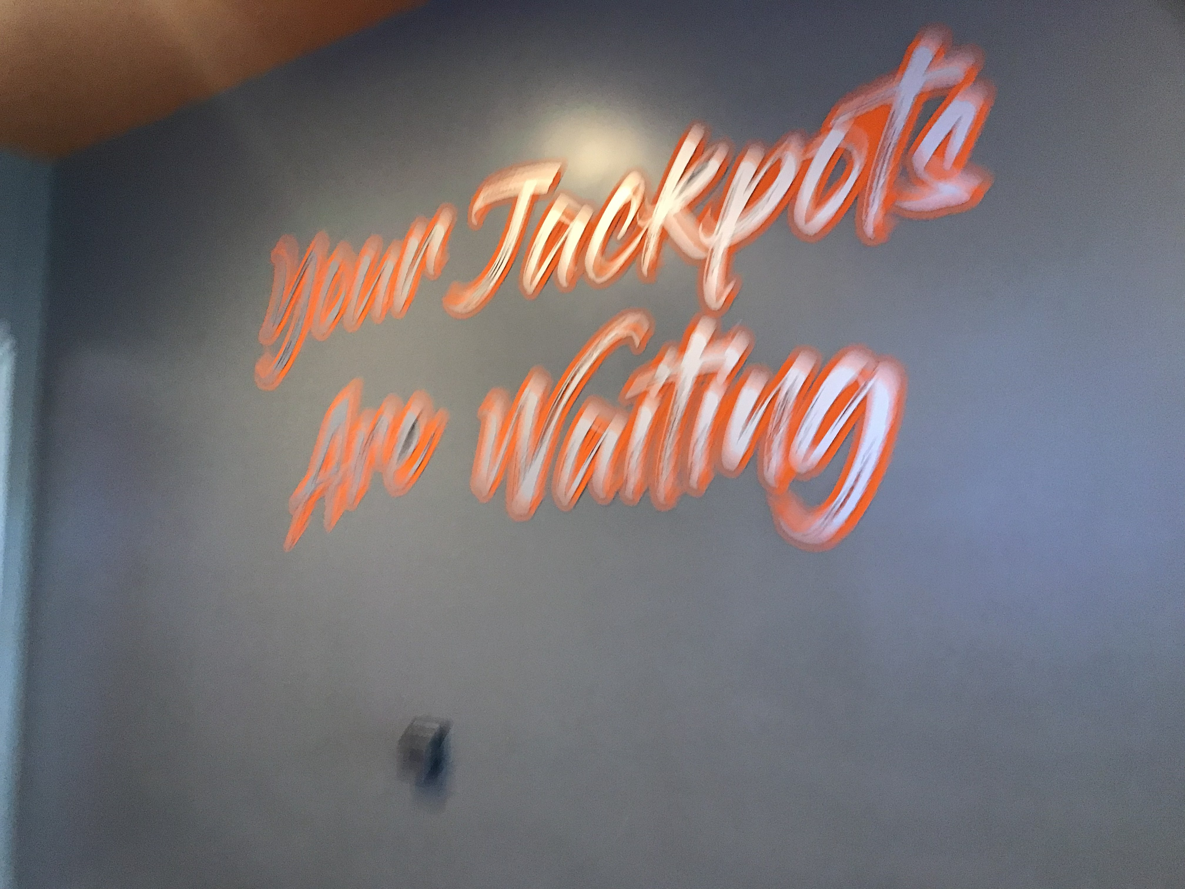 So every evening they have a so called Snowball Raffle. One lucky player has 10 minutes to respond to their name being called. One entry per 100 points earned in the casino. Nobody won it last night. I'm playing with Bob and Eddie and boom! they call my name. So I jump up and head for the cage. I'm standing there in line and get up to the counter and the tller says that I've got to go to the host desk. That's on the other side of the casino. "You have 2 minutes!!!" I made it.