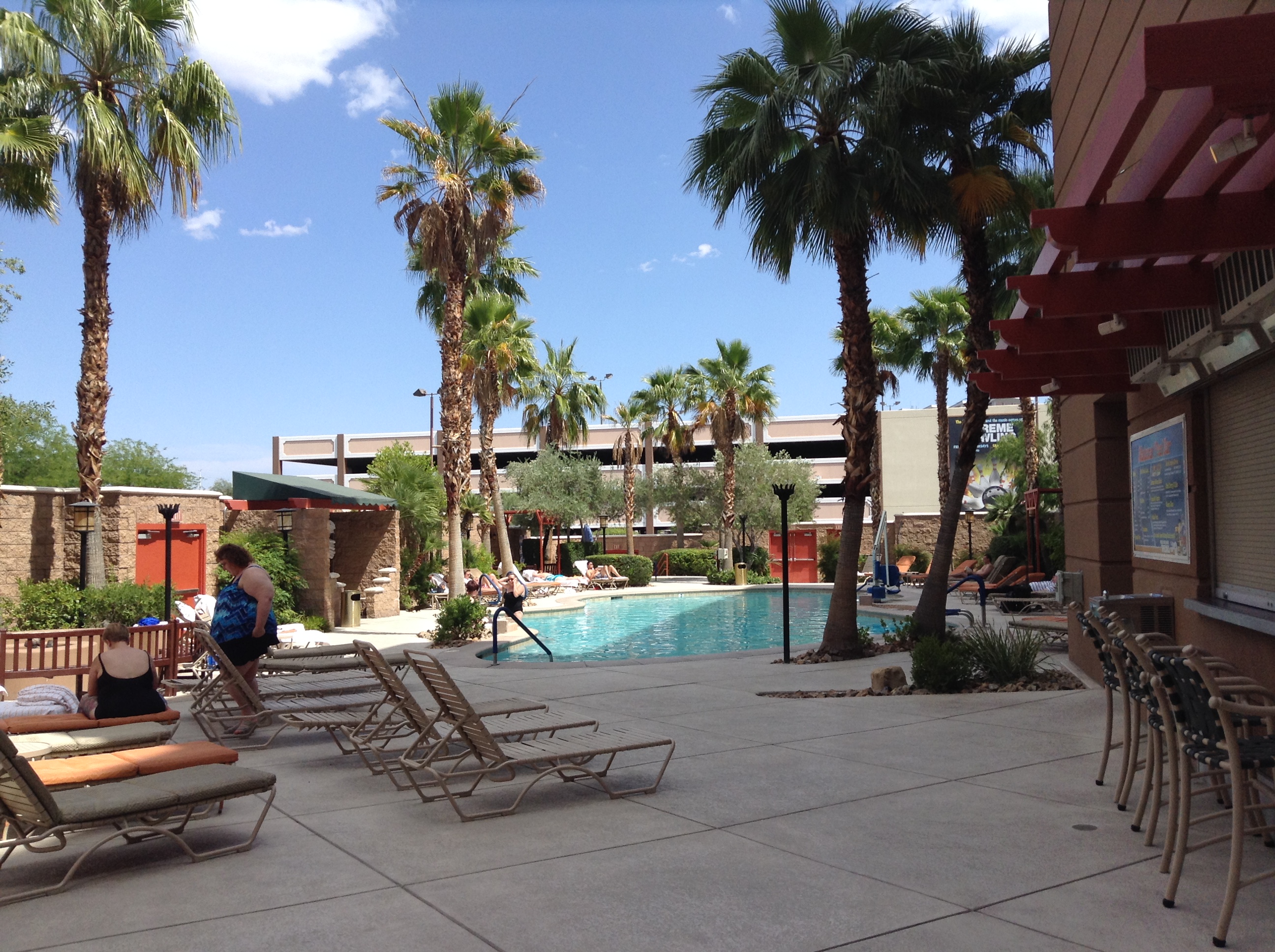 I've found the 99.45% BDW slants. They are near the Atrium and there's a pretty good air flow here. My throat thanks me. I do a walkabout, I've never been to the pool water here, or really ever paid much attention to that end of the casino. I see the drawback to the pool- you have to walk thru the casino to get to or from your room from the pool. And it's pretty small. 2 person Hot Tub too....