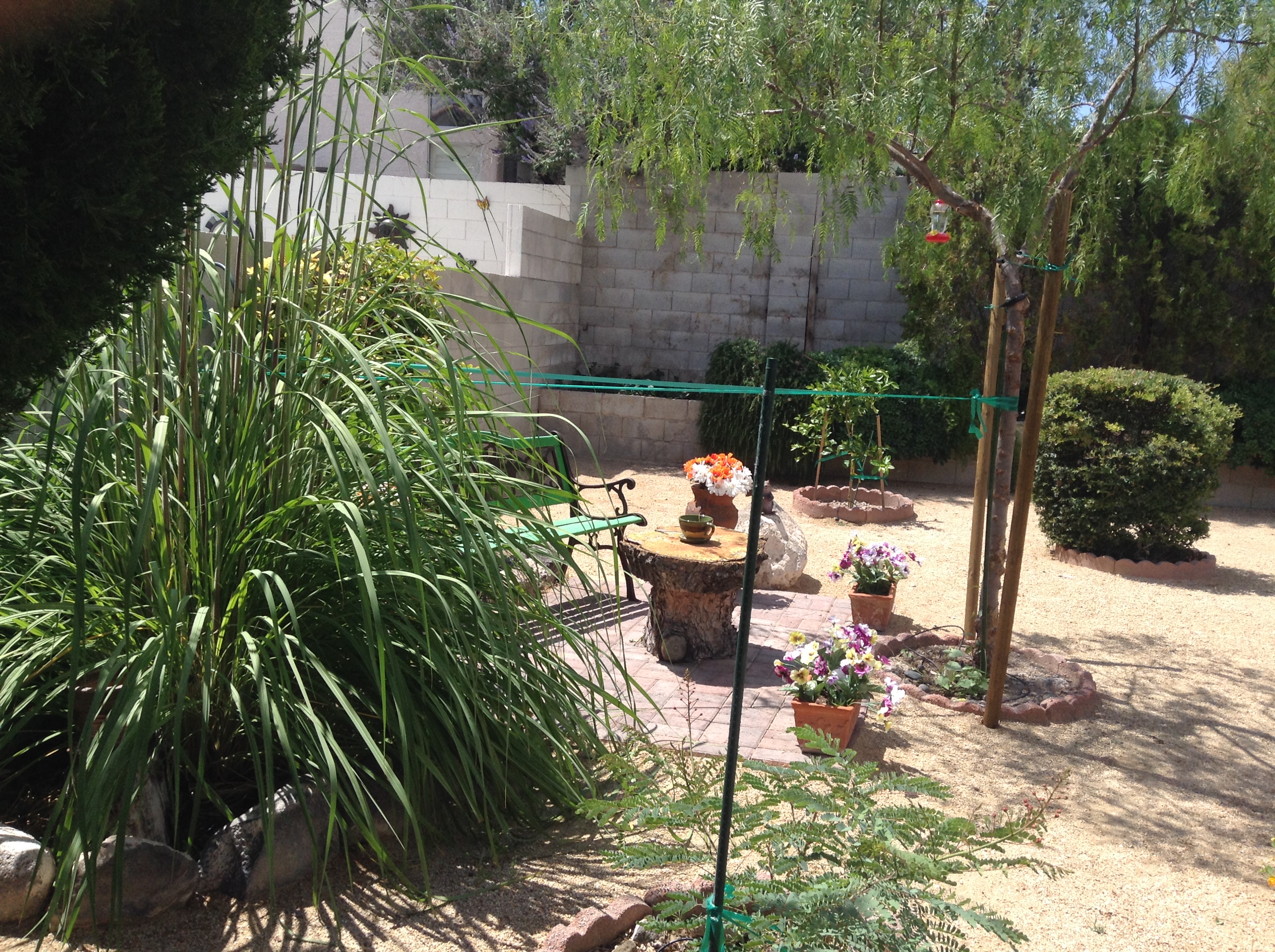 They really have a lovely back yard for living out in the high desert. They put that awning in a few years ago along with taking out a big circle of turf and replacing it with pavers. They even have a nice small vegetable garden. I'll miss this place when they sell it.