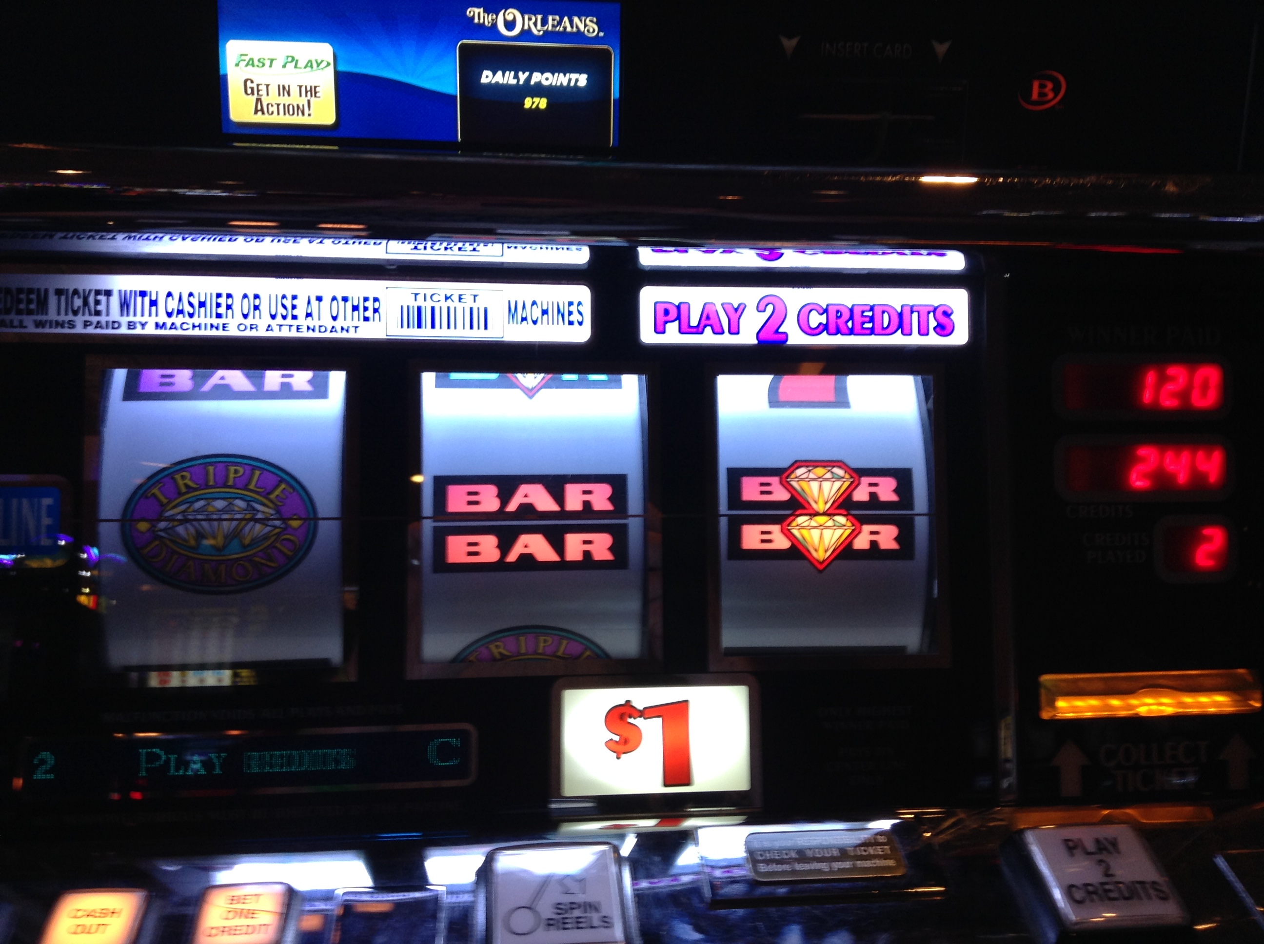 Virgin River Casino and Casa Blanca are owned by the same outfit. It looks as if they run the same promotions too. We found a couple of Top Dollar machines and each inserted coinage for a spin off.