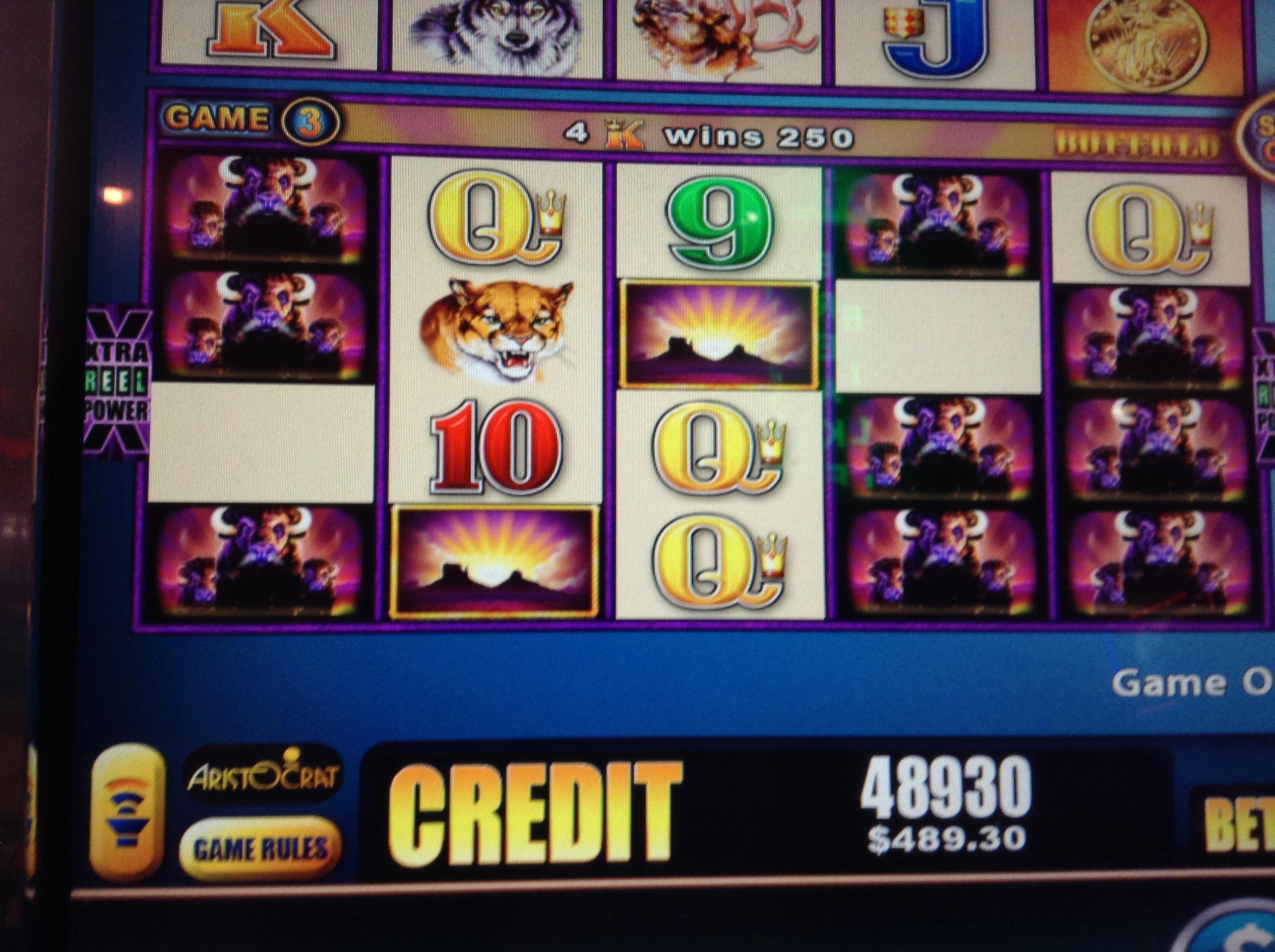 I once again run into our dear friend Rennneeee. She is busy at home entertaining her Mom how is visiting. We make plans to get together somewhere other than here on our next visit. Oh- by the way I have booked us back here for the week of Labor Day and Sweet Ti is coming with!!!!!! The time has come for a bit o' bison. W4 old school. I load up 4 Buffalo games, insert coin, and hit Maxi Bet. Jimmy????