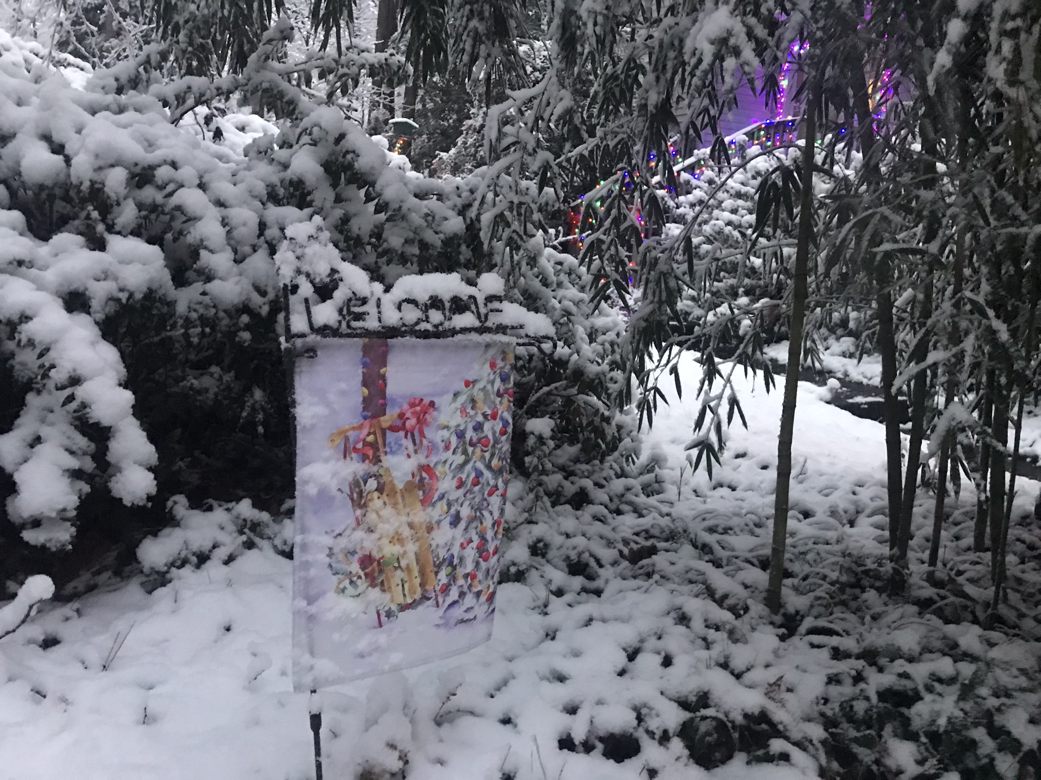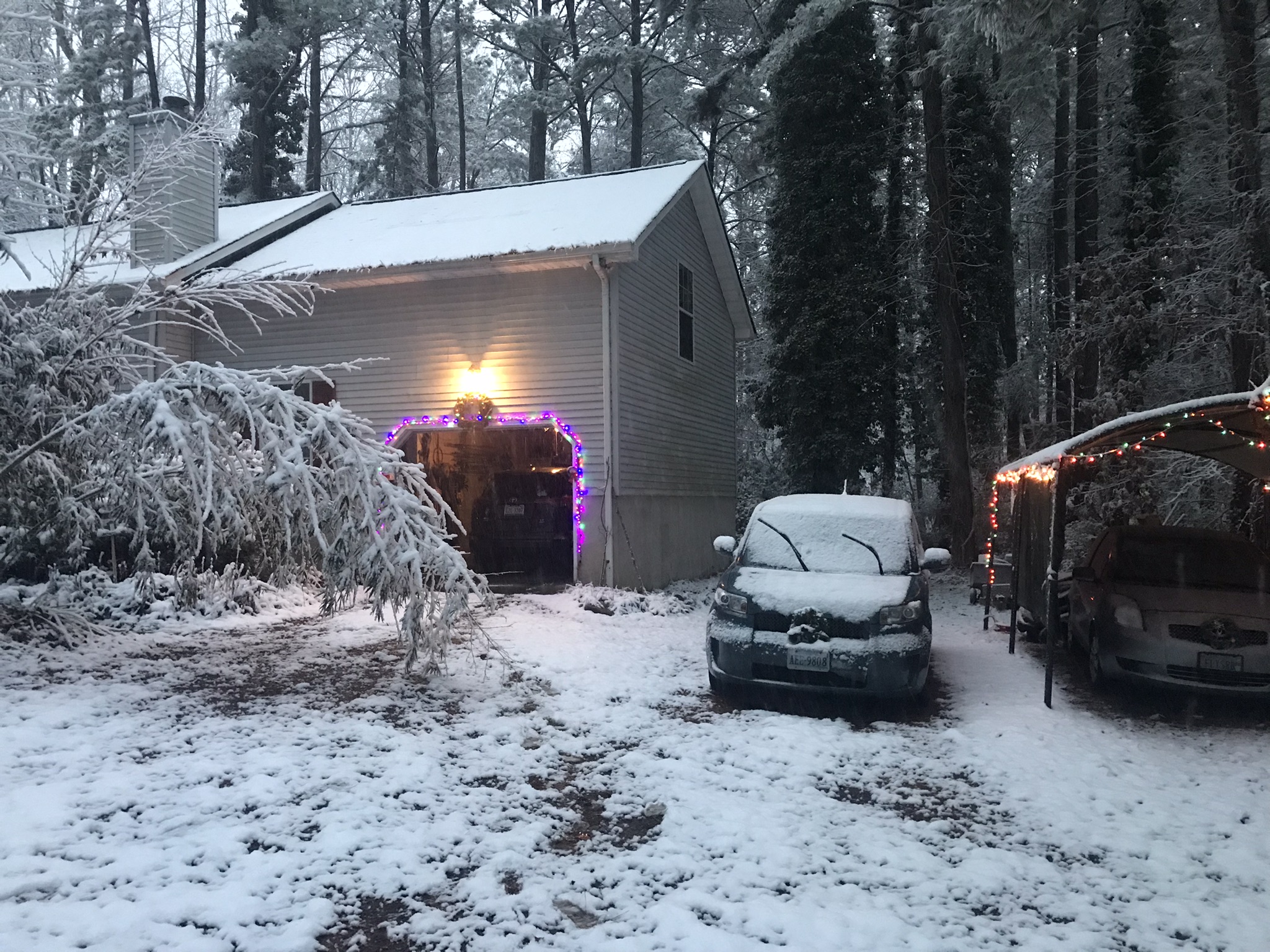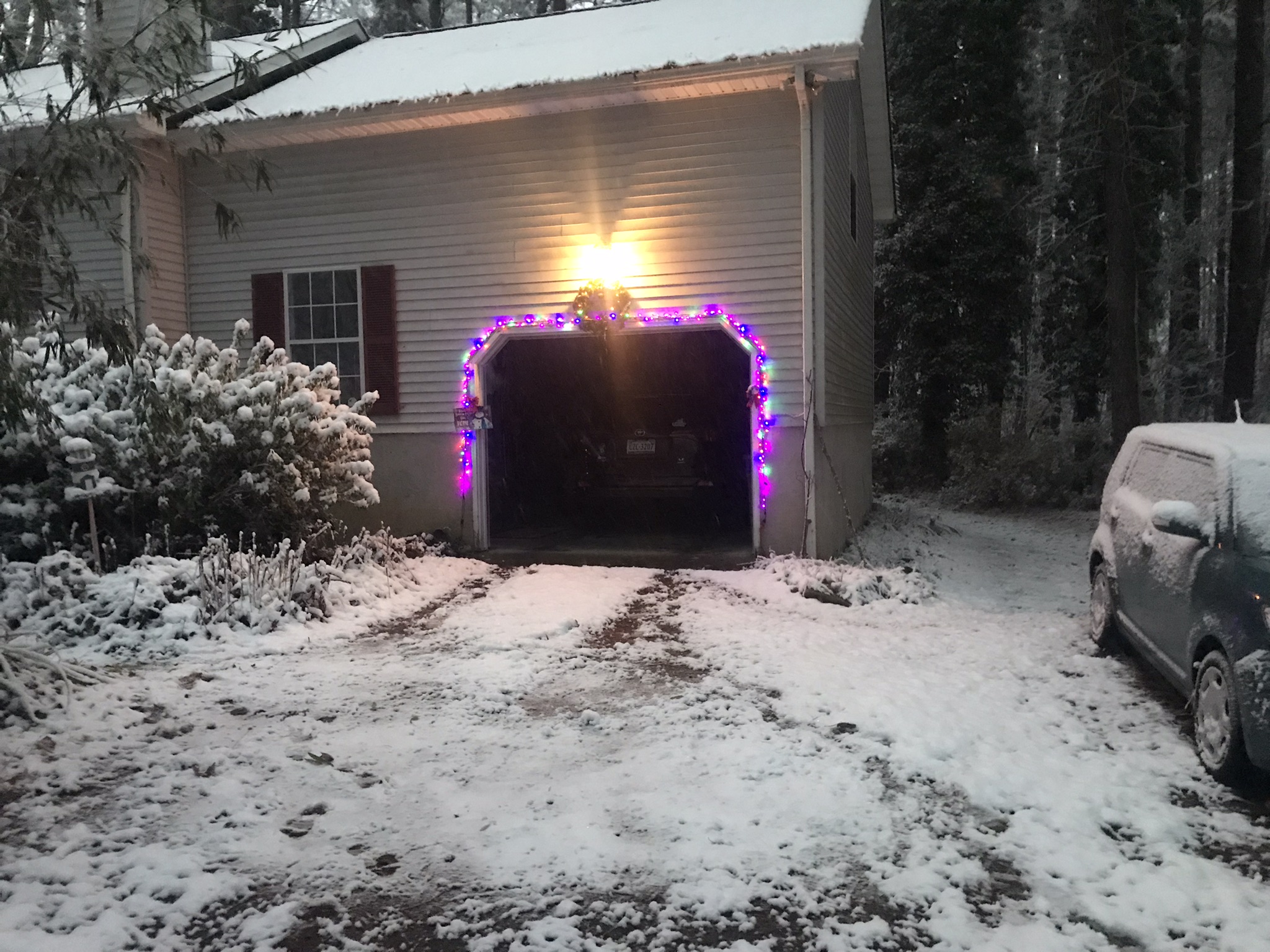The snow turned to rain while I slept. The christmas lights a twinkling as I drive past, I head down the Eastern Shore and back home to my awaiting Sweet Ti. Well, once again thanks for playing along. See y'all around the neighborhood!