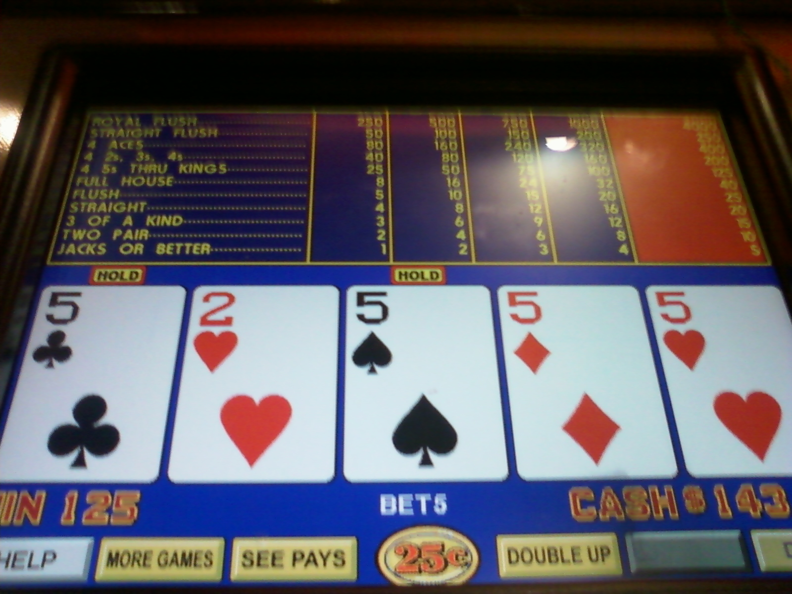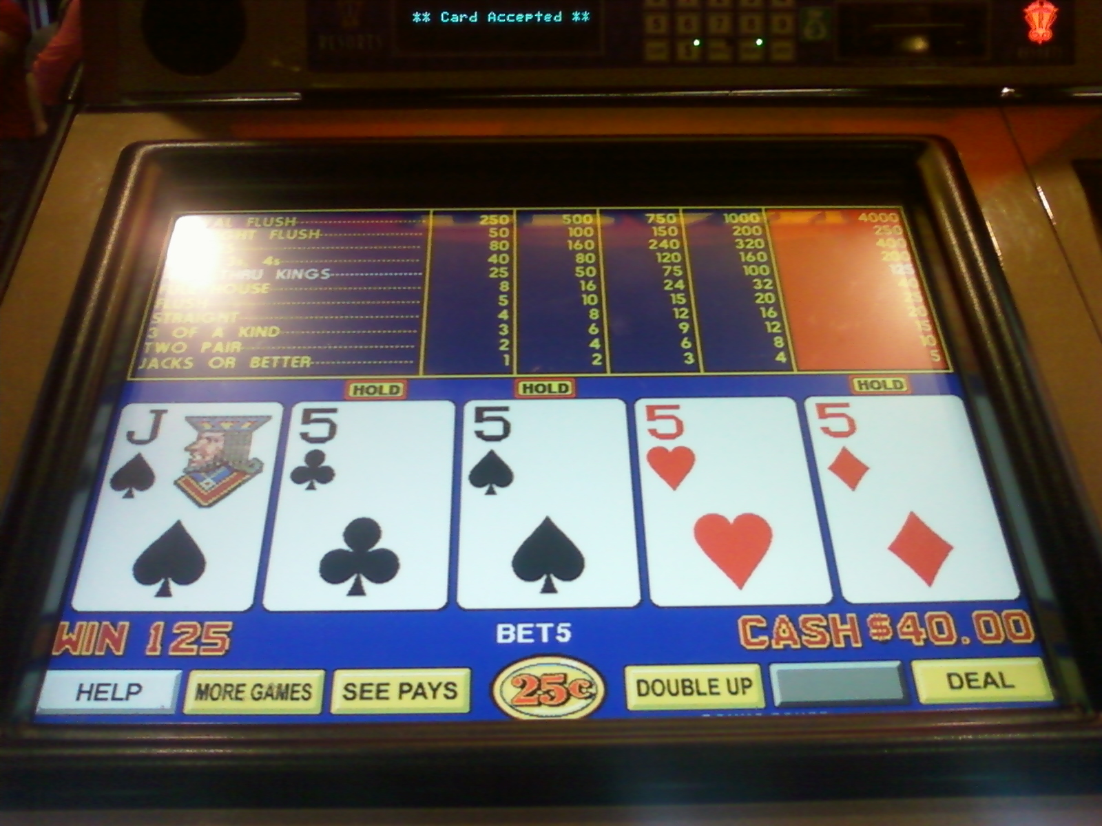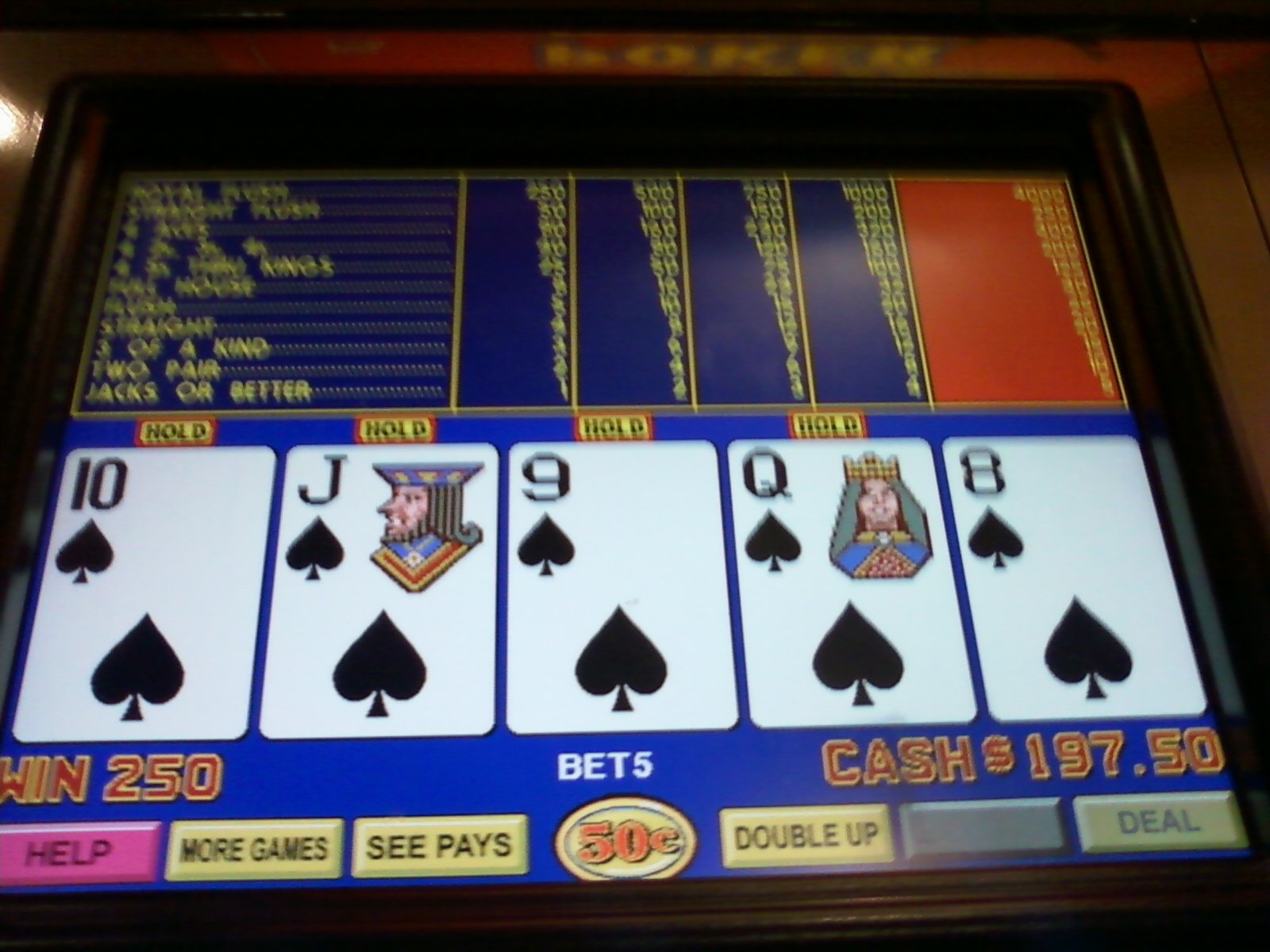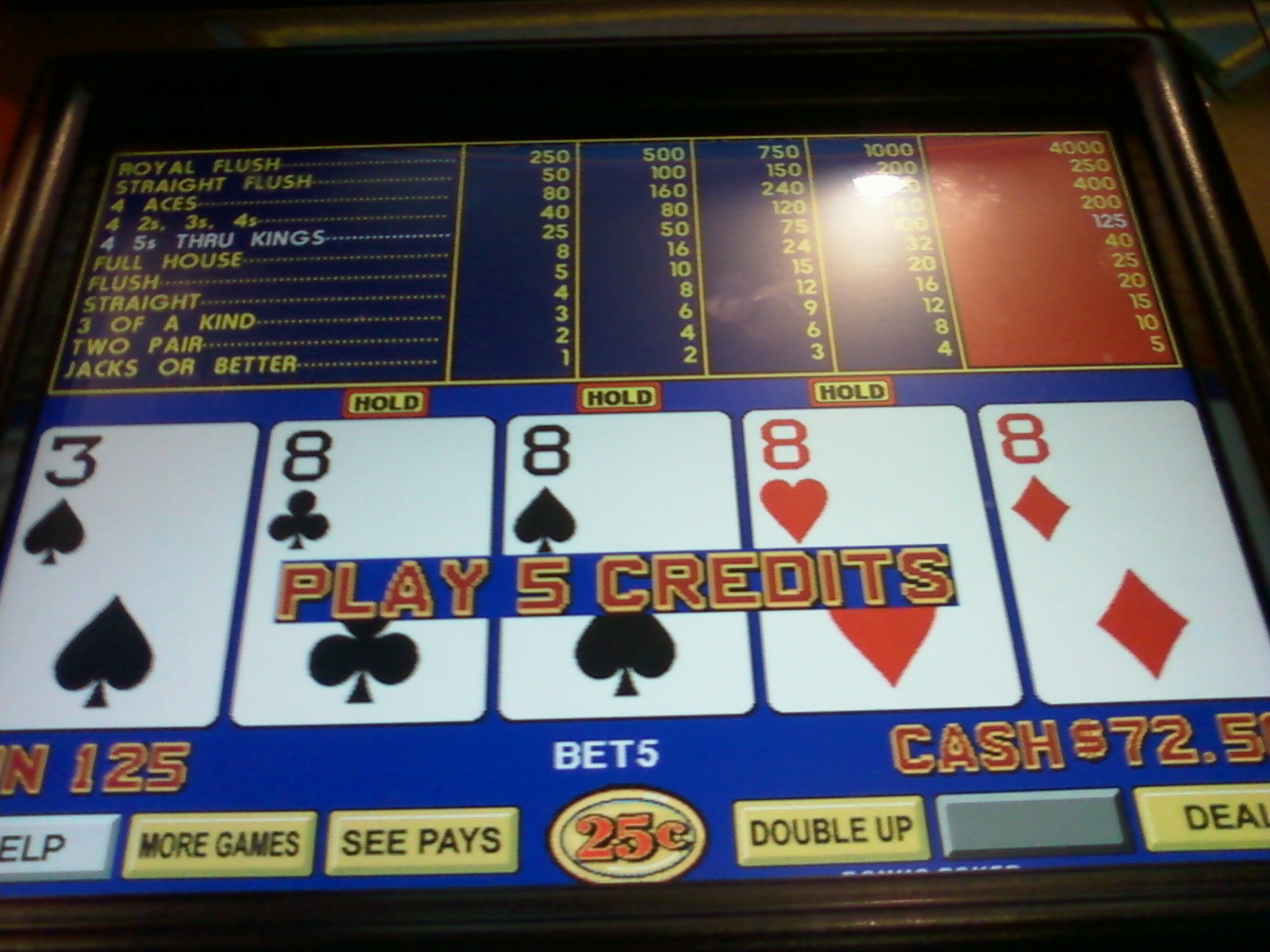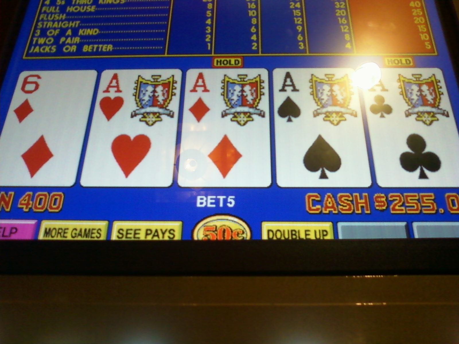 At this point I either had a epiphany or gas...not sure which, but I got up and walked over to Hollyrock Hills to the $1 VP machine back in the corner, and proceeded to insert coin. Things were going pretty well and then I drew this.