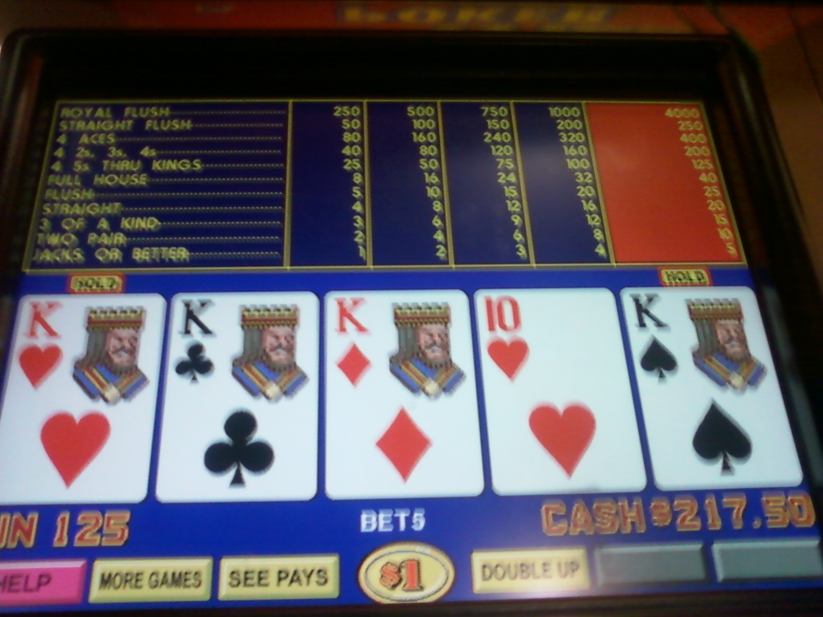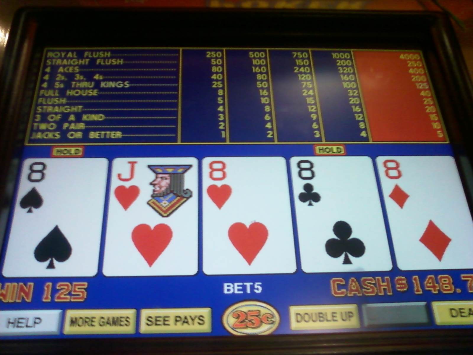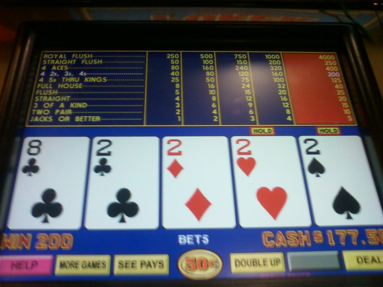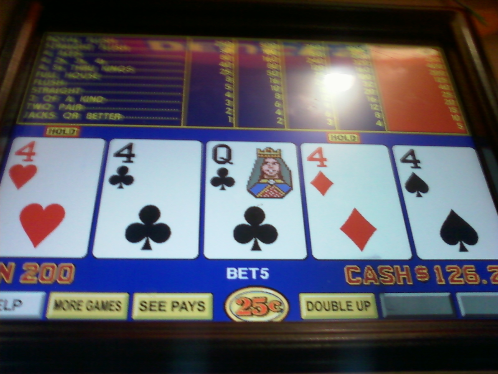 At this point I either had a epiphany or gas...not sure which, but I got up and walked over to Hollyrock Hills to the $1 VP machine back in the corner, and proceeded to insert coin. Things were going pretty well and then I drew this.
