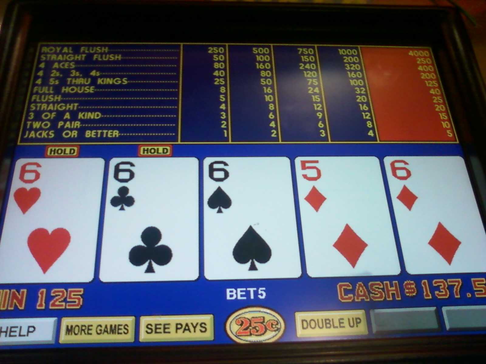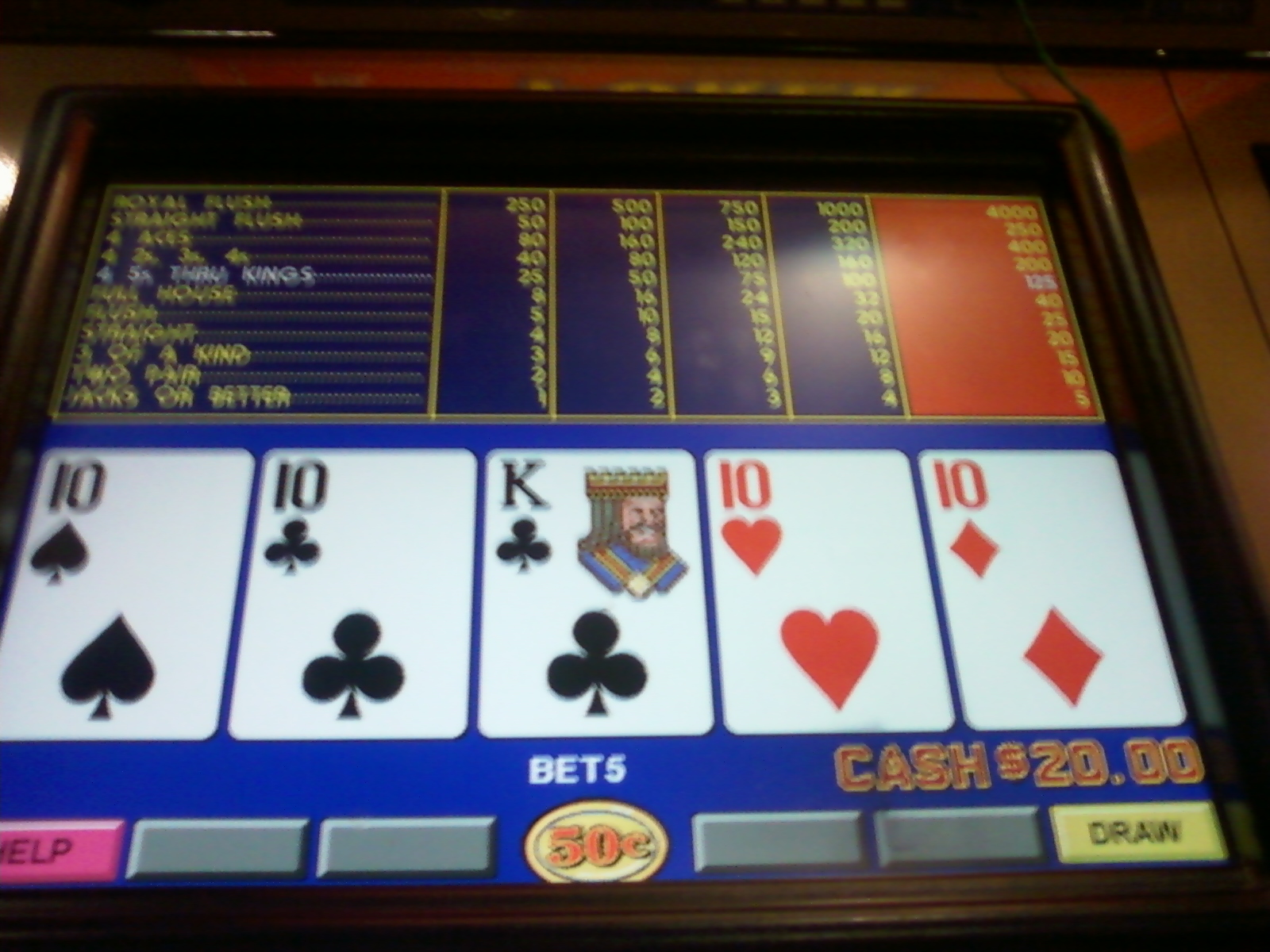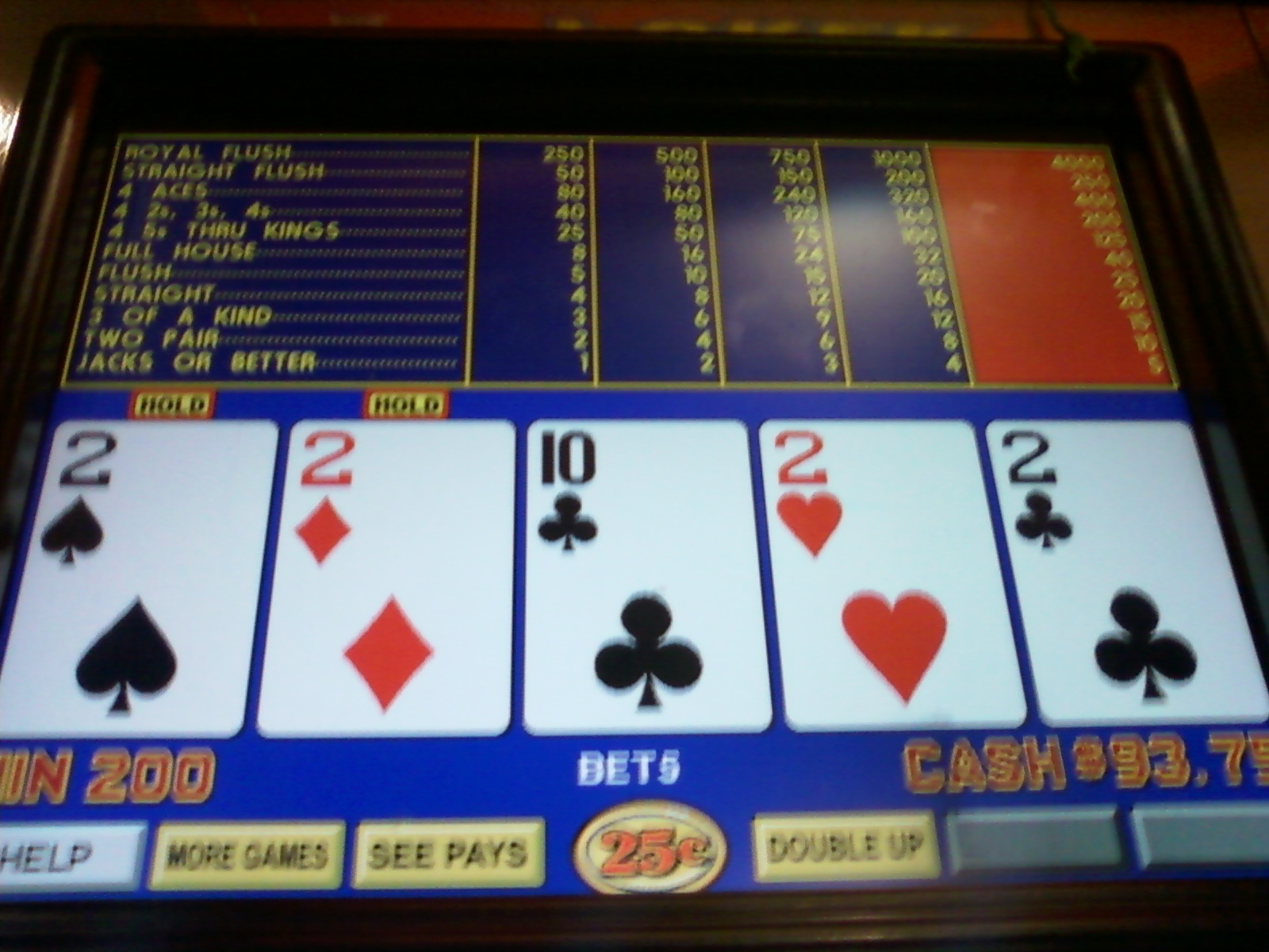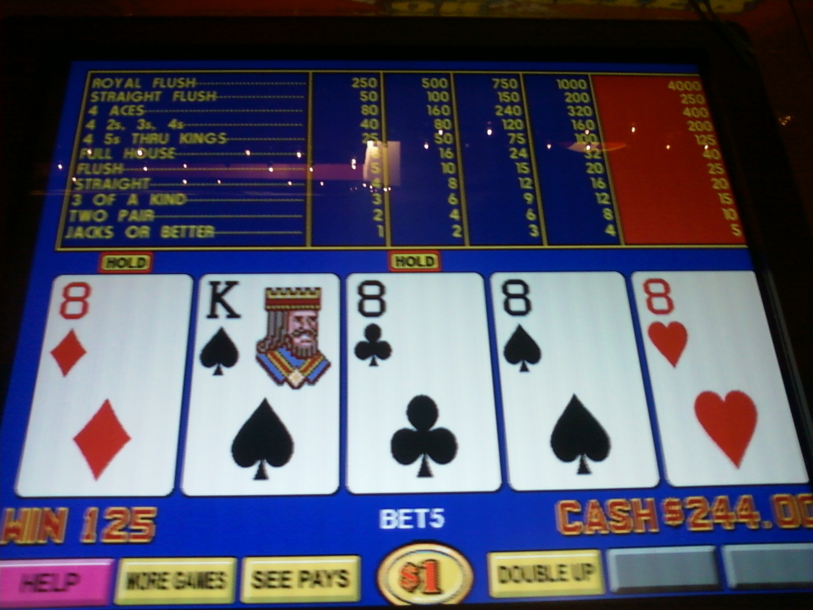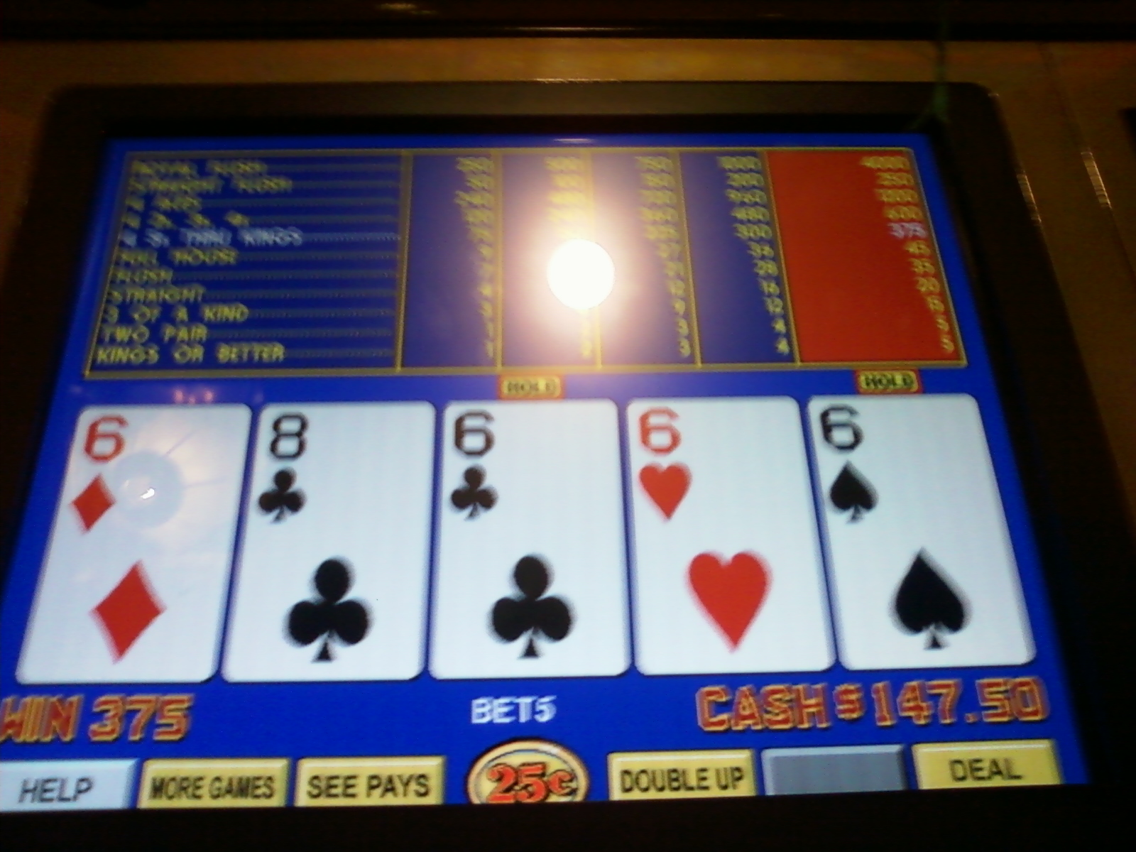 At this point I either had a epiphany or gas...not sure which, but I got up and walked over to Hollyrock Hills to the $1 VP machine back in the corner, and proceeded to insert coin. Things were going pretty well and then I drew this.