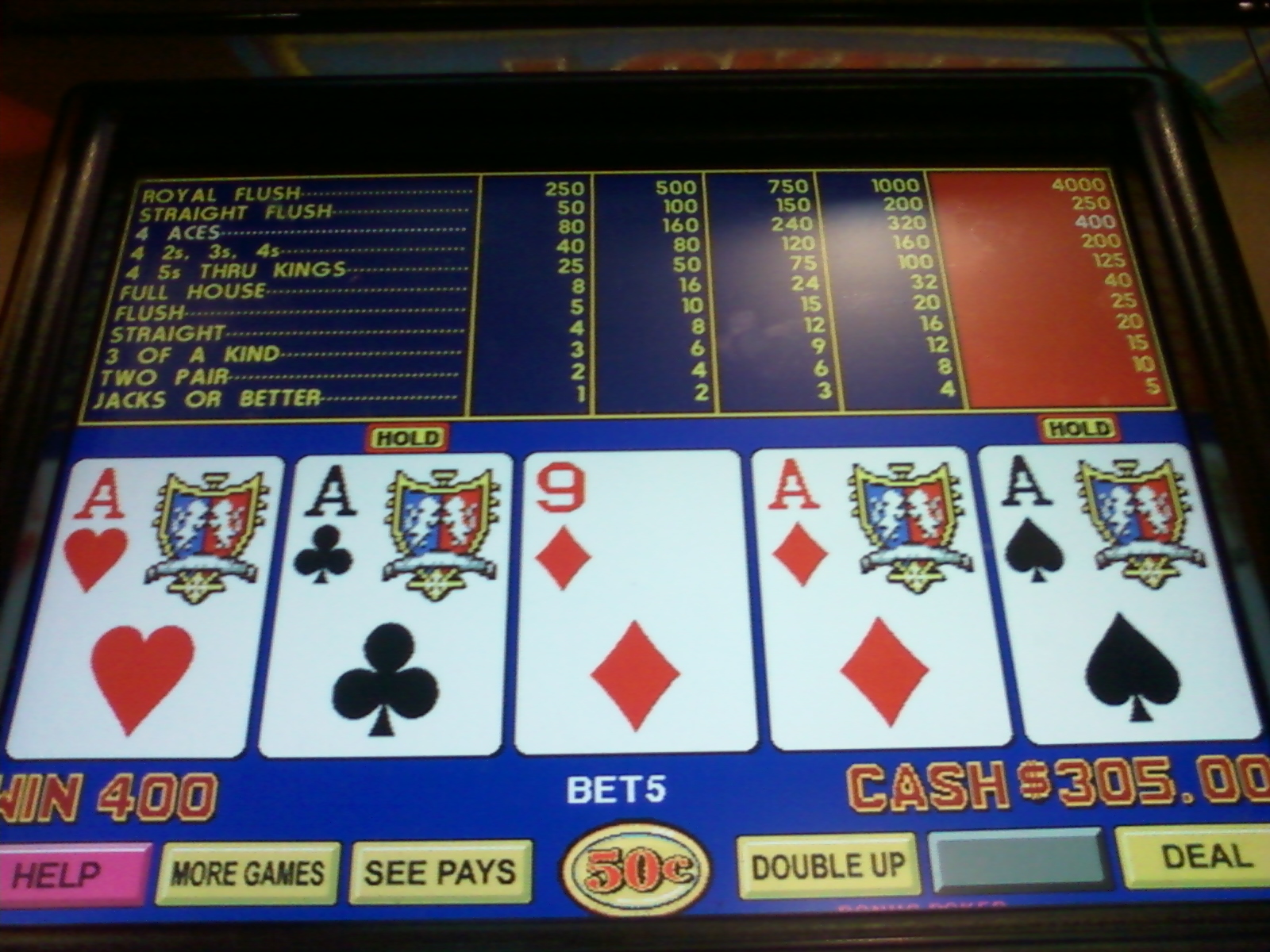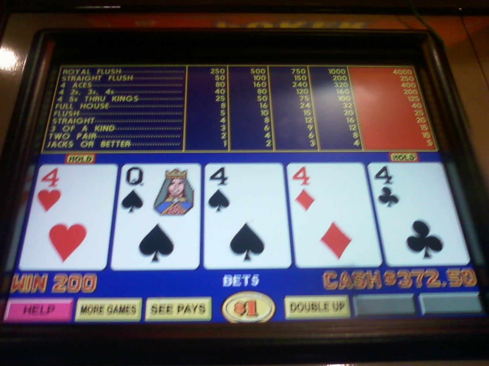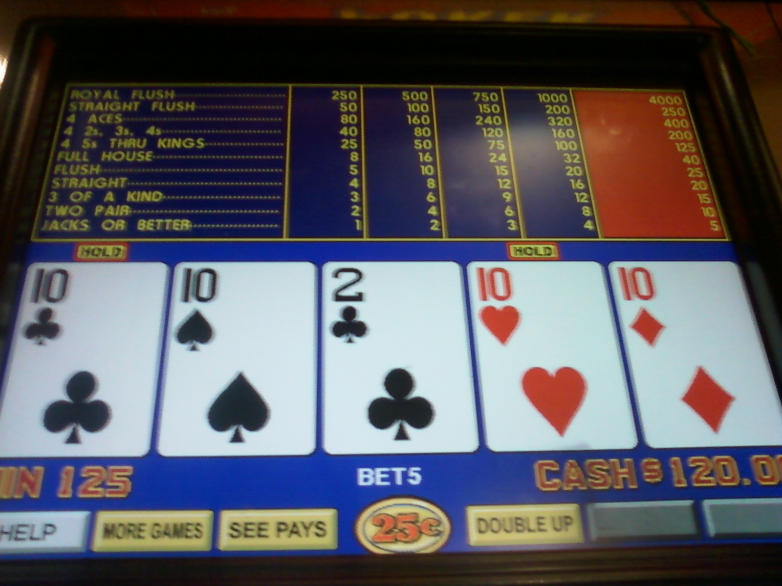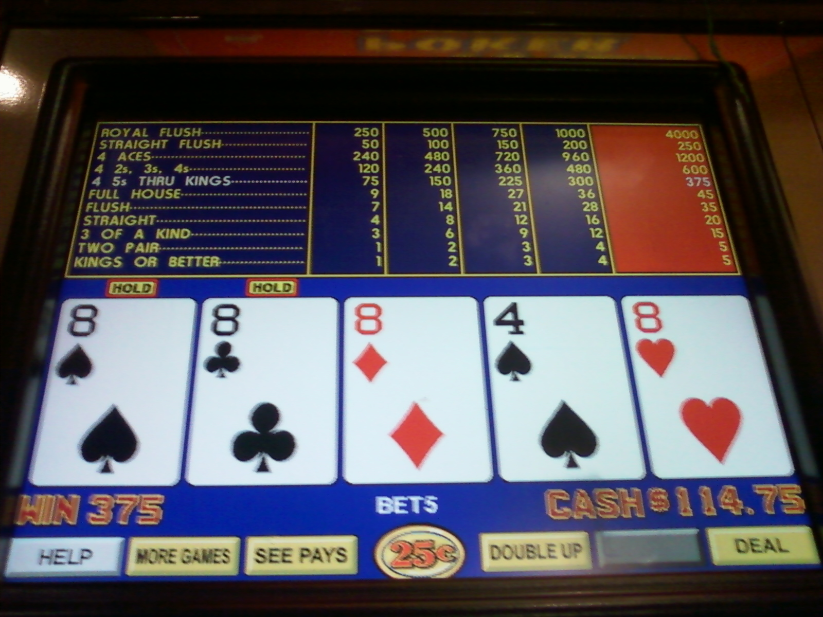 At this point I either had a epiphany or gas...not sure which, but I got up and walked over to Hollyrock Hills to the $1 VP machine back in the corner, and proceeded to insert coin. Things were going pretty well and then I drew this.