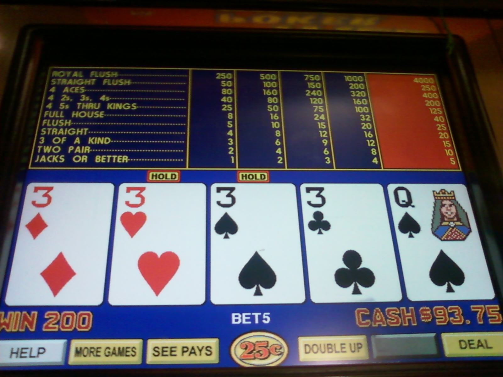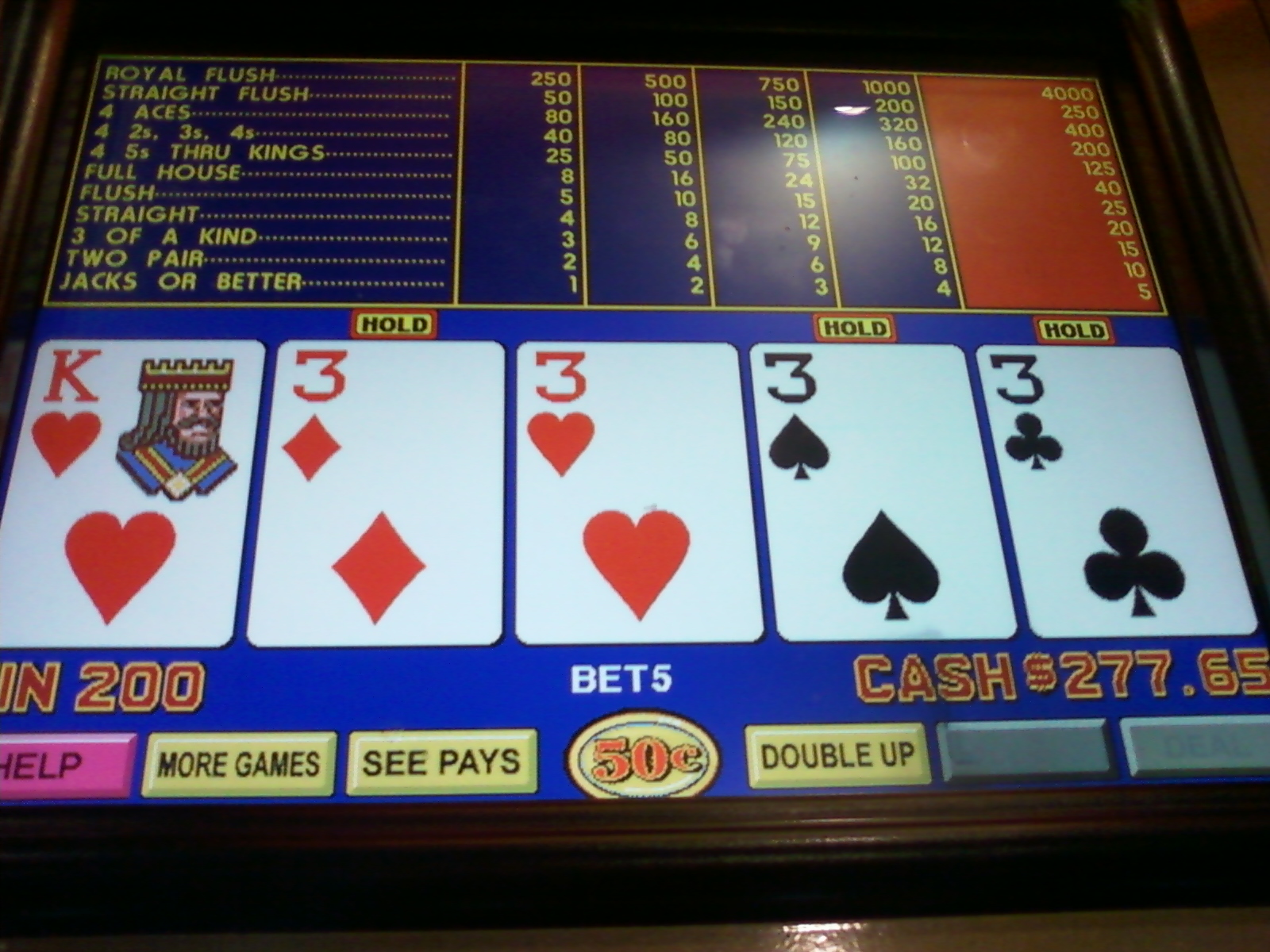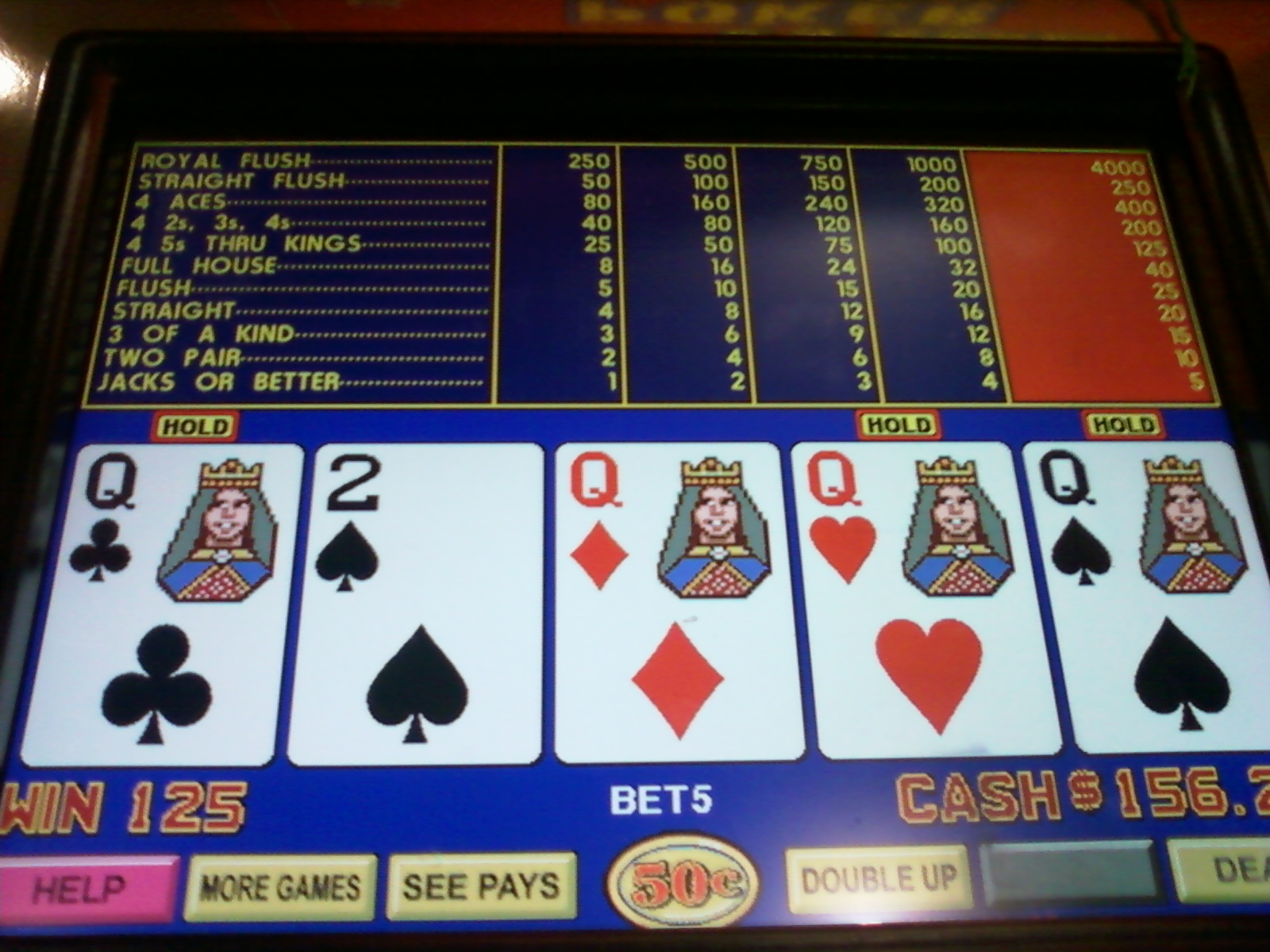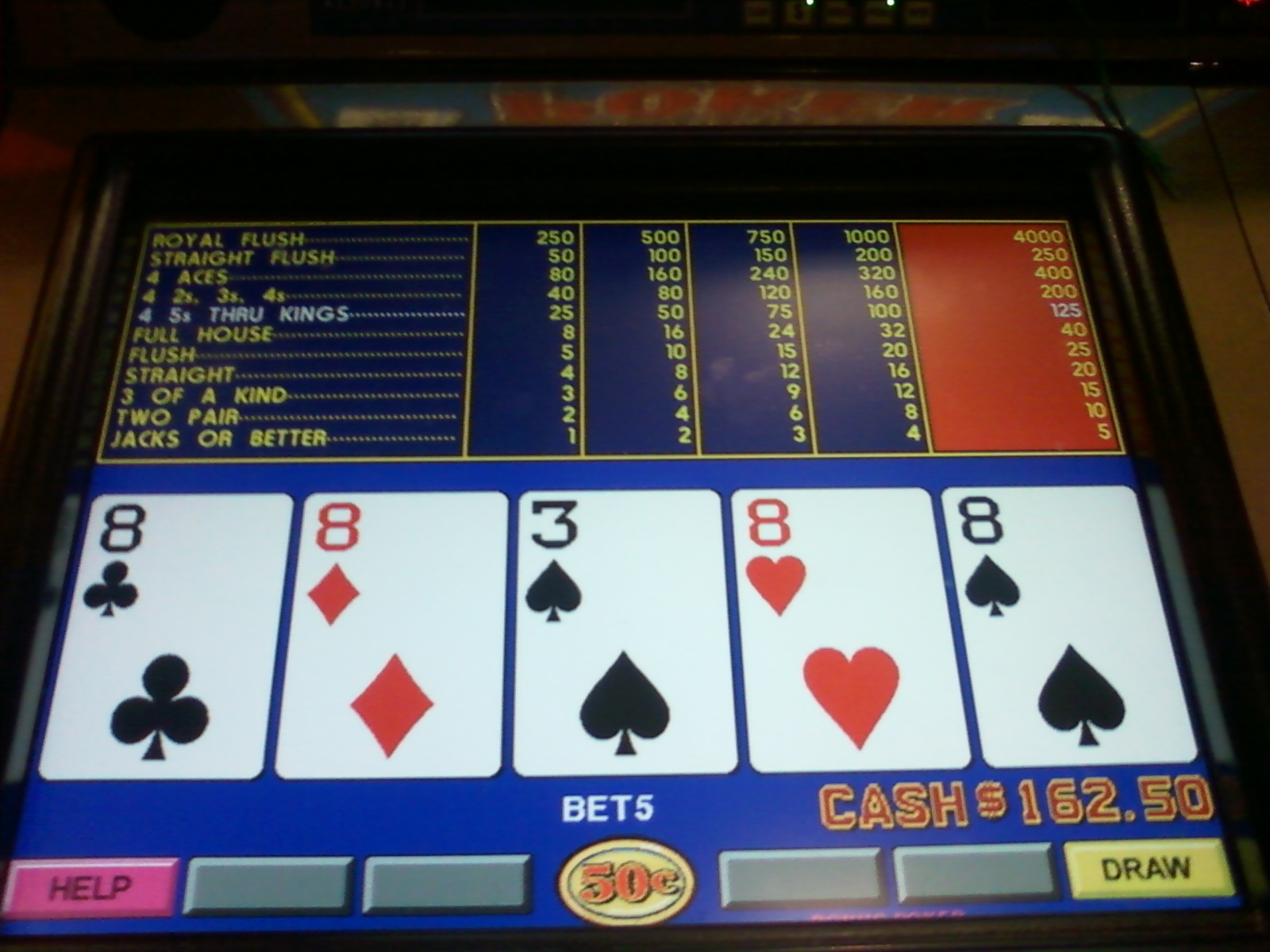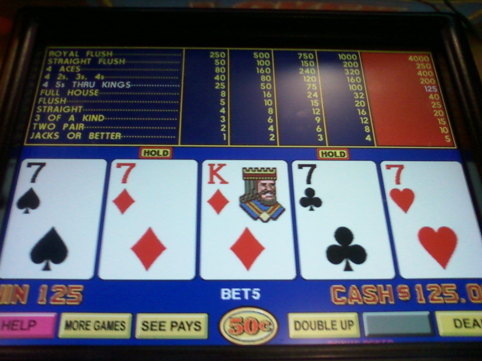 At this point I either had a epiphany or gas...not sure which, but I got up and walked over to Hollyrock Hills to the $1 VP machine back in the corner, and proceeded to insert coin. Things were going pretty well and then I drew this.