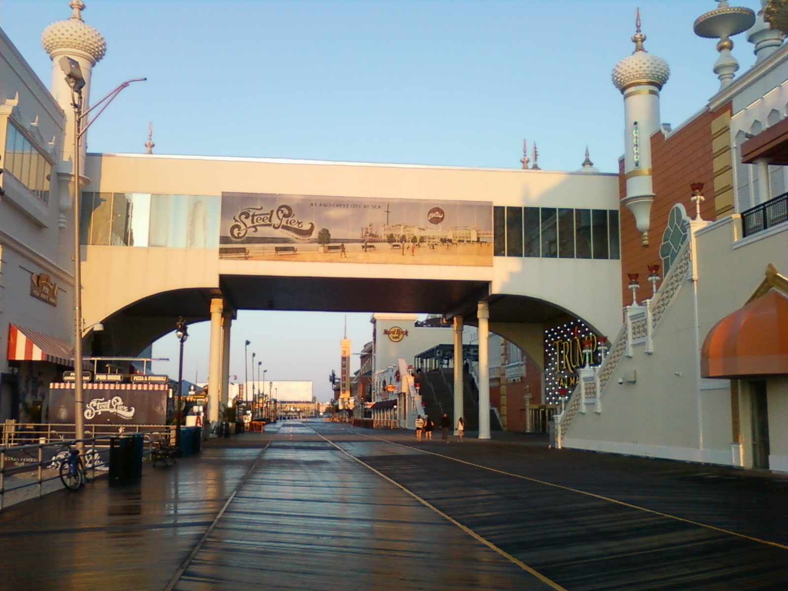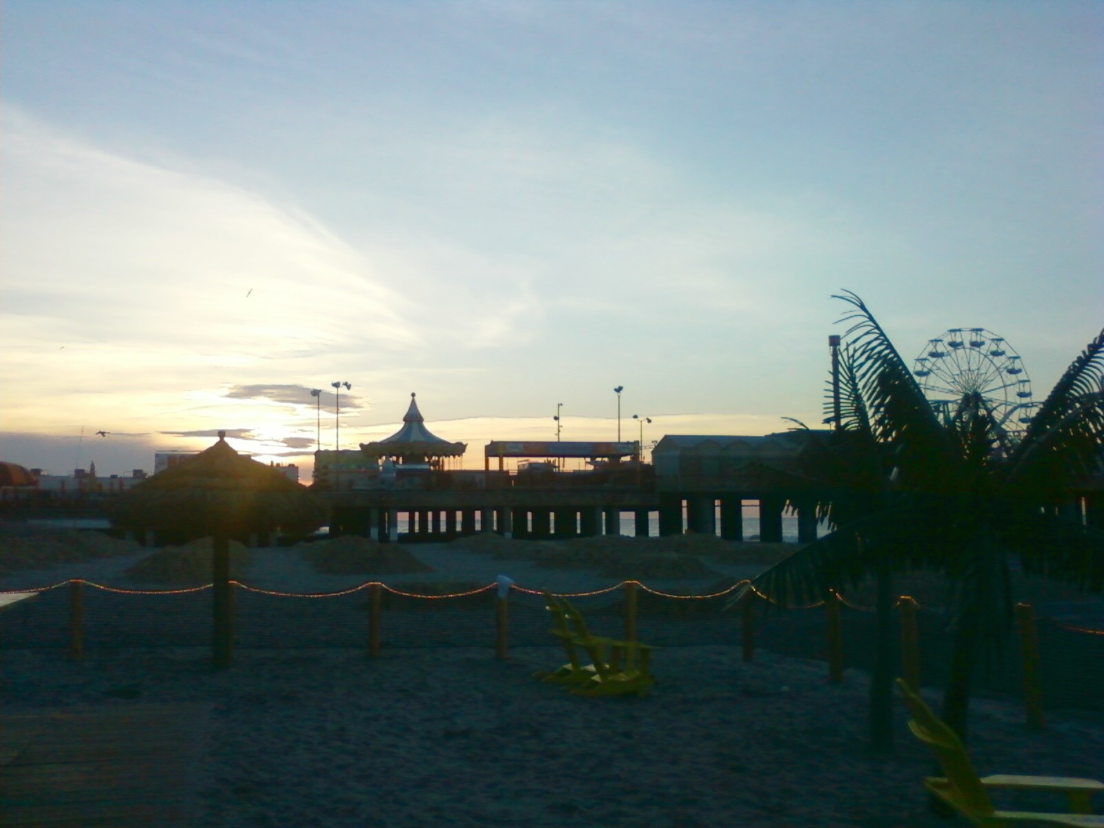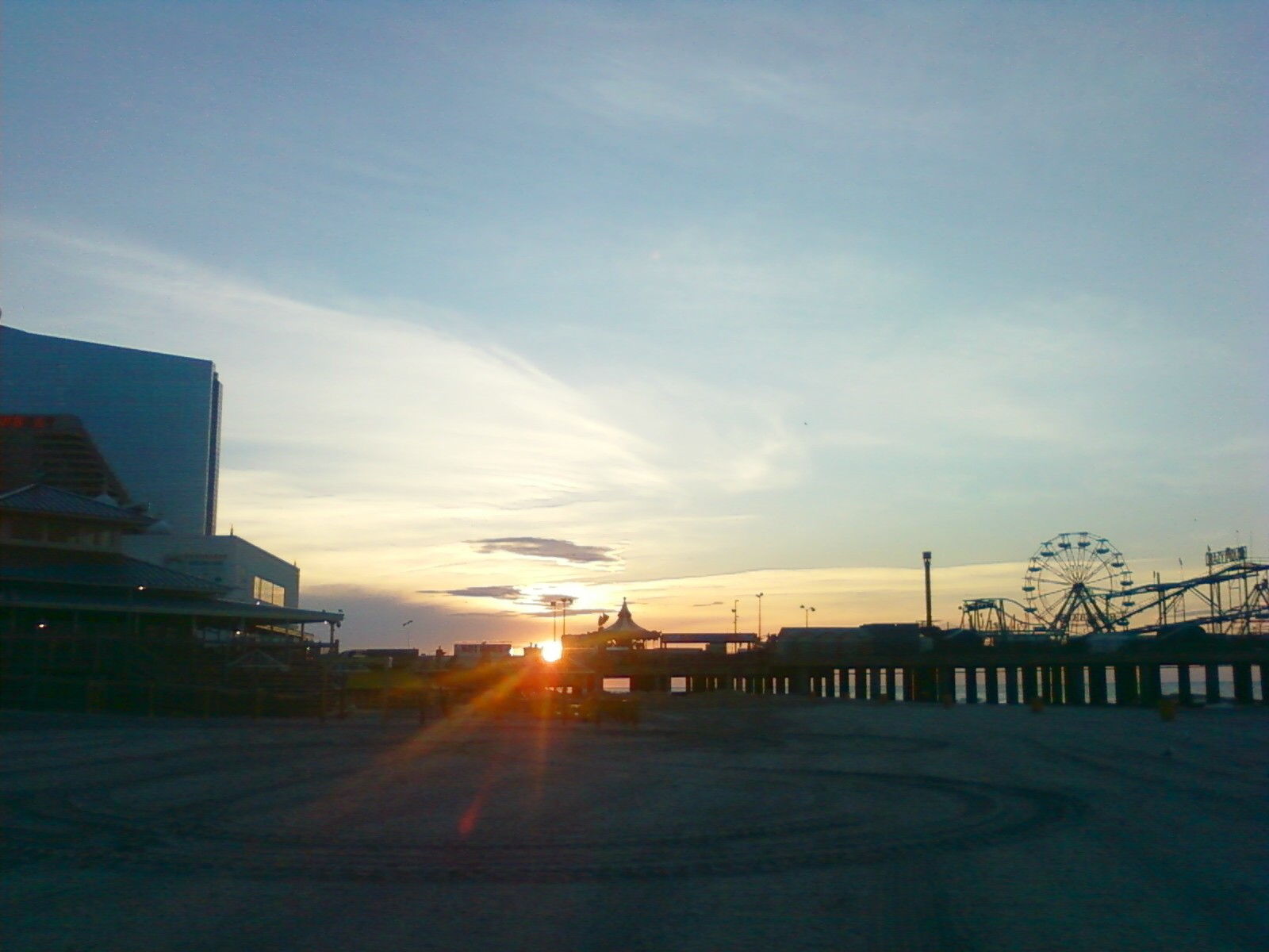 I got up and cashed out, and as I was getting my cash from the change machine a Boardling walks up and asks me for money. Time to leave! I walked out to the boardwalk and enjoy the sunrise.