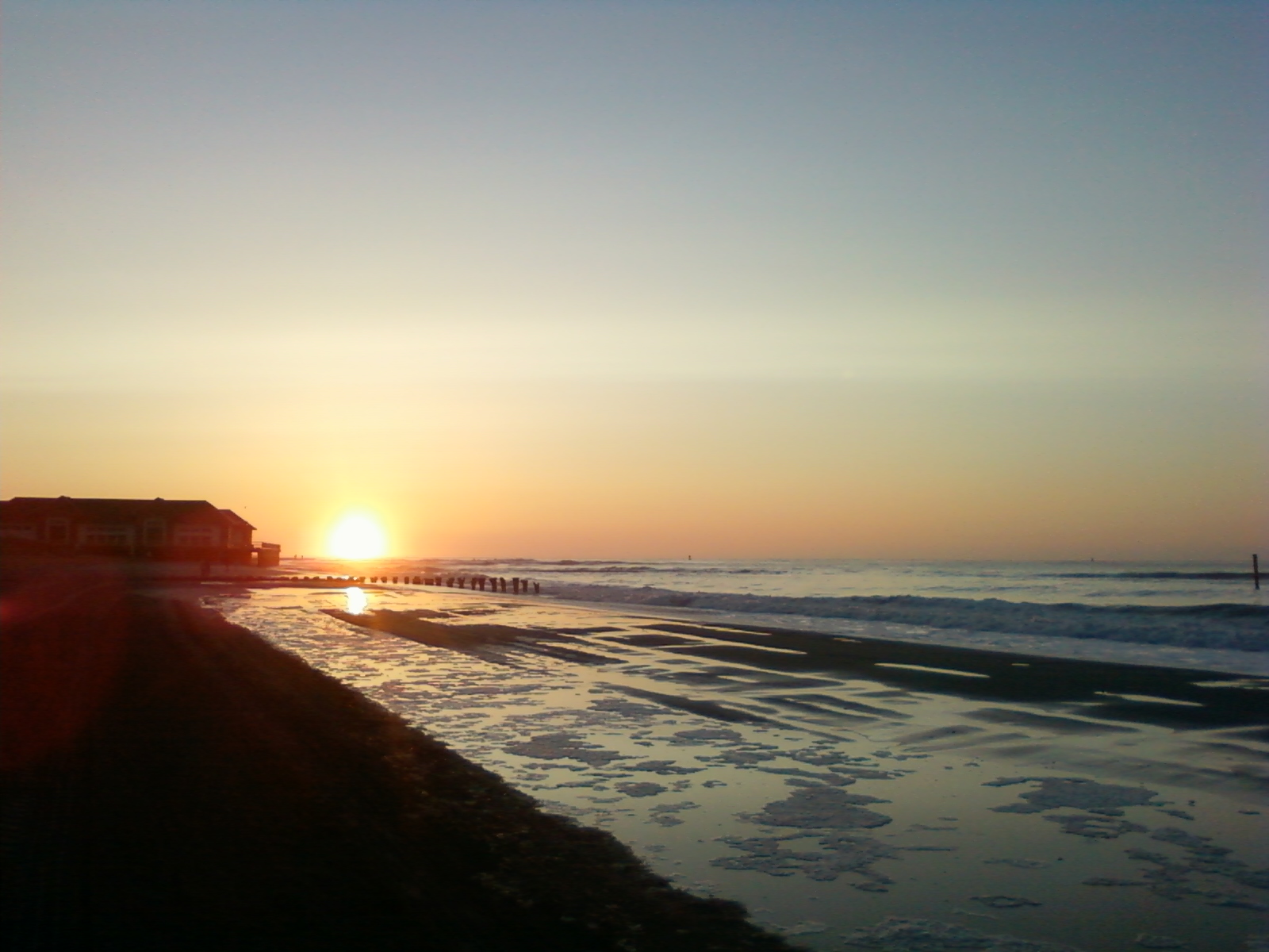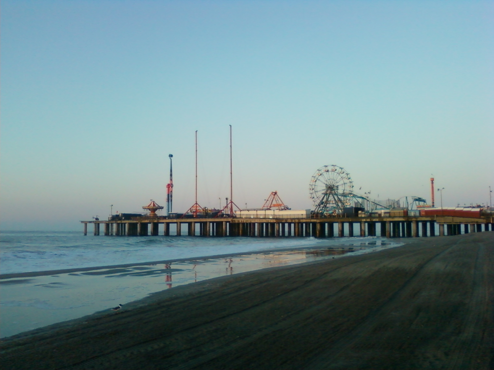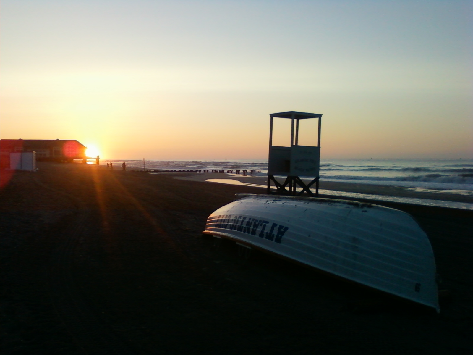 I got up and cashed out, and as I was getting my cash from the change machine a Boardling walks up and asks me for money. Time to leave! I walked out to the boardwalk and enjoy the sunrise.