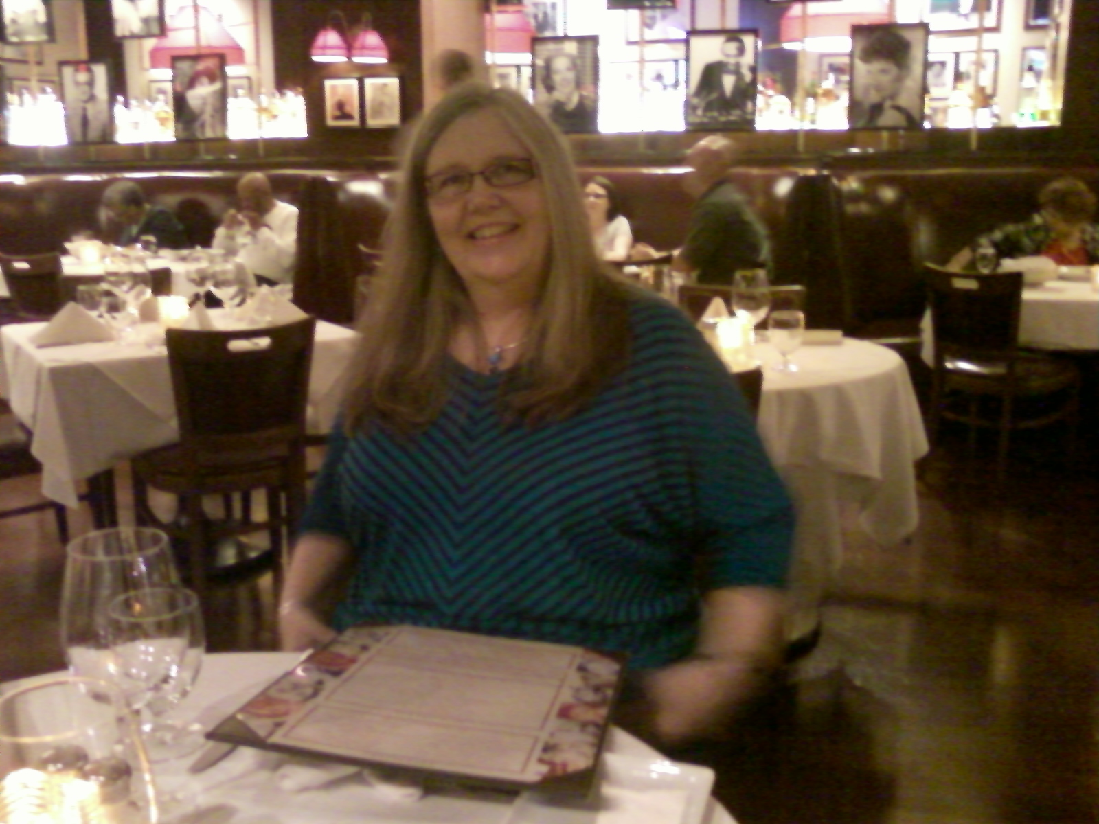 Sweet Ti walks up- wonder how she found me??? We made Resorts some money, and I decide to call our host, Martha. We haven't met her yet, she took over for our old host a few months ago. She's been really good to us. 3 nights pretty much whenever we want. Always in the Rondy Tower. I call her and she sez she will be right down. What a sweetie! We have a blast chatting- actually the 2 girls do most of the talking. Martha asks where we were planning on having dinner. Gallagher's. What time? 6 p.m. She'll take care of it. A birthday gift. Sweet! Well that was really nice of her. She gives us her card, and tells us to have fun. Sounds like a plan. Right now- I really want S.T. to see that Top Dollar bonus.
