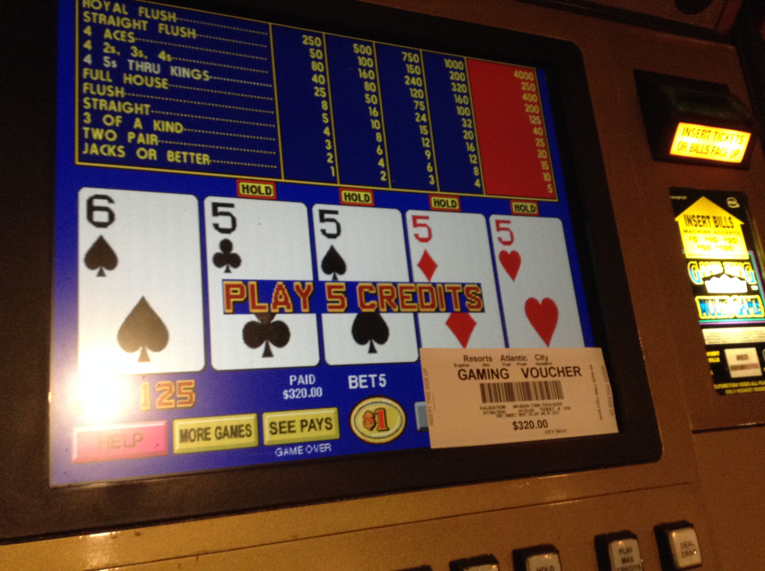 I have comped tickets to see the Nik Wallenda Show at the Taj tonight but that's not gonna happen. Back at Resorts, I find that the 4 full pay BP uprights are still at the MVille Casino. They were taken off the vpfree2 list awhile ago. And I'm not about to update it. Nor Da Slants either. Not gonna bite the hand that feeds me. Meanwhile I FINALLY break the 4OAK drought.