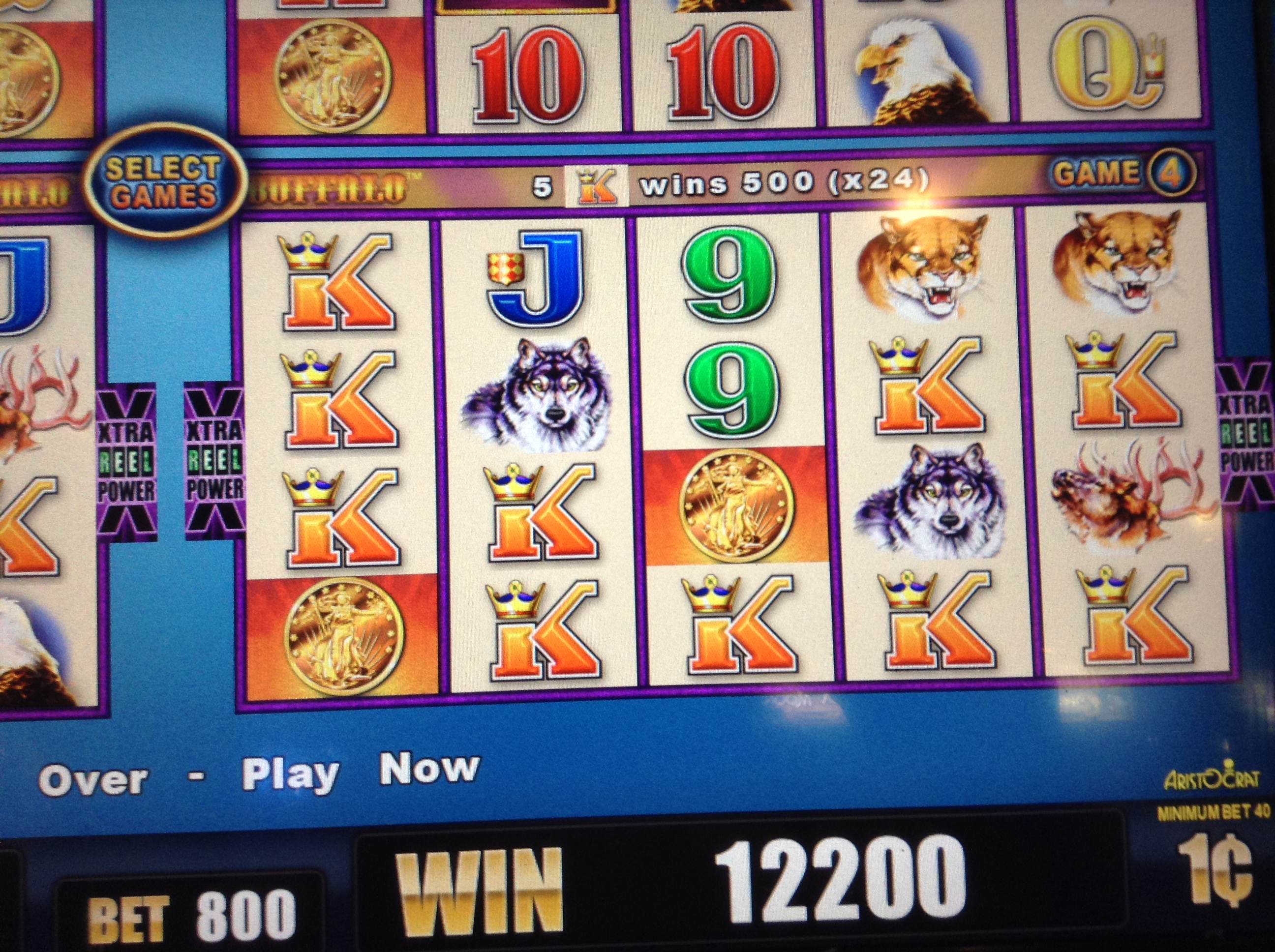 We cash out and wander around a bit. I park Sweet Ti at a Wonder 4 machine that I load up with 4 Buffalo games at max bet while I go take a leak. I return and Sweet Ti has to do the same. She returns as I hit the Super Free Games but only net $35. Next I hit a regular free game. I thought it might turn out the same, but boy was I wrong. Let's pick up the action midstream. Hit it James.....