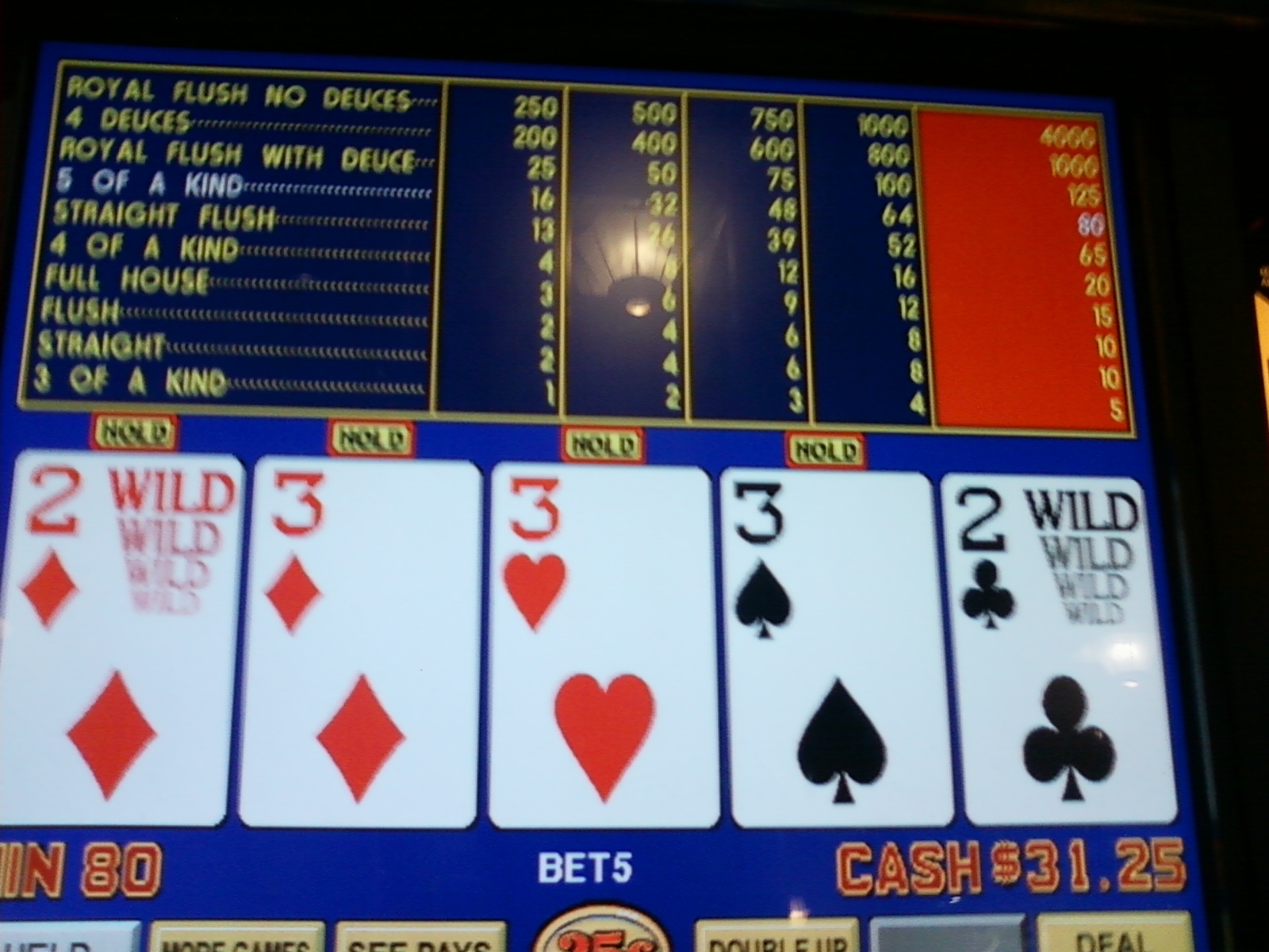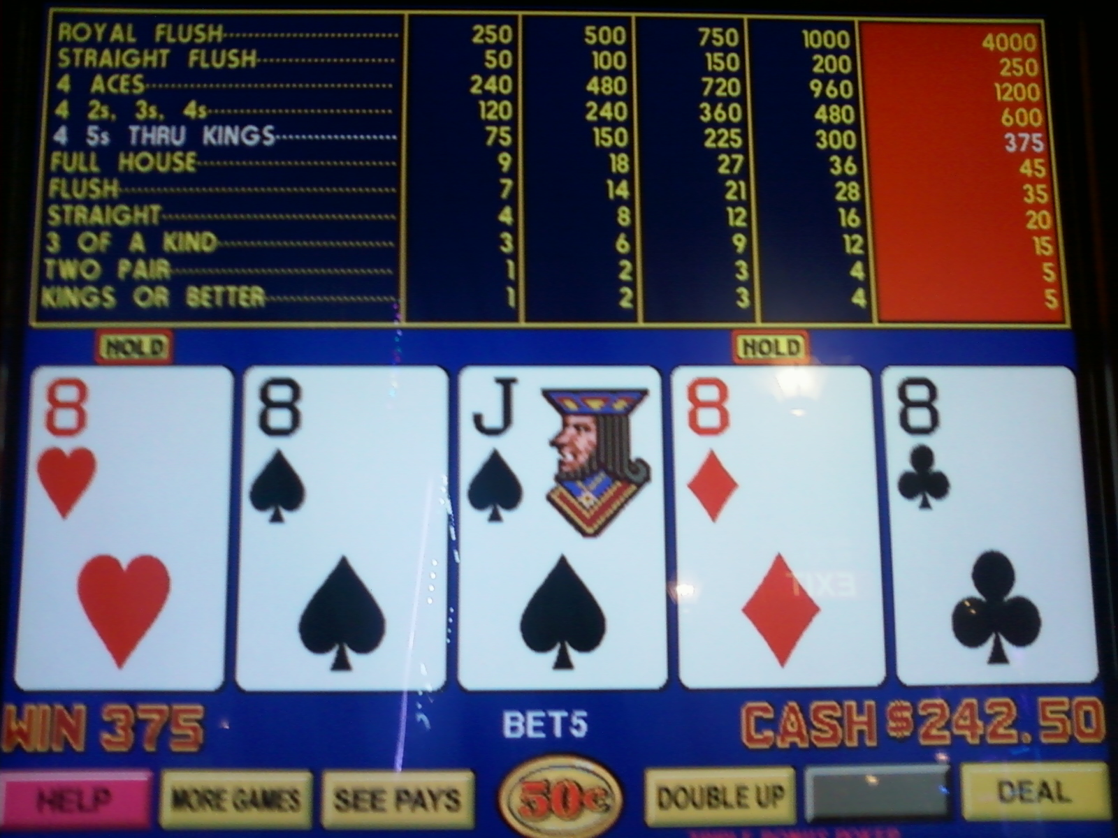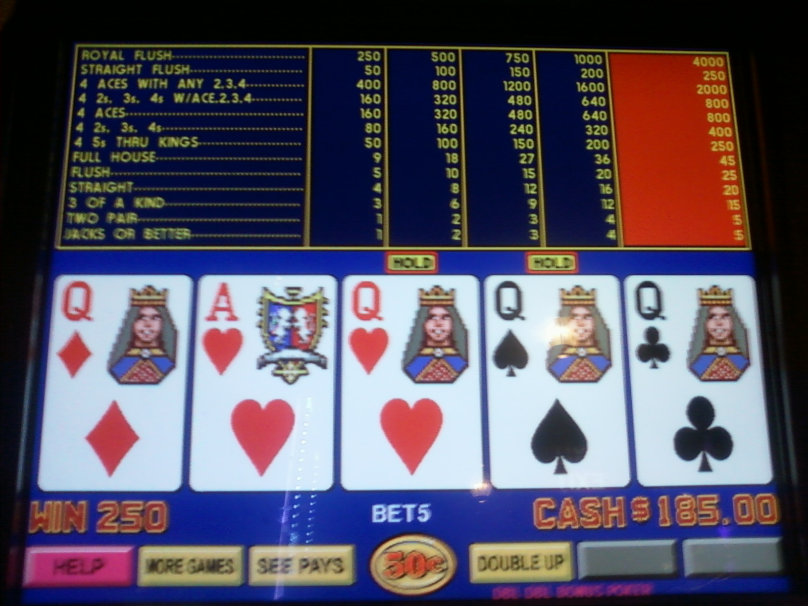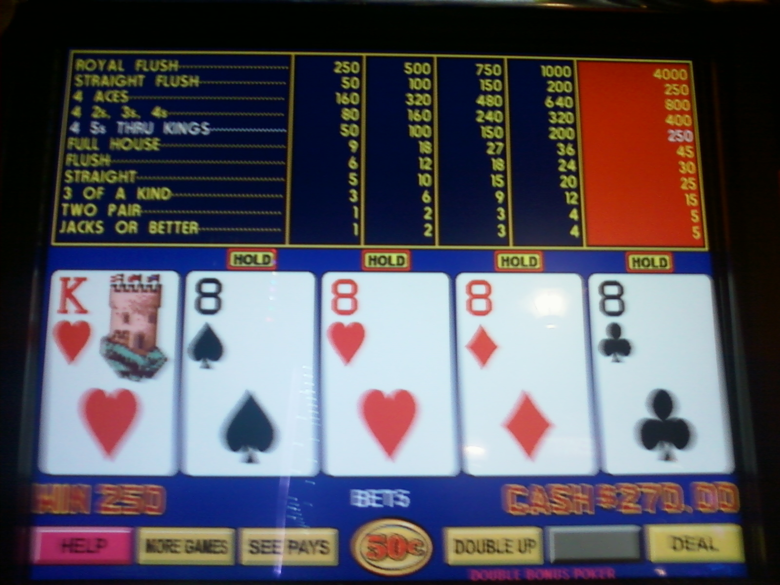 Tonight's local is the Double Up Dude. I'm sitting down- minding my own business and said Dude sits down. Tell the truth I whiffed him before I saw him. He downloads some free play, and it's on. Every time he had a winning hand, he would double up. Usually 2 or 3 times. Then quit. He always seemed to know what to do. He hit a 4OAK, doubled up, won, and cashed out. Hopefully he used some of his winnings to take a shower. I ended the evening with a small loss.