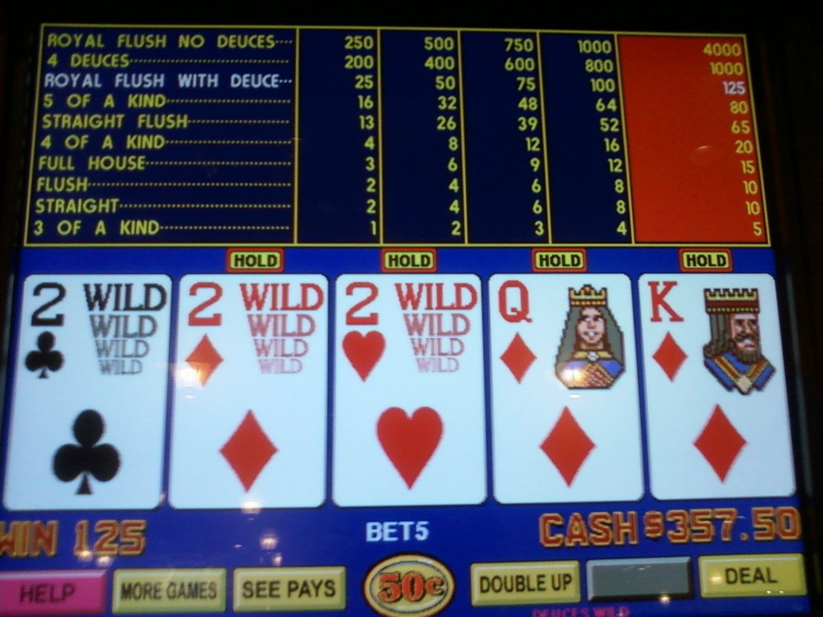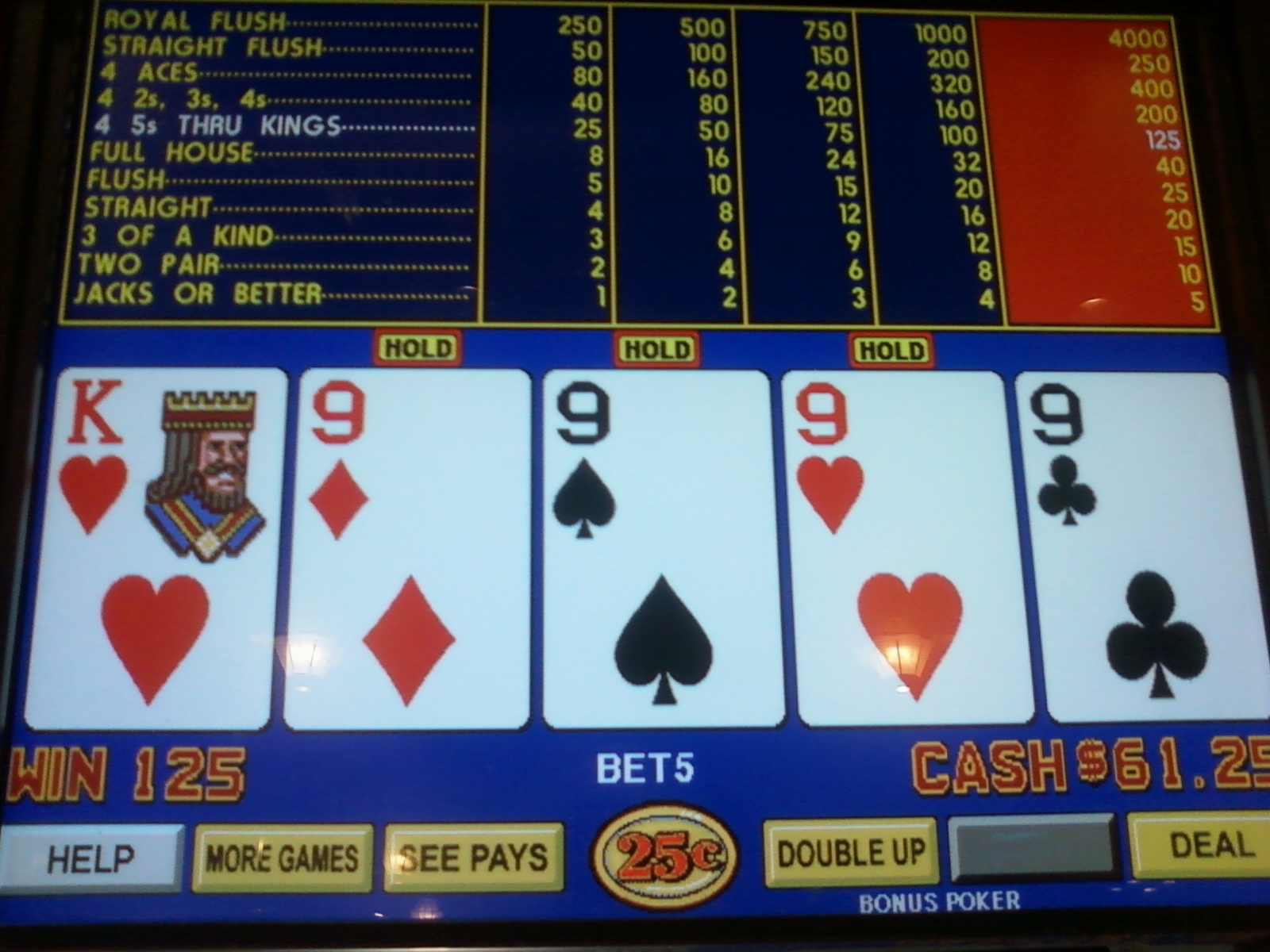Headed up to the casa to gab with Sweet Ti and grab a shower and a couple of chilly Kalibers. Then I walked over to the player's club for today's promo- $75 in Marshall's gift cards. Then I tried some $1 5x/10x. Nada. Buffalo???? Nopper. Back to the uprights. There were a couple of ladies sitting next to me that had absolutely no idea what they were doing, so I gave a class in VP 101. I had a Rapt Audience. One of them even hit a 4OAK. Noice! This evening there is a shindig at the Superstar Theater- one of the employees is also a part time local lounge crooner, and is having a birthday bash. My host invited me and said she had a part in the show during a number. Starts in about an hour. Back to my game, I was holding my own. I'm planning on leaving first thing in the morning- I always like my last hand of VP to be a 4OAK. Plenty of time to hit one...as a matter of fact it happened quickly.