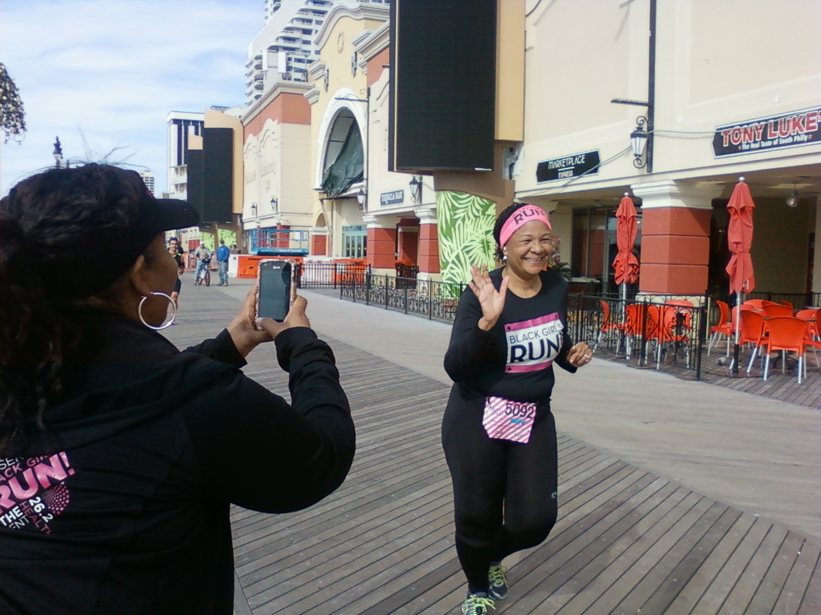 At this point, no runners had gone by. Finally, a lone dude came running by. A few minutes later, 3 more ran by, and then a chick. A lady who was walking south at about the same speed as me was cheering them on as they went by. She was wearing a hat and t-shirt that said "Black Girls Run" I asked her about it.They are a fitness group, mostly running.She's Dolores. Hello Dolores, I'm RB. She was there to support various members who were running today. So we walked, talked, and cheered on the contestants.