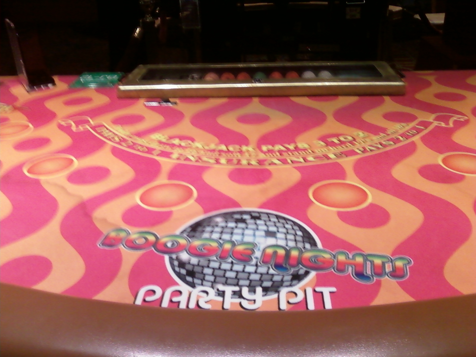 I went in and found a seat near the balcony. The show started as I was getting a dastardly Ab'Douls from the open bar. The dude was a pretty good singer and had a tight quartet backing him up. It was basically a love fest for this dude from all the management- including Mark Giannantonio. Finally they played Robert Palmer's "Addicted to Love" and My host, Martha was one of the back up singers, dressed all in black just like in the video. She and her cohorts aced it! I waited around to see if she would come back out in the theater, but she never showed. So I sent her a text and after a couple of more songs I went back downstairs. I cashed out that sweet ticket and seeing as it was only 8:45 p.m. decided to play some BJ . There was a $15 table with 3rd base open in MVille. I bought in for a hundy. There were 2 dudes already playing, and the first shoe was brutal. But we had a dealer change after the shuffle and things picked up...
