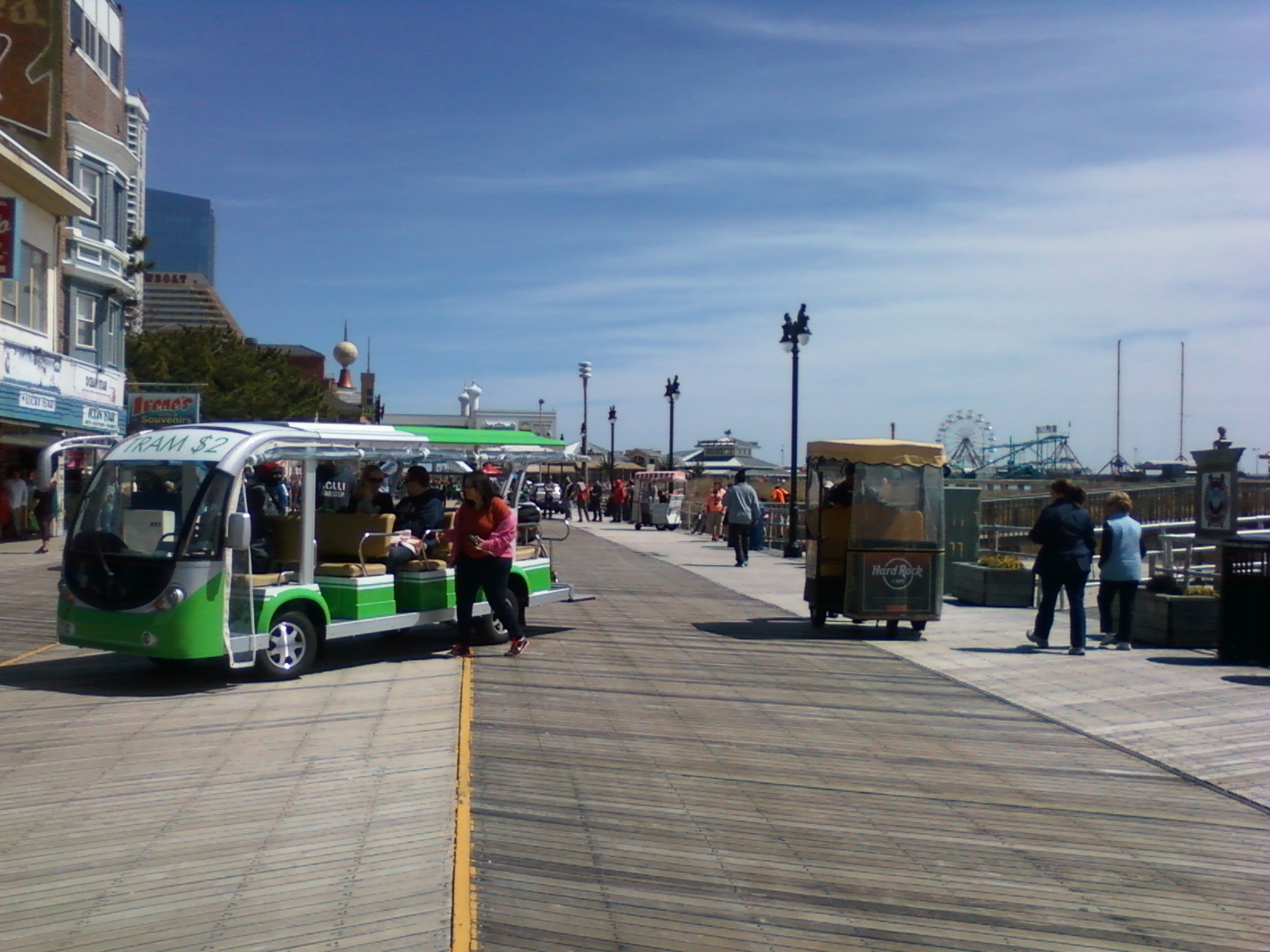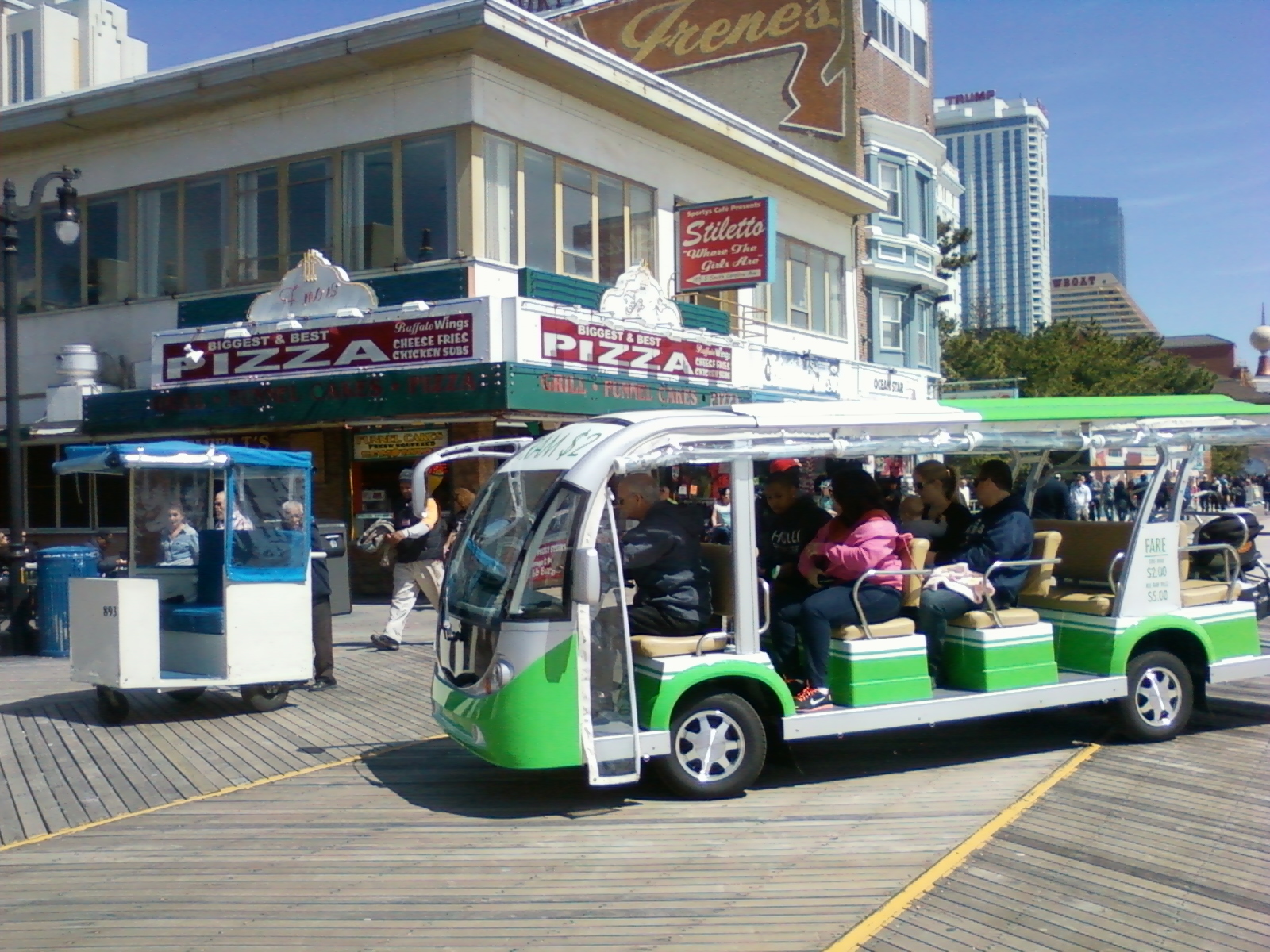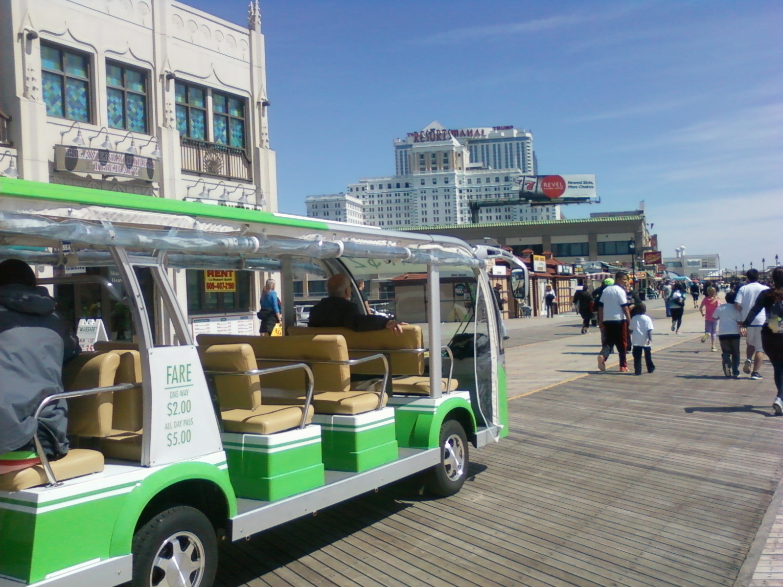 I stopped and talked to one of the rolling chair pusher dudes. He wasn't happy about the trams. AND, the same company owns them both.