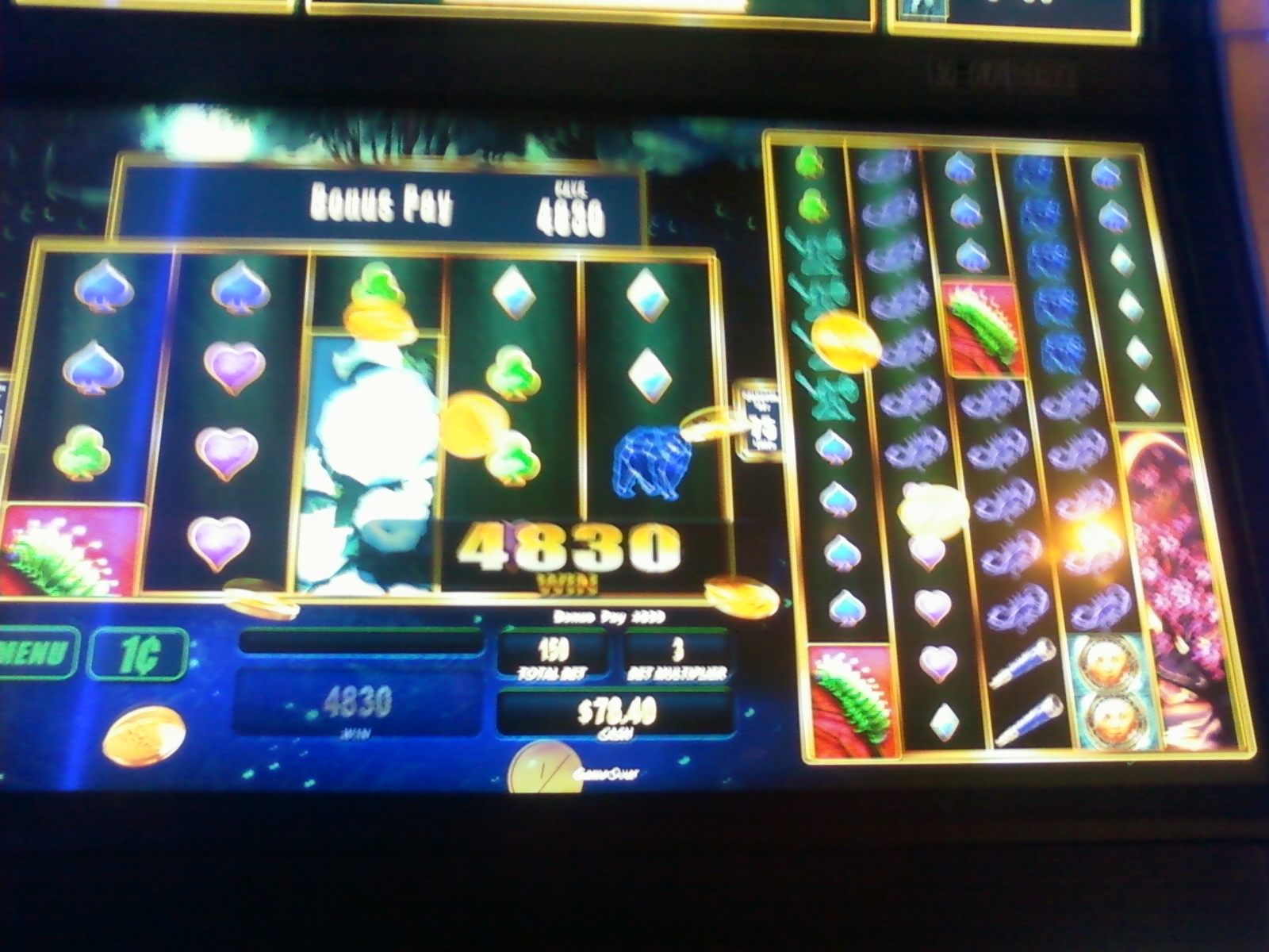 I was supposed to take the 2:45 ferry, but made killer time. Got there just in time for the 12:00 boat. Which meant I got to Resorts around 2:15. Didn't see the my Polish sisters at the desk, so Maria checked me in. She said to come back around 3:00 for my room keys. Not a prob.... Time to GAMBOL!. I loaded up today's free play- $35. I played some $1 2x3x10x pay.