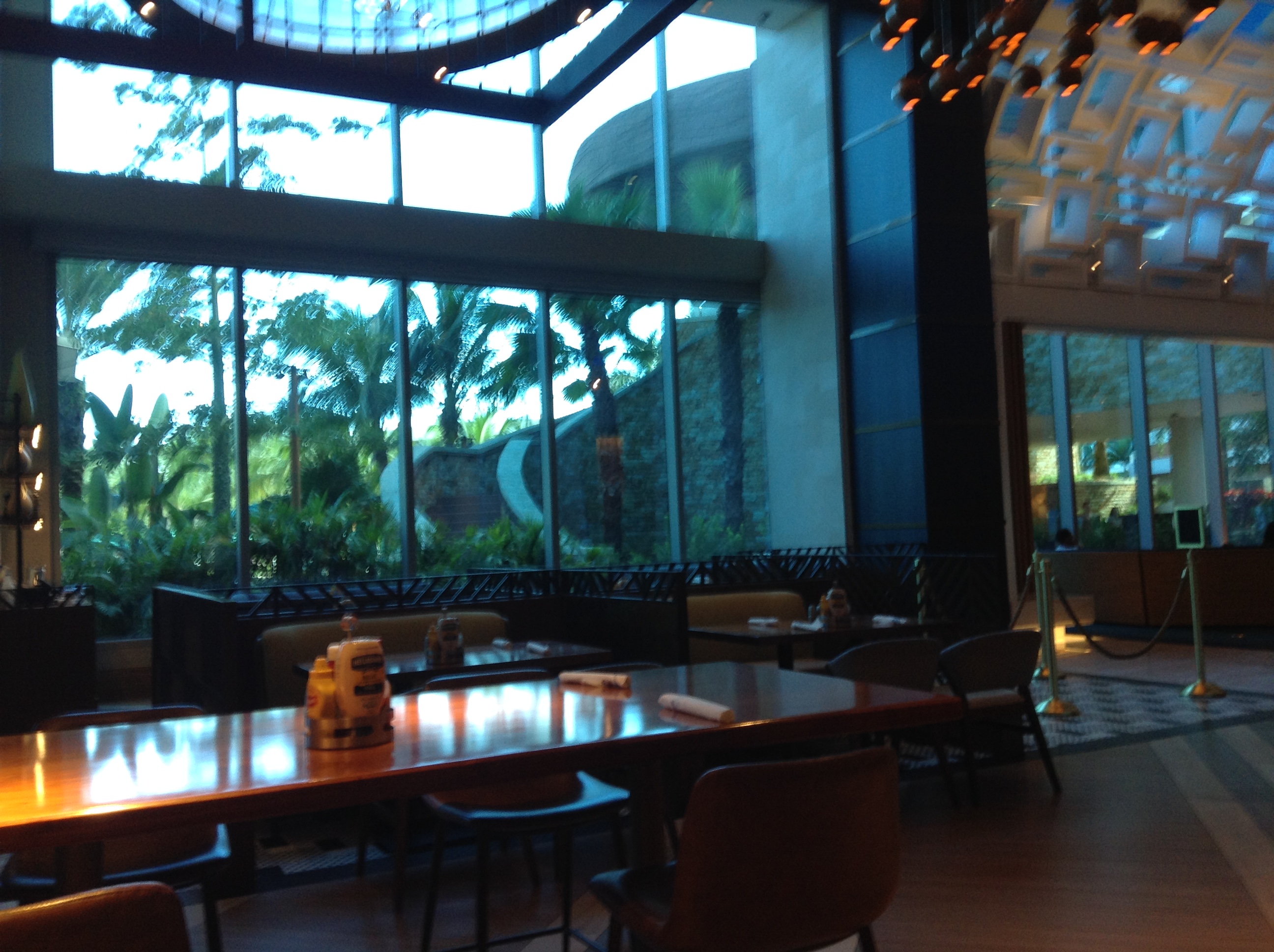 We have dinner reservations at Abiaka. We get all gussied up and take the long walk. This place is great, overlooking the pool complex.