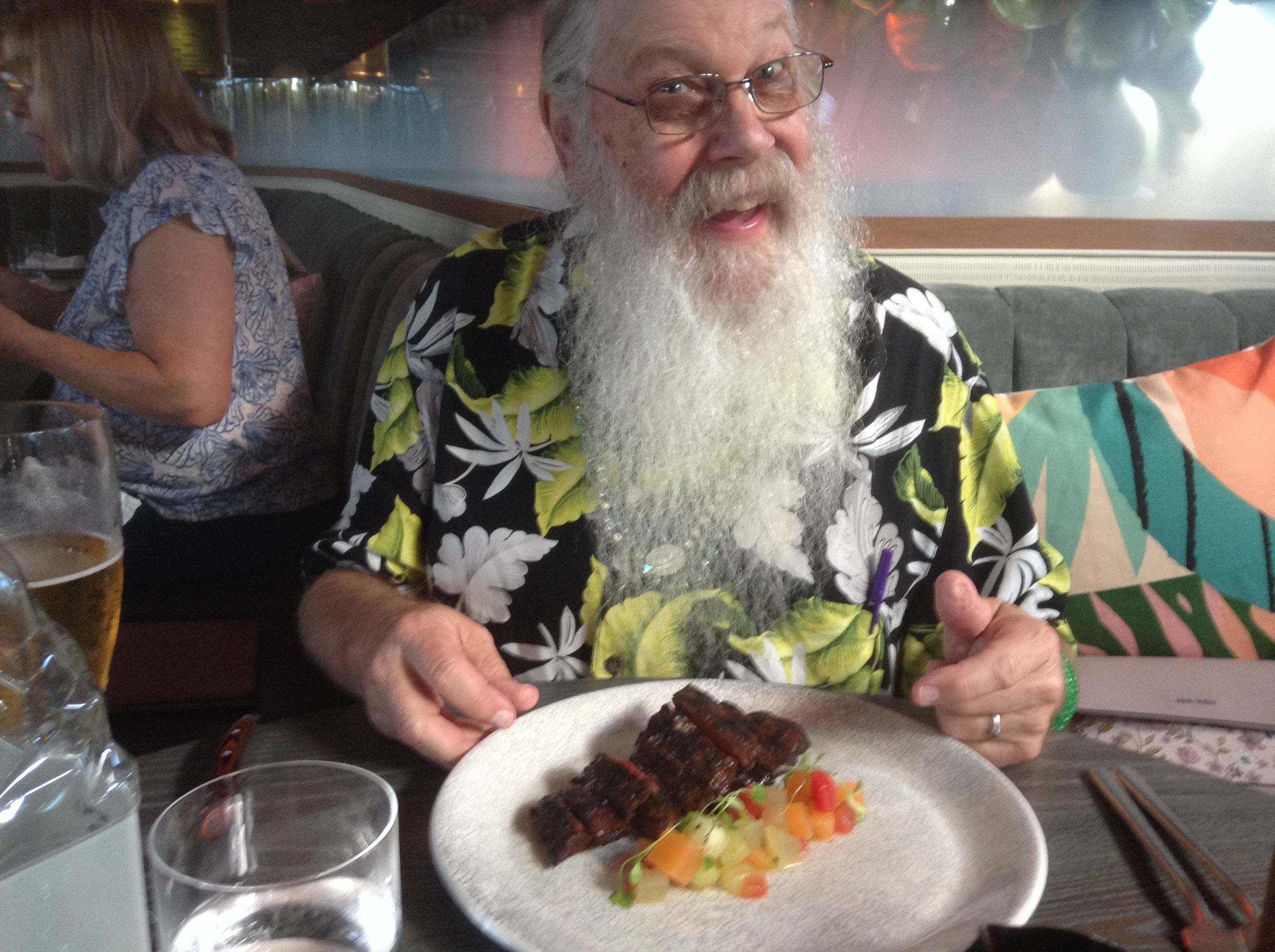 We shared a bagel and some pastries. Then we are ready to checkout. We have Prime Access boarding on the Reflection today, so we are shooting for arriving at Port Everglades around 11 a.m. We tried checking out using the TV but the figures weren't adding up. I have been keeping up- at least dollarwise, and we used maybe $10. over the $300. resort credit we started with. Fortunately there's a front desk on our way out. I attempt to explain the nuances of the annual Sapphire the uppity blue card benefit to the desk clerk. The manager gets his ass involved, and finally a verdict is rendered. We went $14. over $300. and the clerk deemed it a push. Works for me. I leave Sweet Ti and our gear at the Guitar Valet and take yet another long walk to retrieve the Chicken Hawk. Griffin to Perimeter Rd. Been driving here 3 days and know more than my GPS. Turned out that the rental return is on the far side of Perimeter Rd. So we made the Terminal Tour and finally end up at rental return. But the Hertz lot is really full. We are on the far side of the floor from the skybridge to the rideshare lot. One of the Hertz lot agents, Wes, walked up and directed us where to stop and park our vehicle. I explain to him about Sweet Ti's hip bothering her and the distance. Oh, and by the way- that Chicken Hawk you rental us has a light show going on the dash. Today's local, Wes was ever so handy and offered to take us to the skybridge. Or so I thought. I asked him how the rideshare I hadn't reserved one service was as in I hadn't reserved one ahead of time. So Wes drove right past the Hertz counter and skybridge and everything. He's taking us to Terminal 25. So Wes is originally from Haiti. He and his wife have 2 daughters who are in college in Orlando. He's been working for Hertz for 27 years. I took notes. Great dude. He brought us right up beside the ship. We tipped him most generously.