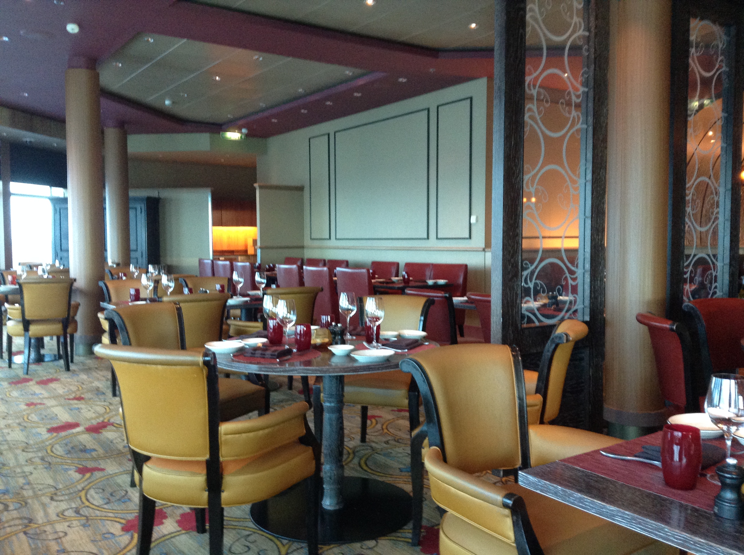 We rendezvous and lunch at the Spa Cafe. Then it's time for a bit of afternoon delight- a nap. We have bigger and better plans for the evening. We have reservations at Tuscan Grille. One thing about these Celebrity ships during a voyage. It's like running a gauntlet of time share salesmen getting by the specialty restaurant salespeople nee servers every time you head for the buffet. Plus they will come by the table while you are eating if there's a hint of eye contact. It's always 30% off. We bit. Time to get puritied up.