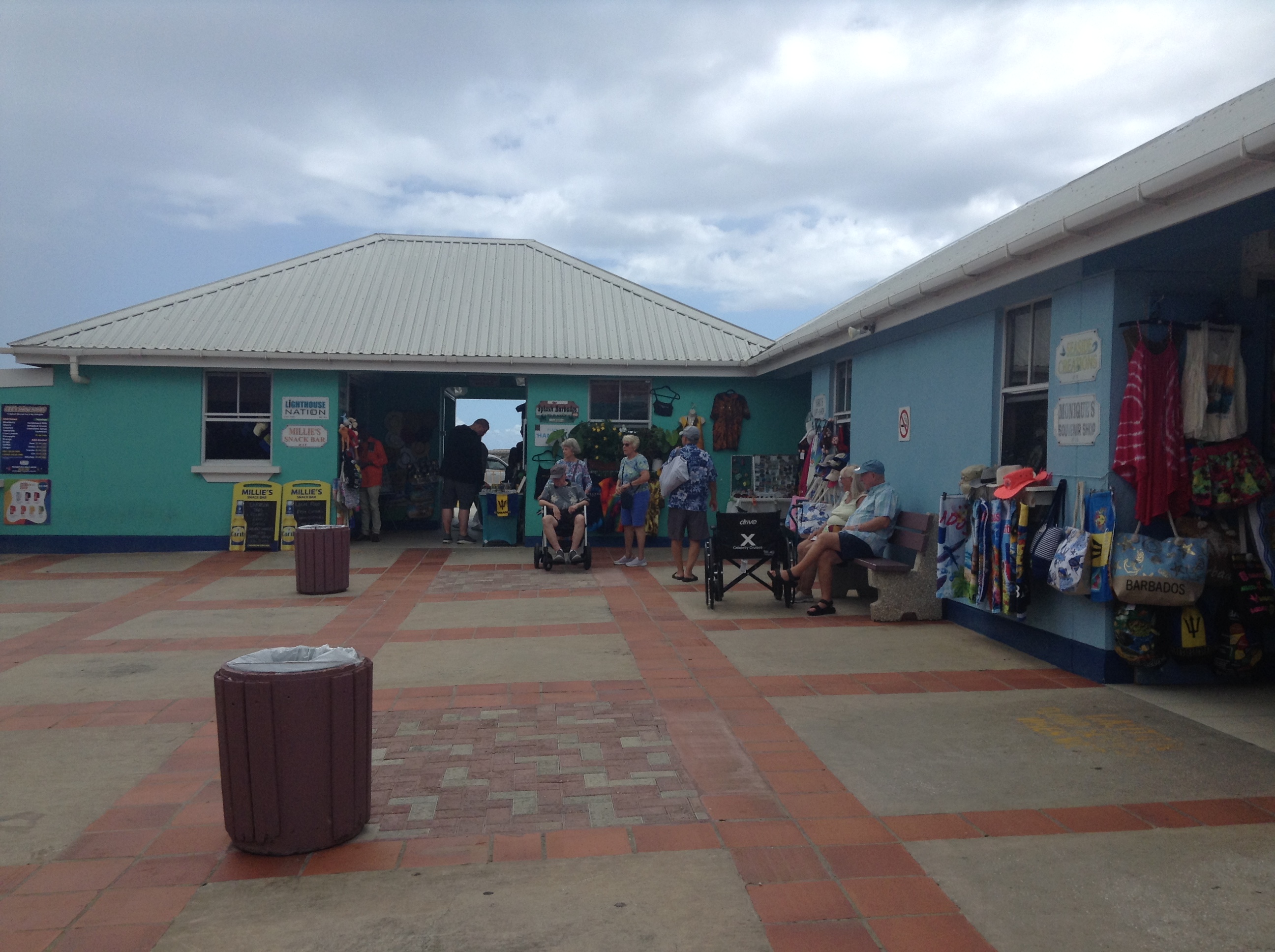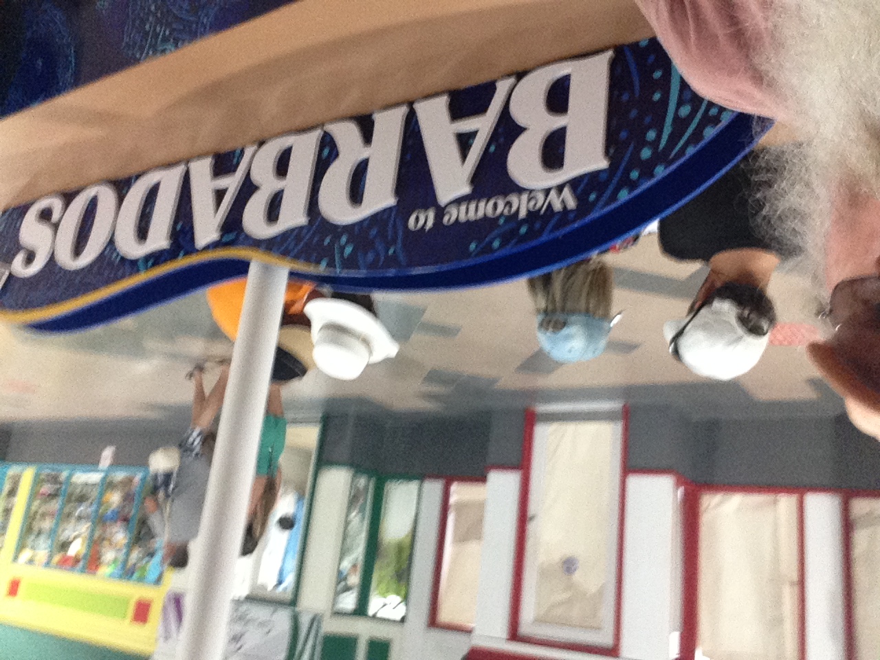 The Bridgetown Cruise Port is fairly isolated at least as far as walking distance anywhere else. But then there's an enclosed kiosk mall just steps away from the Barbados sign and it's actually air conditioned. Which is a good thing since it's nasty hot and stormy out. I swagged judiciously and just made it back to the ship as the skies opened.