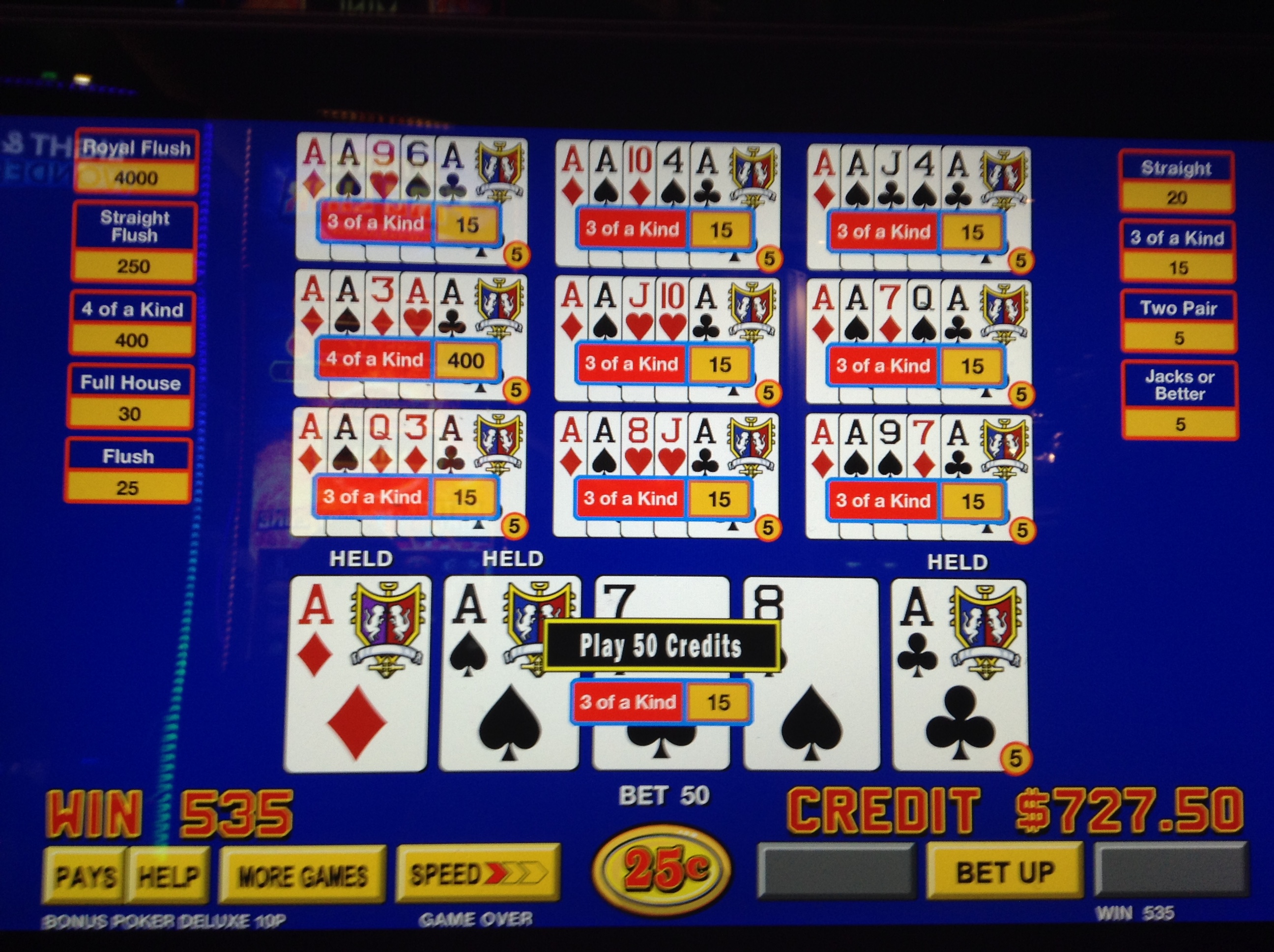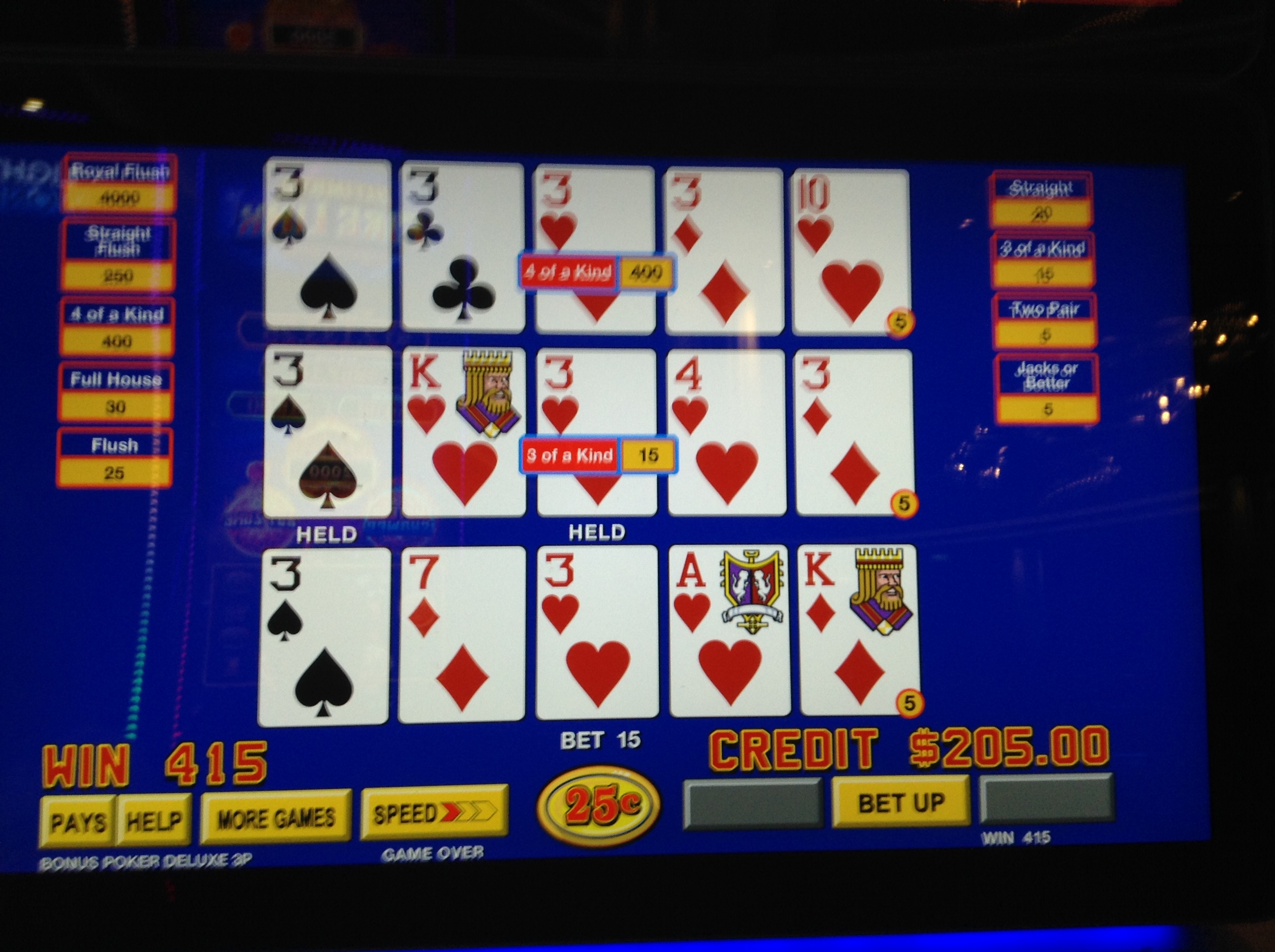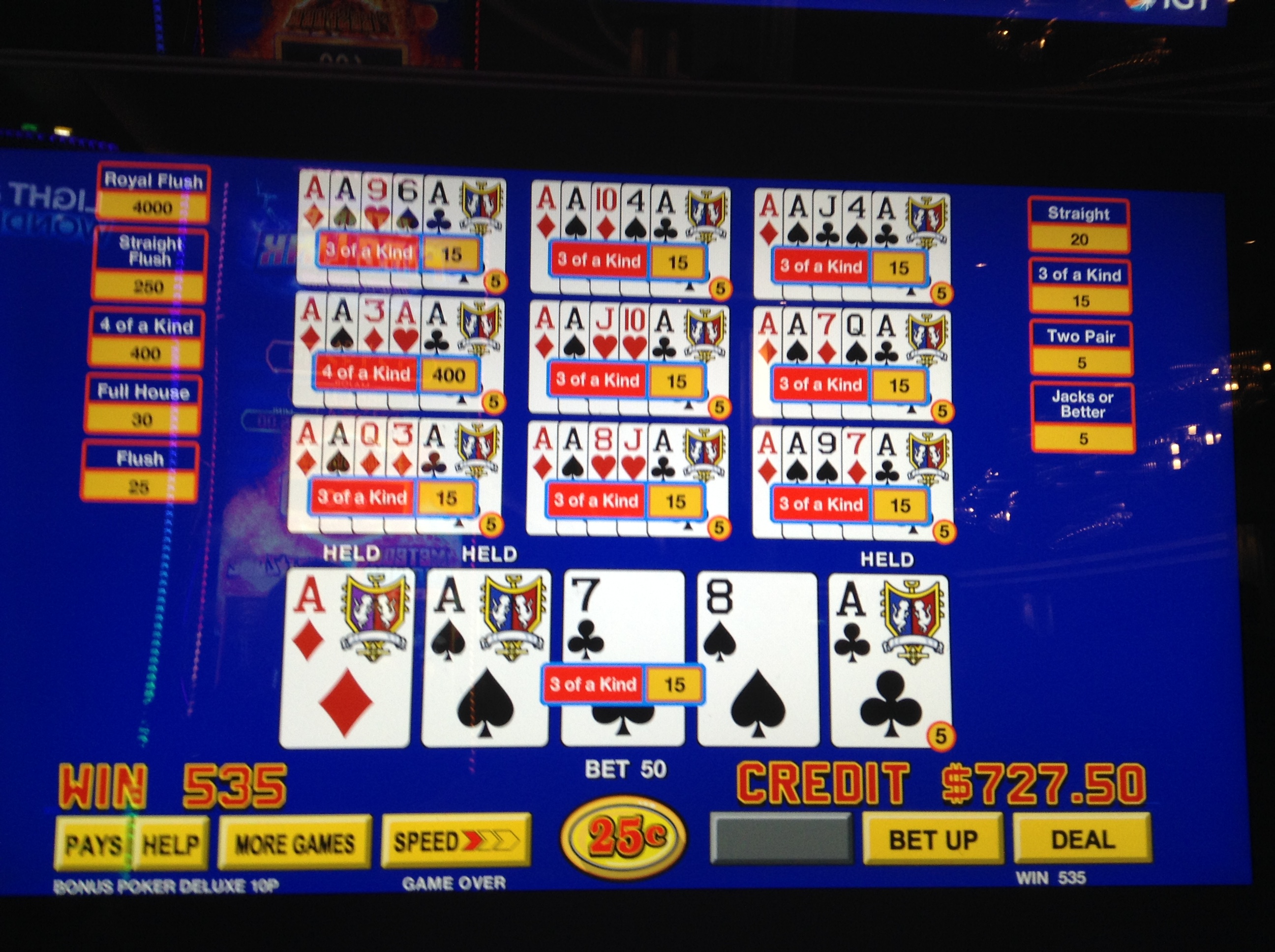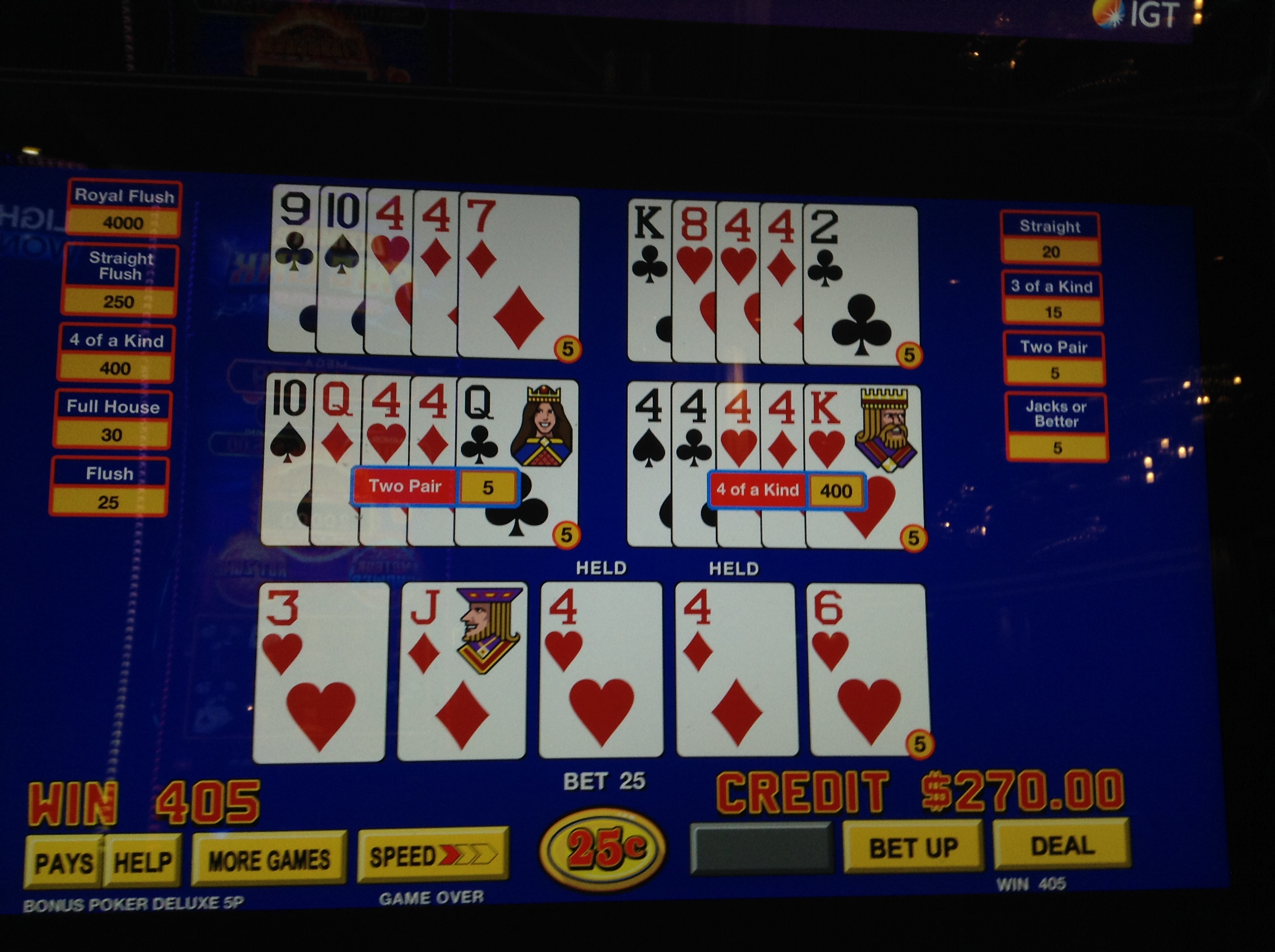 A really tremendous dining experience. Of course the fact it's comped makes it all the better. Mt Sweet Ti is done for the evening so I put her to bed and descend for a last VP session. I really like the choices of VP machines they have here. Just hate the smoke.