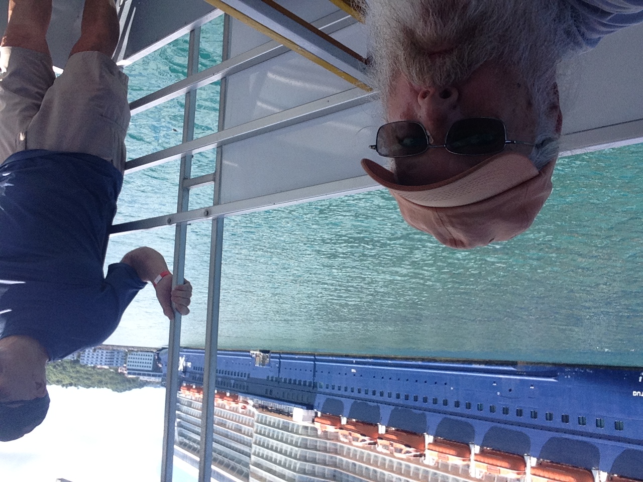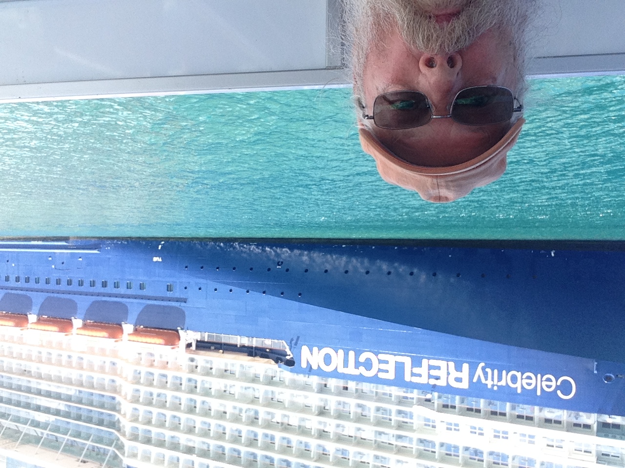 The rooms were ready a bit after 1:30. Another long walk. We made ourselves at home and met our attendant, today's local Anjo. Anjo is from the Philippines and is a pistol. When I asked his name he told me "Call me handsome- since you and I are both handsome". Will do so Anjo became H2. But well you may ask who is H1? Why yours truly. Naturally.