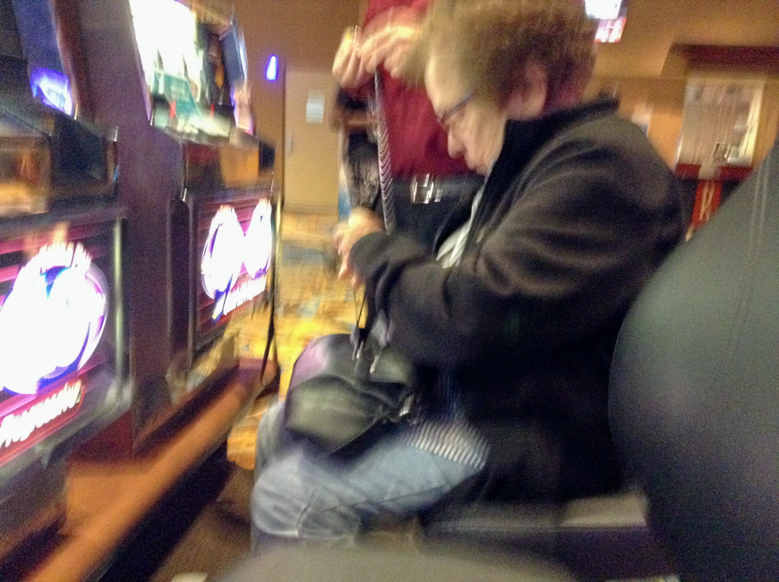 I figured I'd start with some more DDP Progressive. I'm overdue for that elusive royal. My last (and only) one on these machines came when they were still up on the boardwalk end of this joint. Pre-Epidemic- although not by much. Shooing out the Teens. I'm playing with a nice couple. They were playing these machines last night. I introduced myself as some southern perv walking around with a pen and notebook and snooping about. She's today's local-Elaine from Gloucester. NJ that is. As opposed to Gloucester VA. She has always lived there, and doesn't plan to move. She had hit Pointies with the kicker among other hands last night. I asked how her evening went after I crashed.