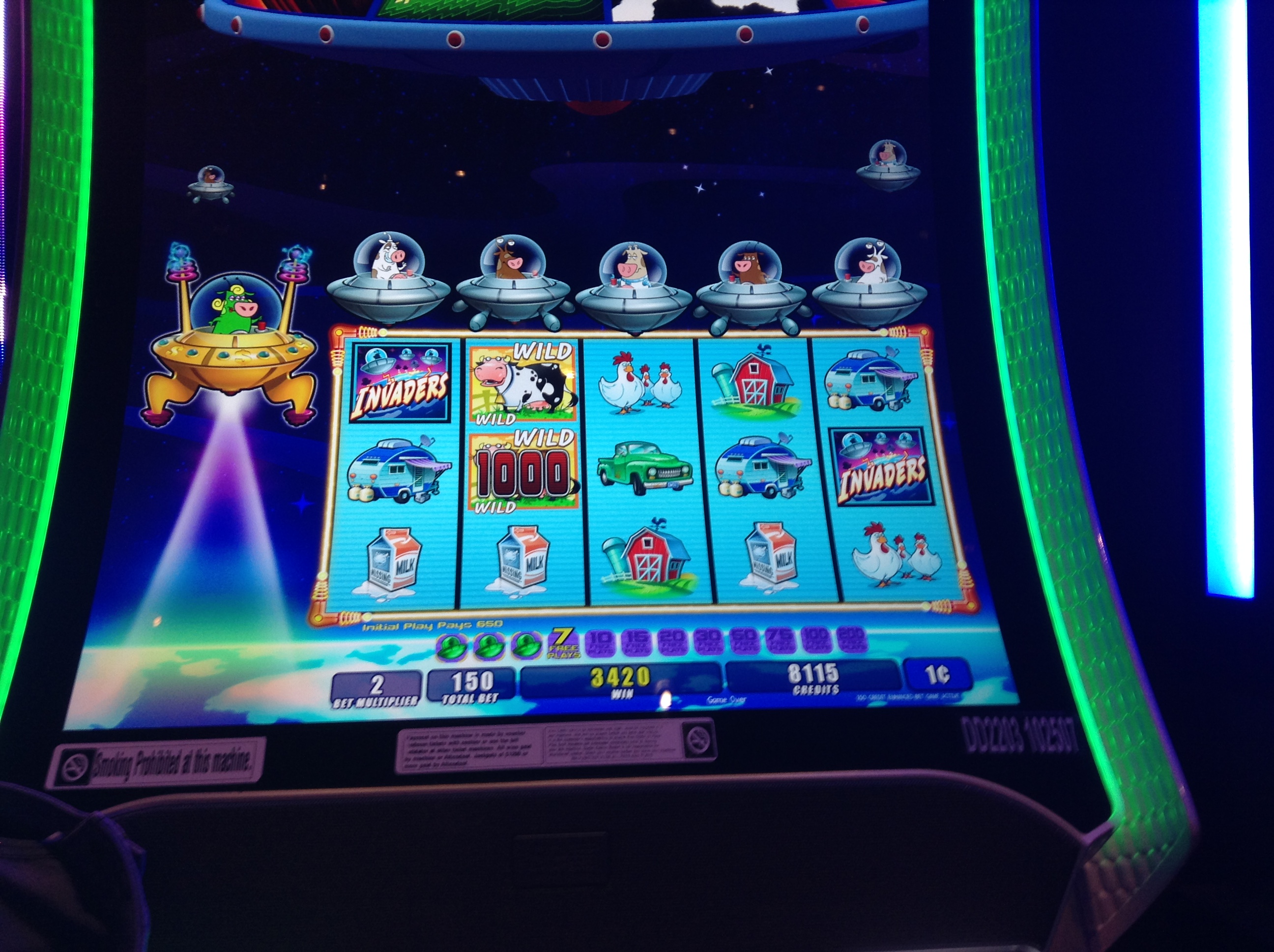 Be bopped over to HR to use the very generous 15. FSP they were offering today and found an Invaders from the Planet Moolah machine. I had a blast playing with today's emergency backup local, Gail. I do love me some alien cattle. Even pushed. Then I hit the Steel Pier.