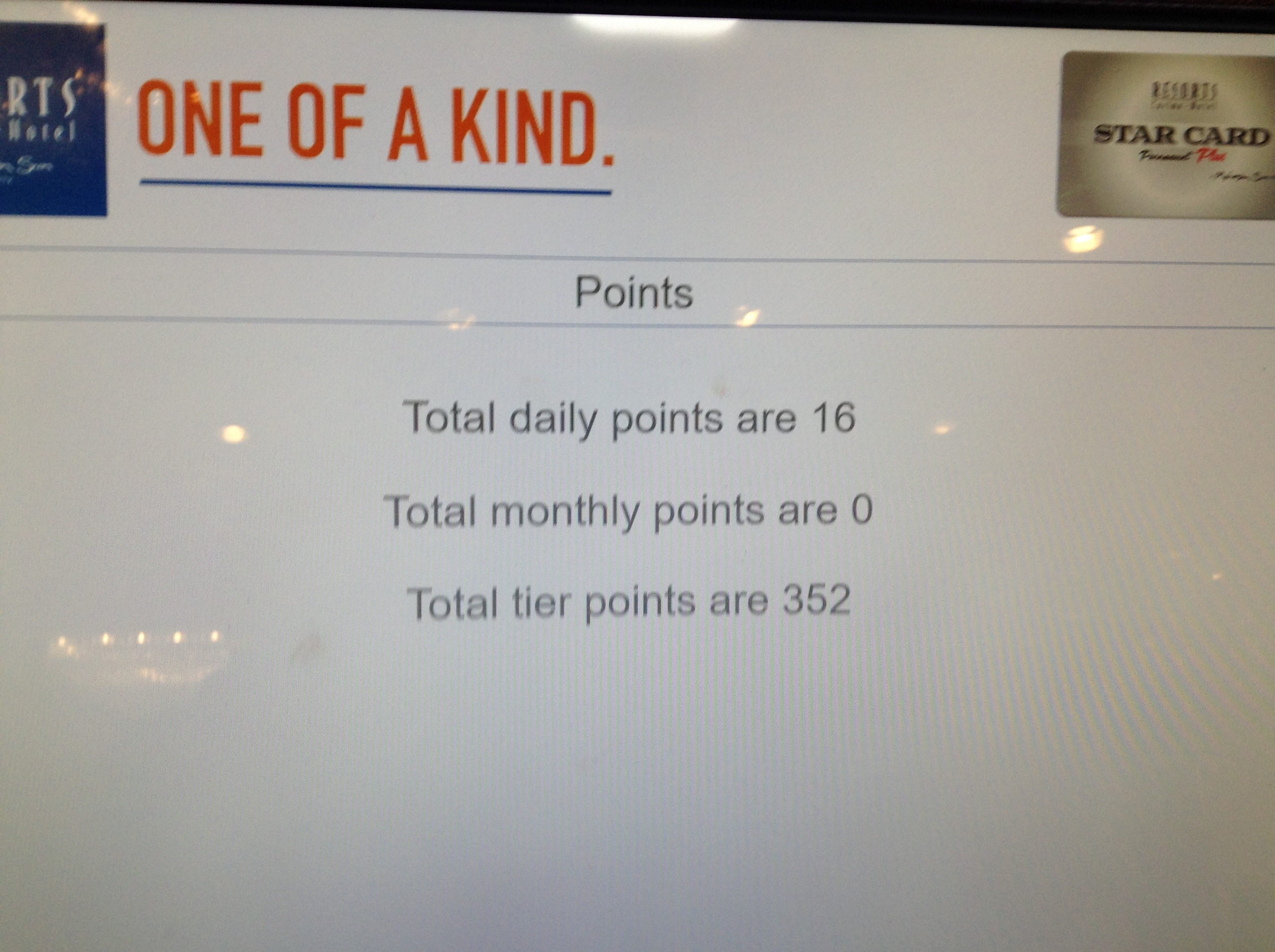 I hadn't ever signed up for an Ocean player's card yet. The line wasn't bad so I bit the bullet. No tier match for me. 25. FSP and this-