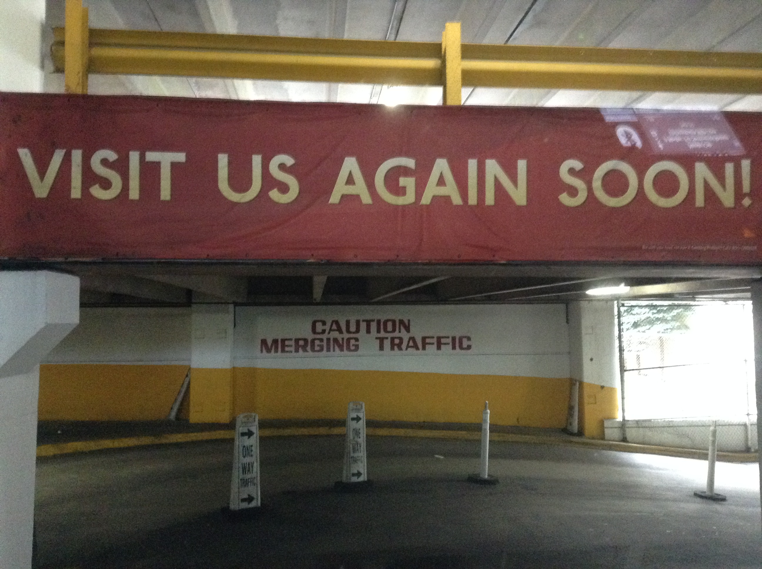 We are so there! The first thing after we exit those scary self park elevators we run into today's local, Maggie.