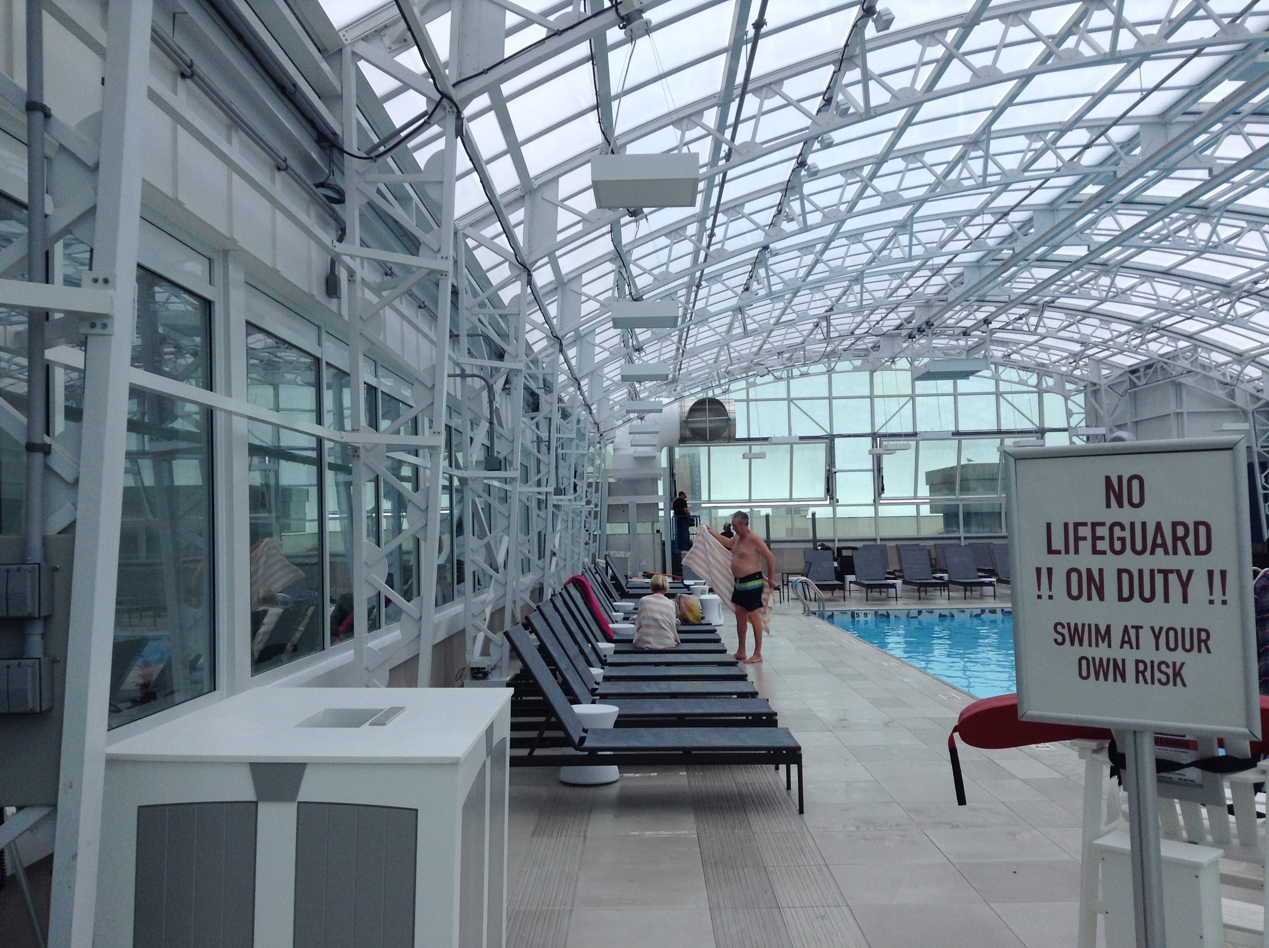 They really did an awesome job on the pool rehab. The new pool is saltwater, so the chlorine smell is minimal. No hot tub though. Even the one in the Spa is not open. The roof over the pool retracts which is nice. Plus after 2 p.m. the pool is adult only. Nice touch. The bar is supposed to be open on the weekends although that seems a bit unlikely this time of year. This was always a nice space and they did a great job in updating it. It still would have been nice to put the hot tub back in. just saying.....