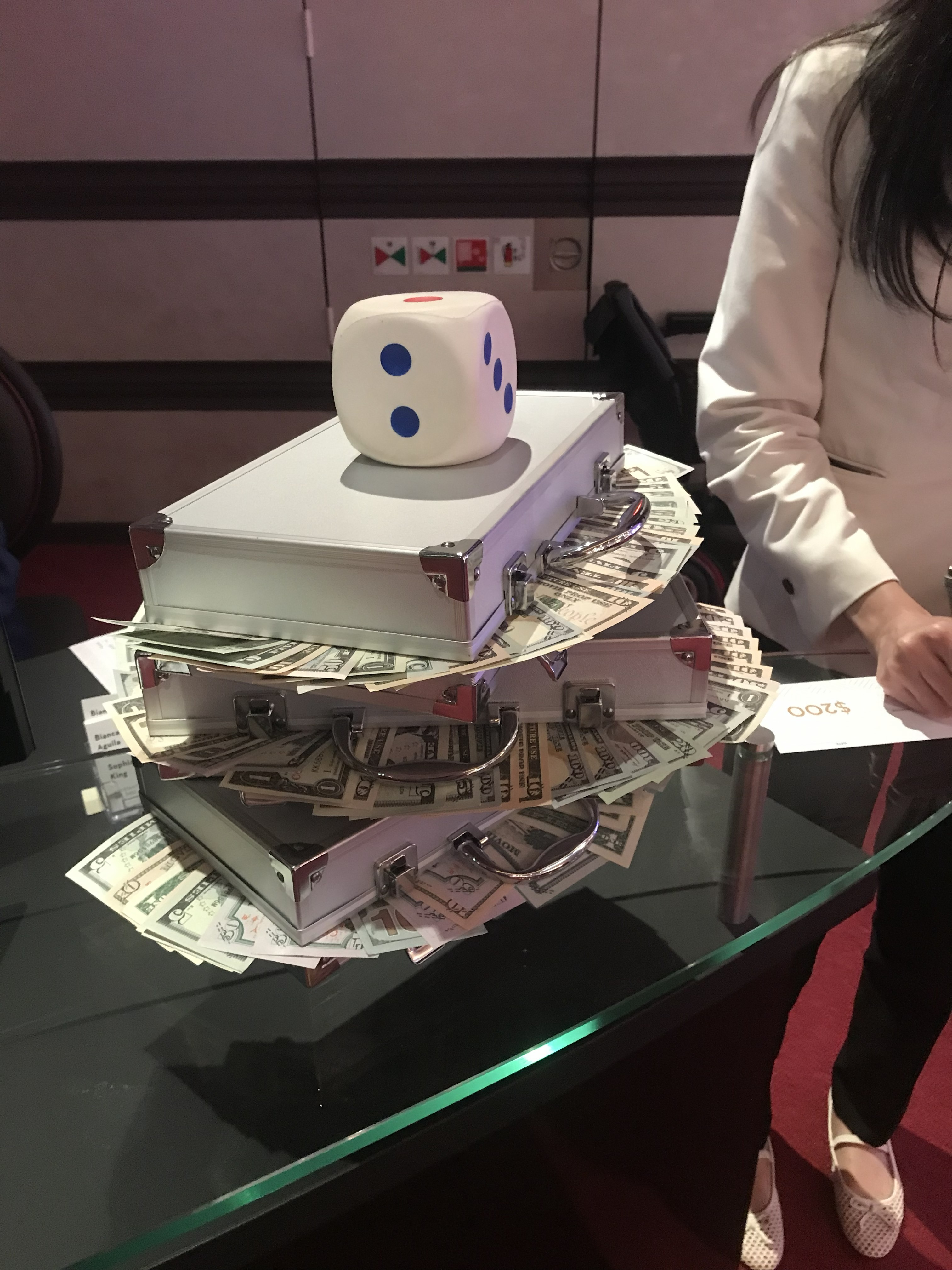 We eventually reunited- (and it felt....so good) in the room and decided on an early dinner in the main dining room. Once we actually found the right floor. We were quickly seated. Nothing really stood out about the entire meal. The service was once again adequate. Way too long a wait for each course. The food was alright. All told we prefer to eat at the buffet. Or Murano. We hit El Bacon for some après dessert dessert. "I'll take a pistachio latte and a double double Carmel Macciatto". At home I only drink one medium Cafe Bustelo in the morning and have never been in a Starbucks. But give me El Bacon and I go apeshit. Otherwise I only drink water. We hit the casino but the VP machines were heavily occupied. So we went on a slot machine tour of the casino. Nothing but naught. We hung around for the 10 pm snowball drawing. I didn't win again. But we are up to 2964 tier pointies too.