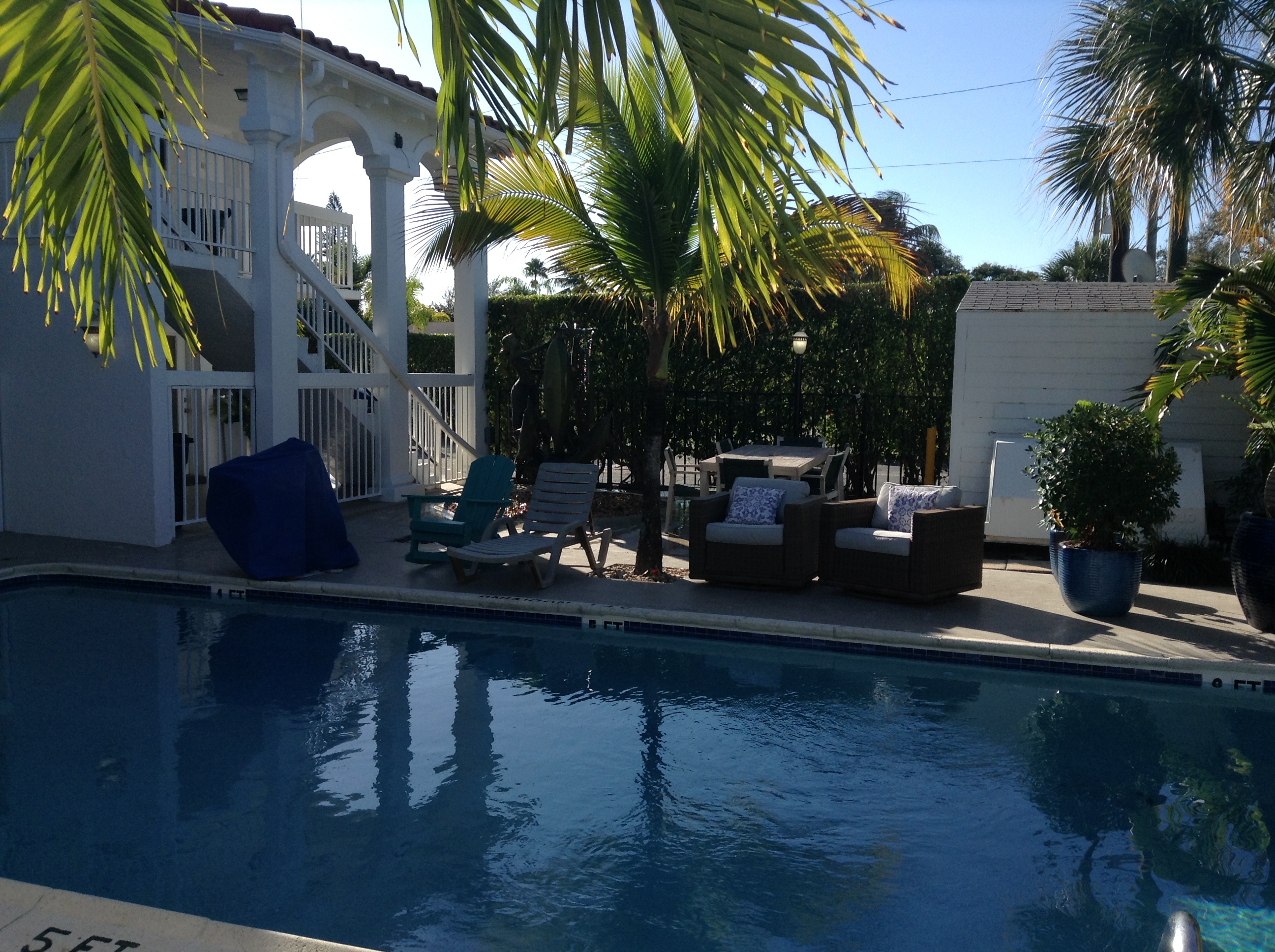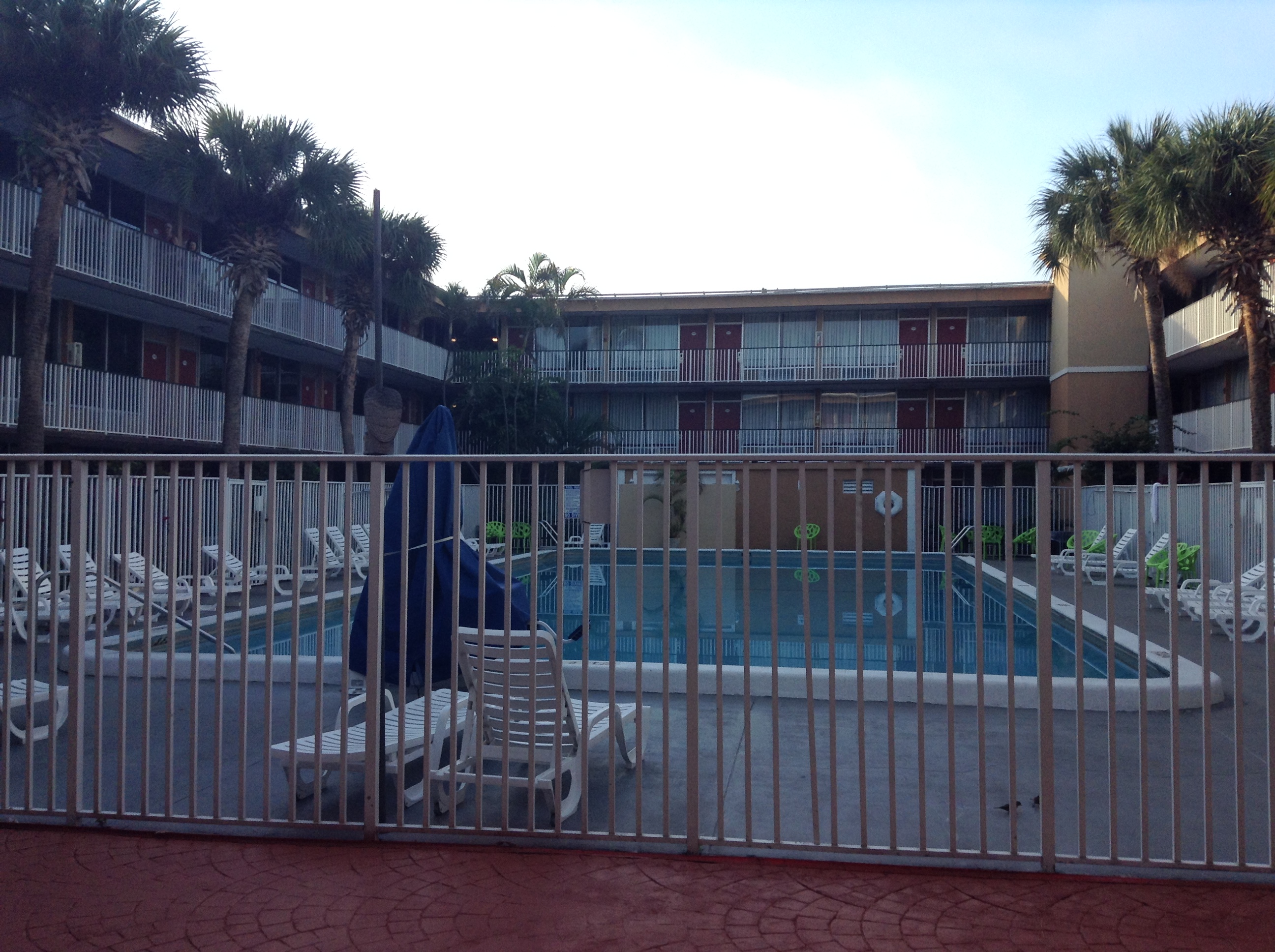 We bid farewell to our floating resort and found our bags. Port Everglades is such an easy port for all of the 'barcations. I called and let the Red Carpet know that we needed the shuttle to pick us up. The waiting area is in the shade which is lovely except for the fact that it's about 62°. We occupy our time watching the circus parade around us. Just another cruising perk. The van shows up and it's already made a couple of stops. There's 5 cruise ships in port this morning by my reckoning. A couple of younger folk gave up their first row seats for us ."Much obliged!" We had one more stop to make and shoehorned them in. The driver even went so far as to put a fairly large bag in the space between the seat rows and the sliding door. Took a couple of slams, but he got it shut. White knuckle ride time. As we pulled into the Red Carpet, it was packed. The front was void of people, but the side entrance was a zoo. This place is right next to the Rodeway we normally stay at. We circled around back and stopped amongst the throng. We got out and tried to figure out where the line to the front desk actually was. We finally sorted things and presented ourselves at the front desk. The desk clerk must have taken a shine to us because she said the room wouldn't be ready till 4 or 5 p.m. but she would check our bags for us.I'm telling you we didn't see them make that offer to anyone else. And signed me up for the next shuttle to the airport so I can pick up the rental. So we check the bags and Sweet Ti finds a spot by the pool to wait. The shuttle is quick and in no time I'm behind the wheel and back at the hotel.