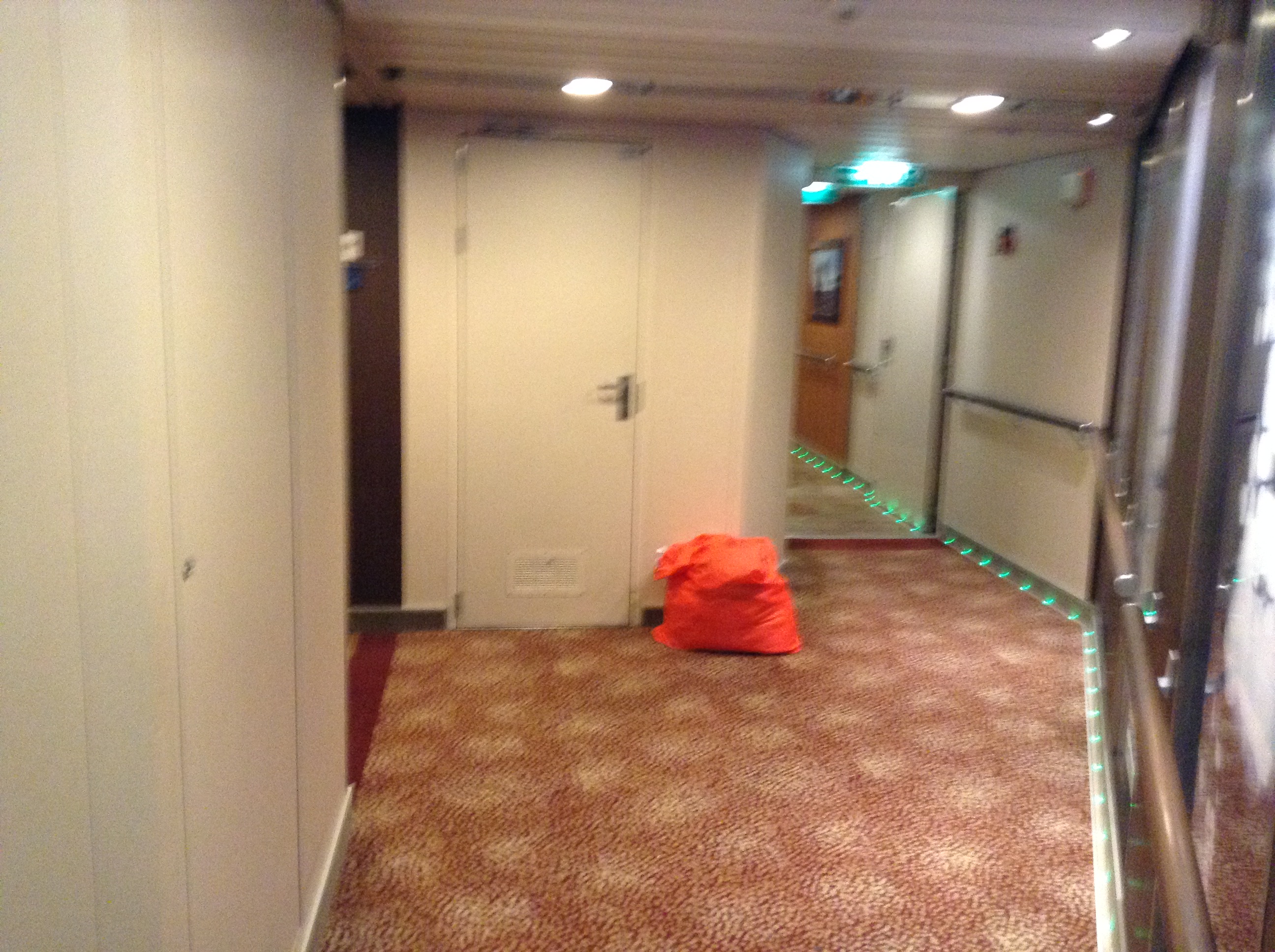 We make our first appearance at the buffet and meet Pradeep from El Bacon II. And Chu Chu too! The time share (specialty Restaurant) sales force makes you run the gambit from the elevators to the buffet each way each time. We got snagged. We make reservations for Murano for lunch tomorrow for our big day. Great first day- the ship is in great shape, our room is so easy to get to and yet quite. The crew are very attentive too. Nice start.