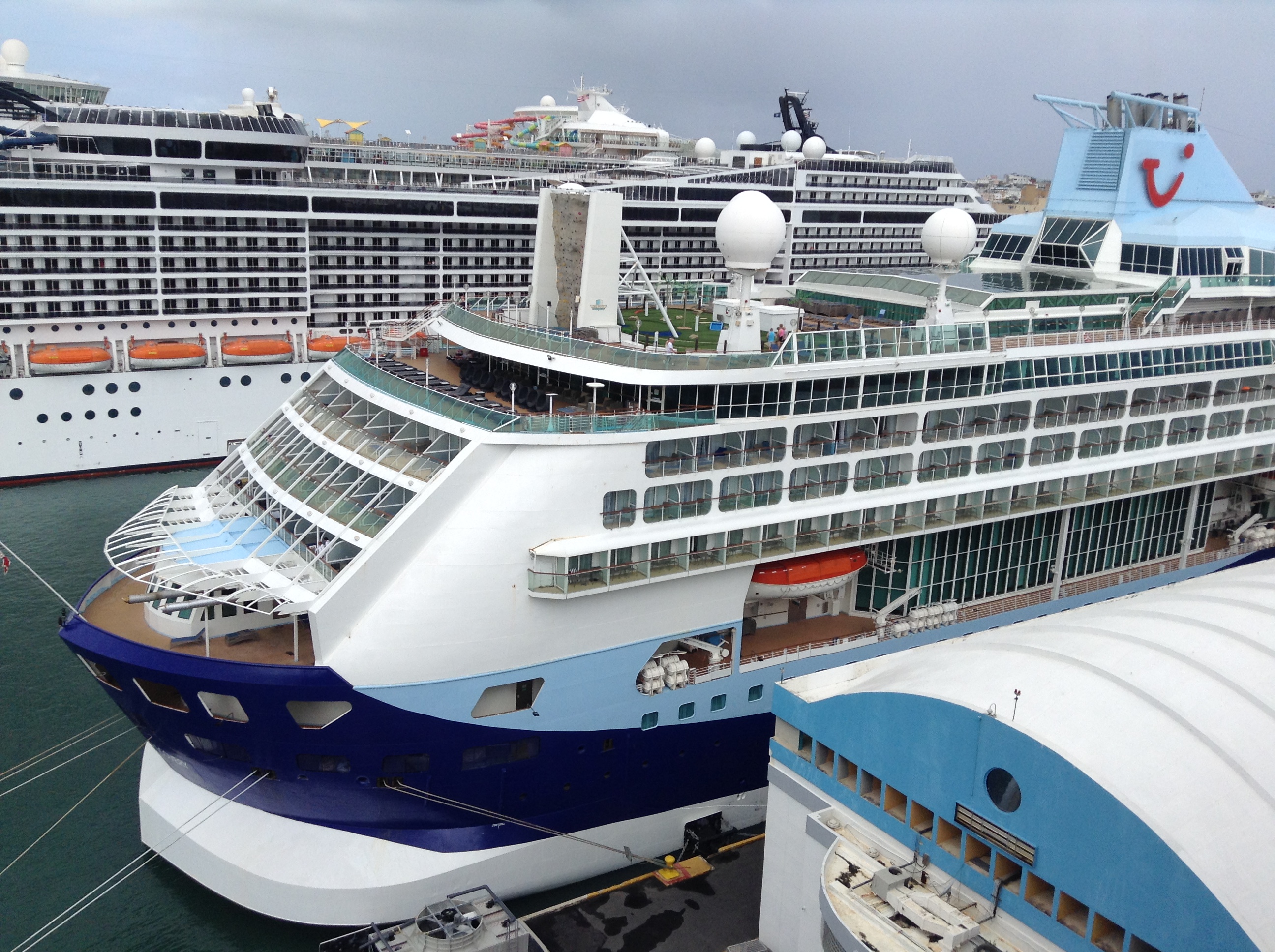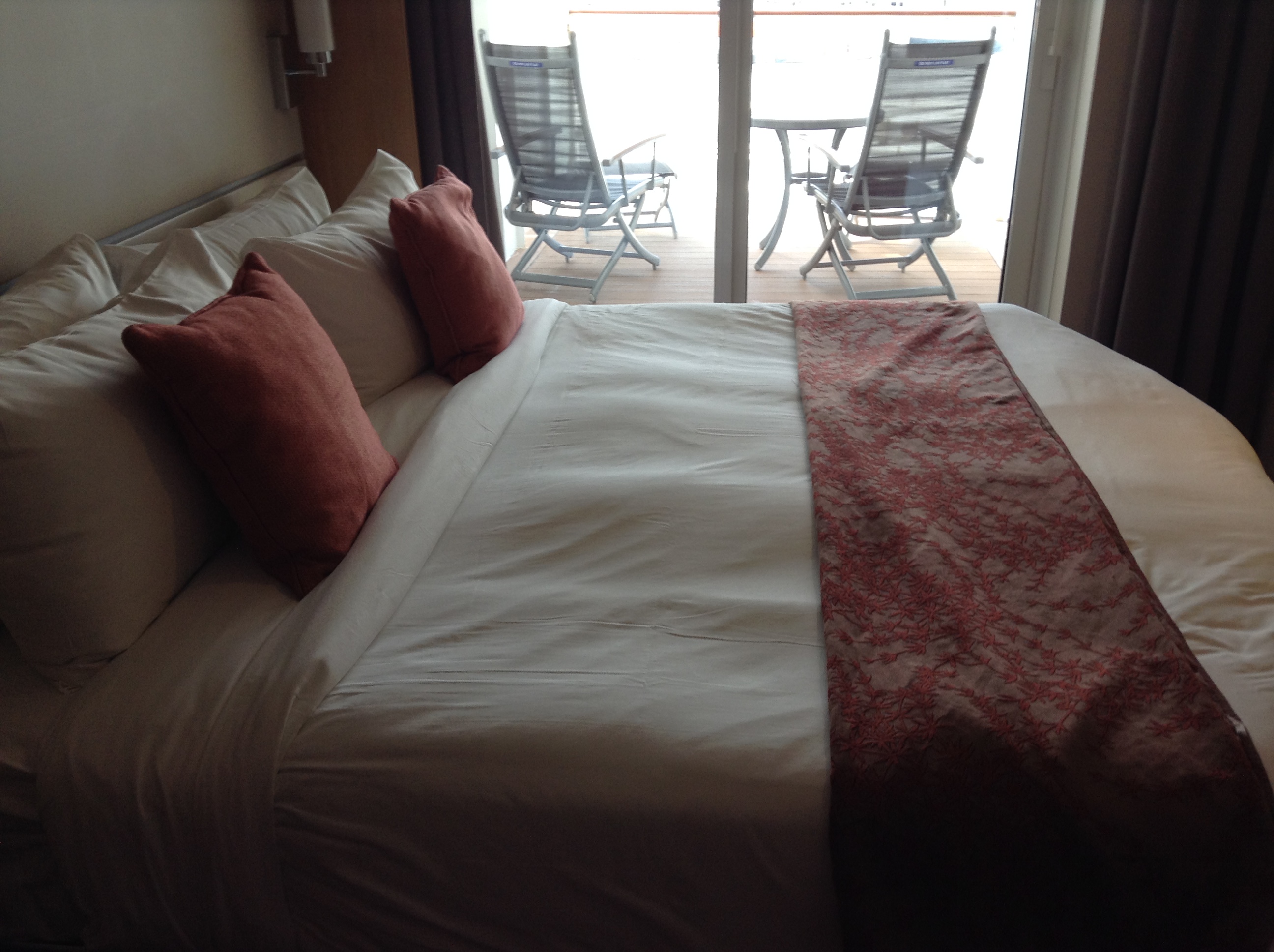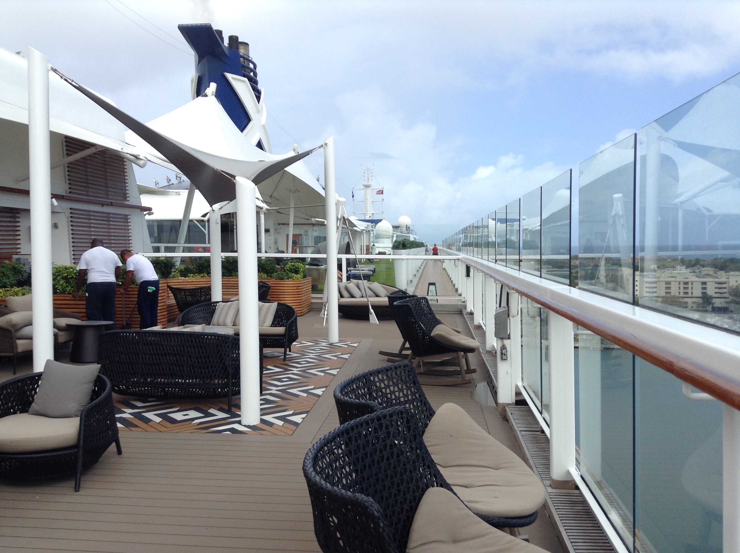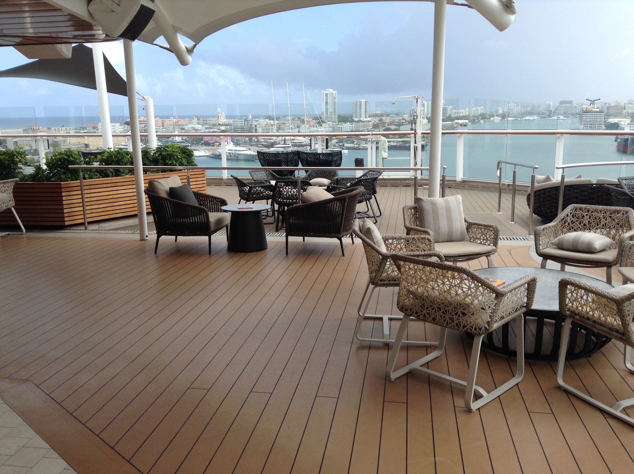 We did a bit of preliminary unpacking and met our room guy Johnny from India. He's by far the oldest crew member we have ever seen. It's his first cruise of a new contract along with his first time attending a concierge class room. We ask after our complimentary sparkling wine and afternoon canapés. I slip him a preliminary gratitude to grease the wheels a bit. We are also invited to the Helipad for the sailaway but demur. We both are wearing flip flops and the invite specifically says closed toed shoes. I don't plan on wearing anything but flip flops for the next 10 days. The captain comes on the blower and gives his spiel about safety and weather (3-4 meter seas!) and then spends quite a while talking about health and hand washing. There was a pretty substantial outbreak of stomach virus an a recent voyage on the Eclipse. Everywhere you go crew are cleaning and dispensing hand sanitizer. And we're off!