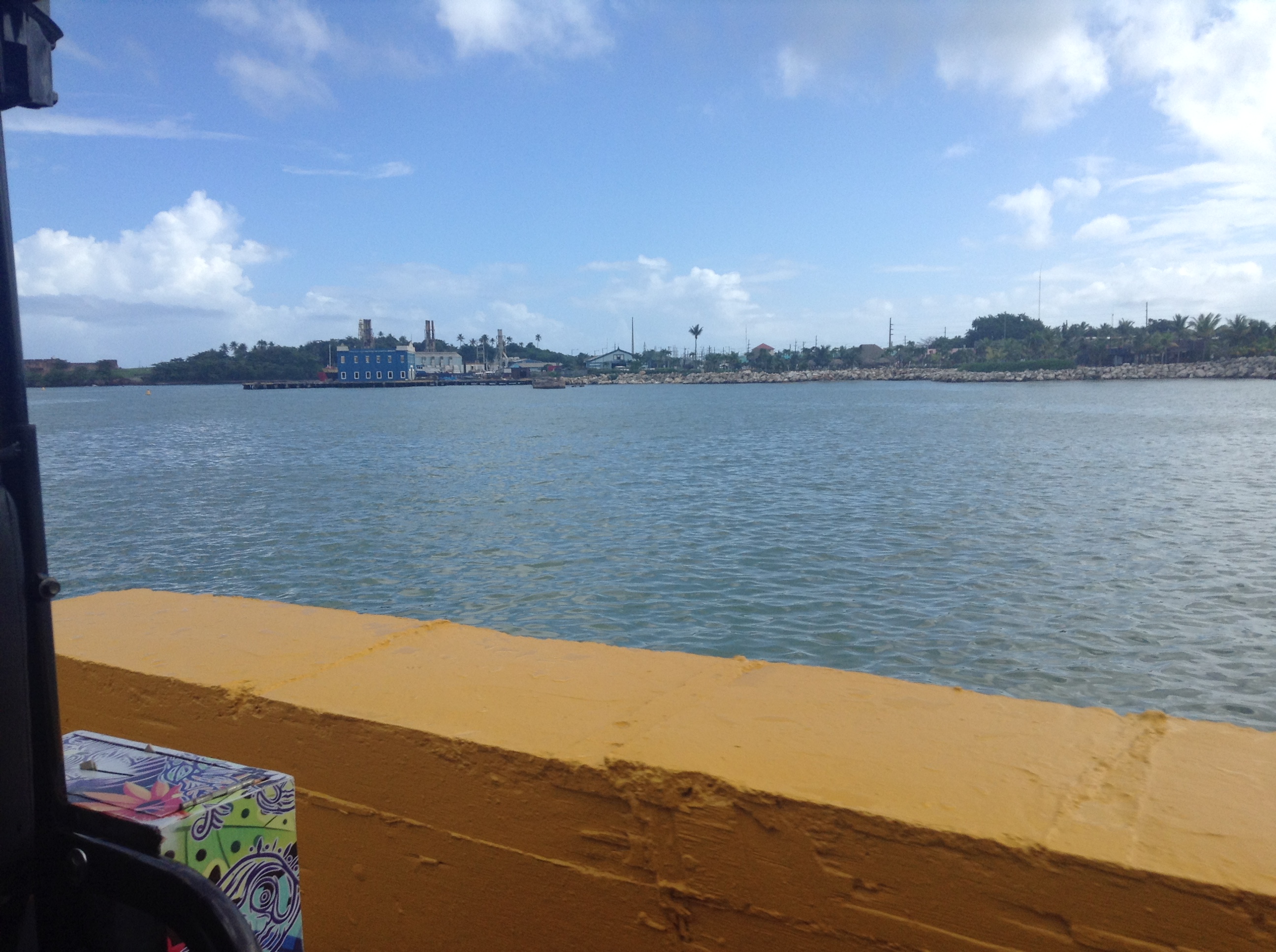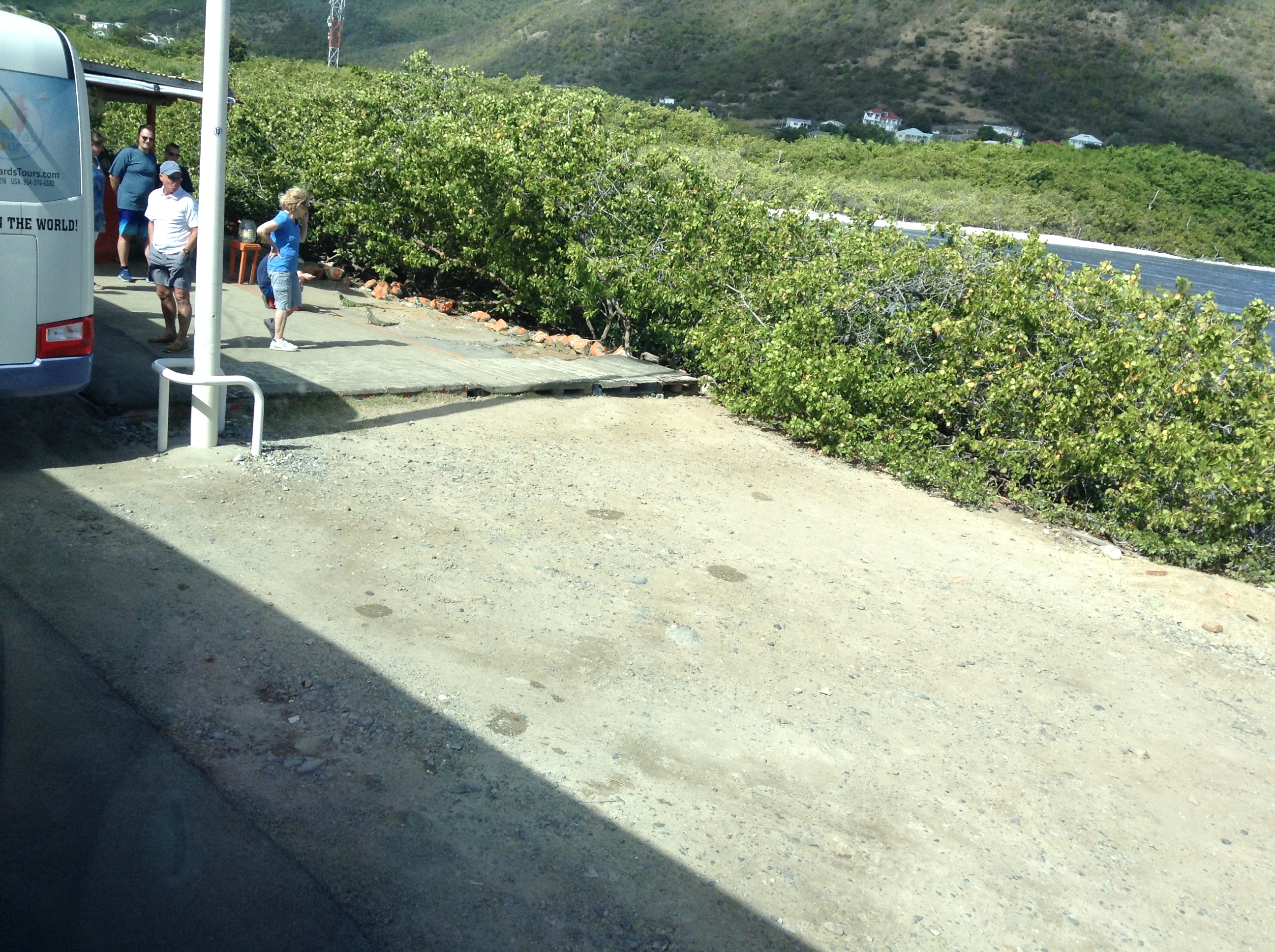 Hey Now! A bit of a changeup today. We are going on a rare shore excursion. I ordered this tour from the cruise line. It was on sale for some cheap price. Maybe 28.00 pp. 3 hour tour to the other side of the island and back. So we went. It's a fairly long walk to where the tour busses park. Pretty humid and steamy too. We are herded and routed to an awaiting coach.