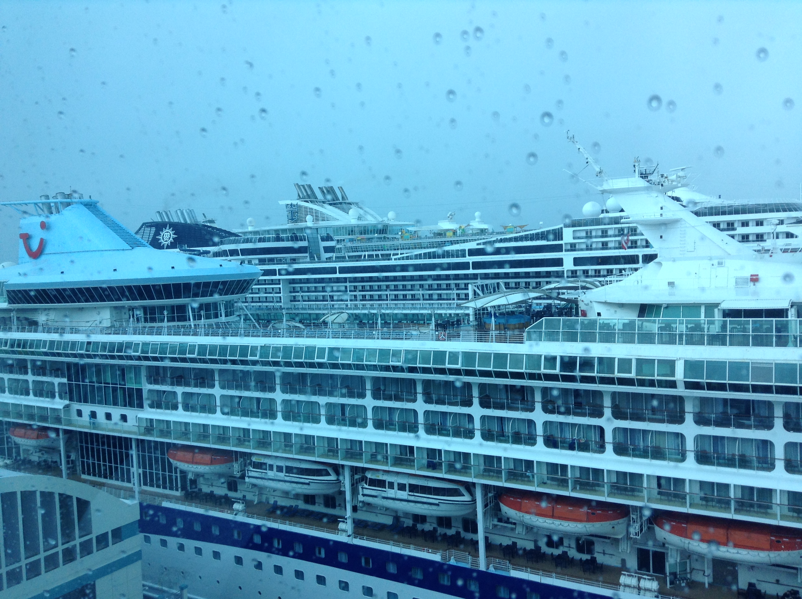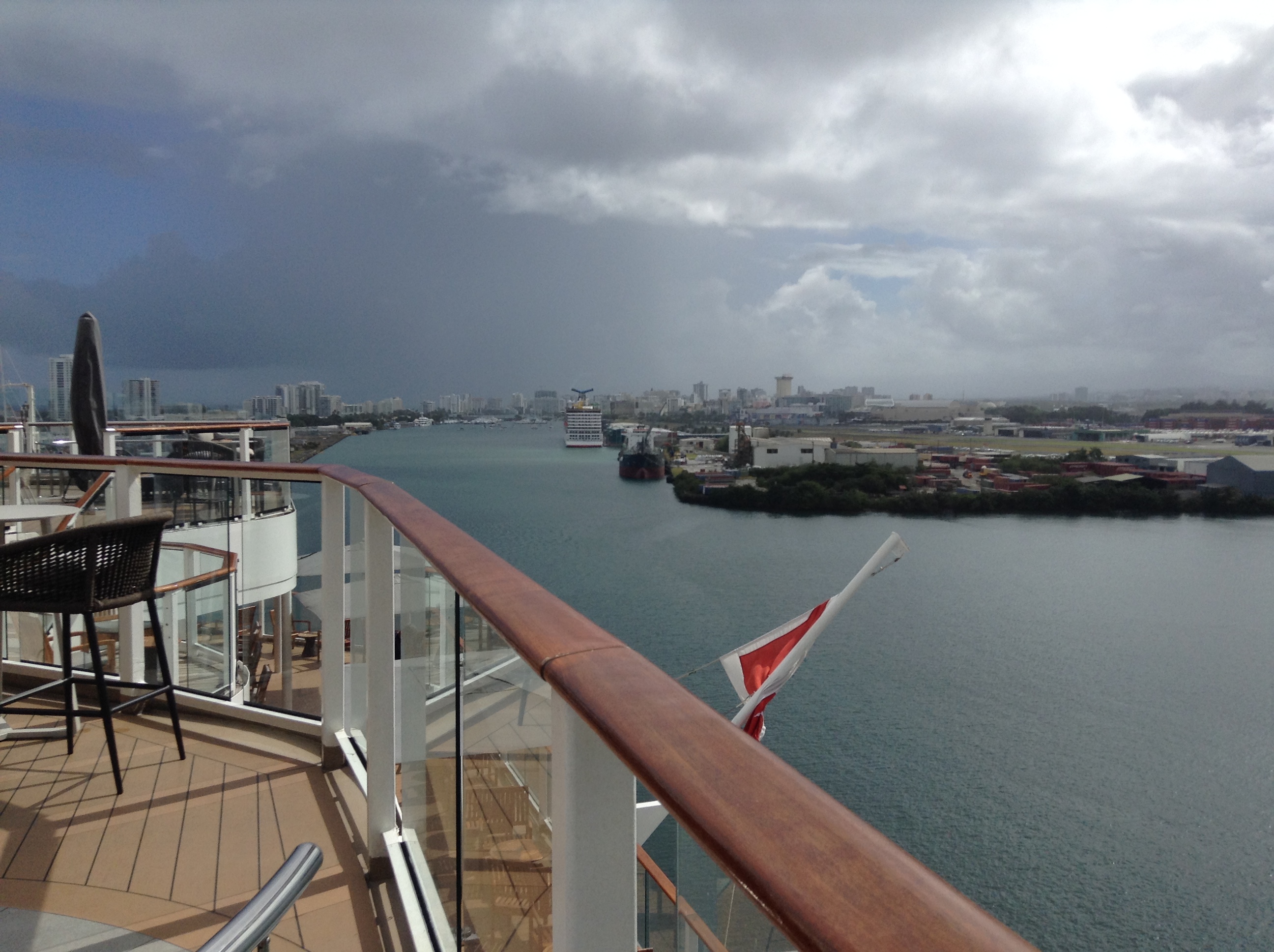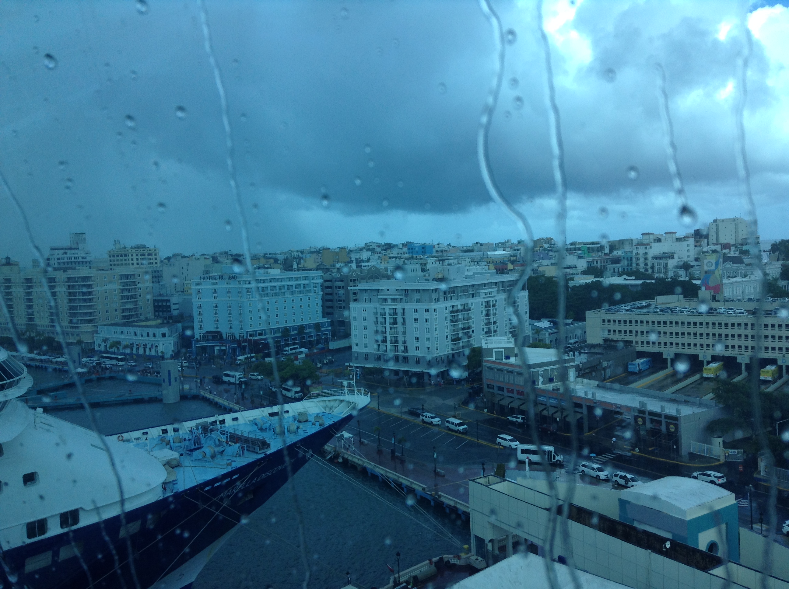 Hew Now! Good Morning from San Juan. Beautiful day here in Puerto Rico. We slept in. Since we were just here a little over a year ago on our Leeward Ho saga. We probably won't even leave the ship today. But we lucked out with our berth for today. The whole of the eastern side of the harbor is within our pervue. And the pop up thunderstorms provided an all day matinee.